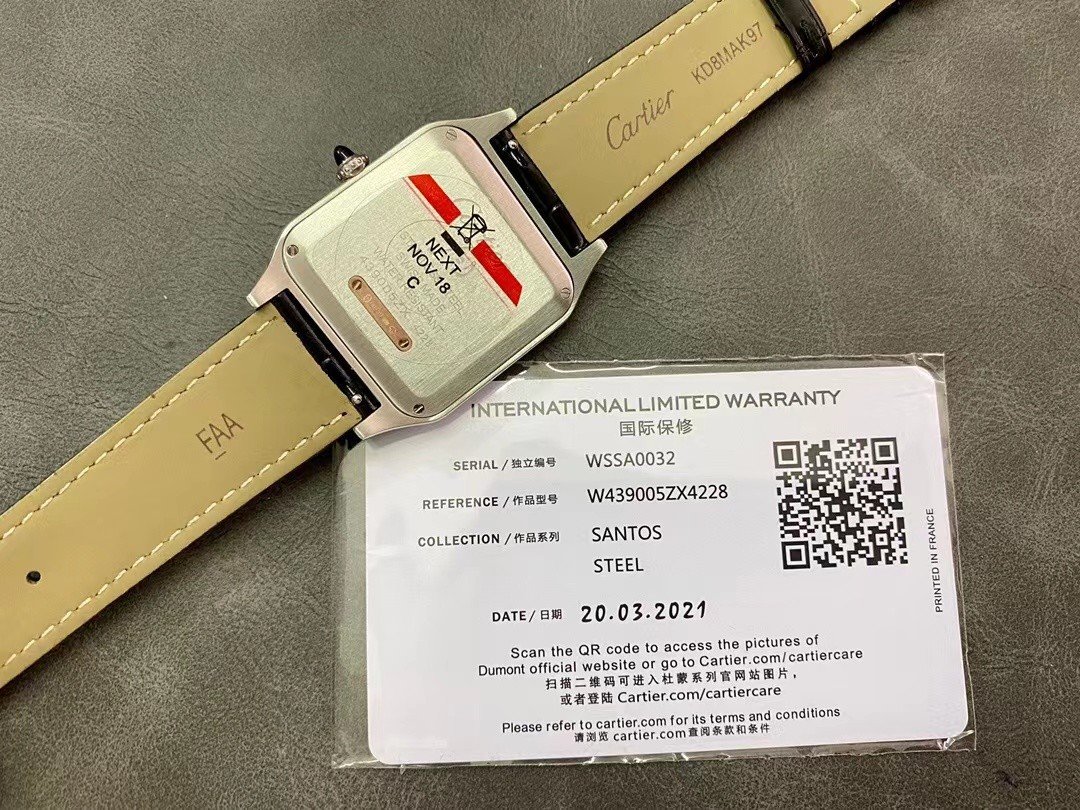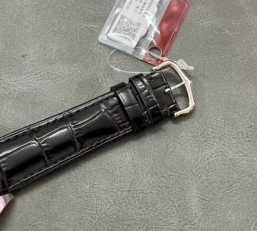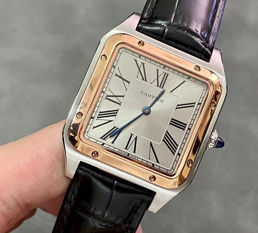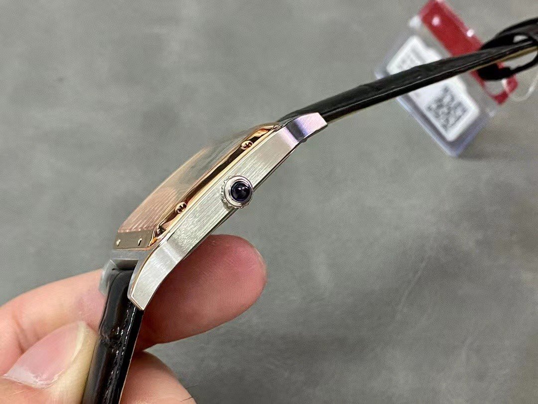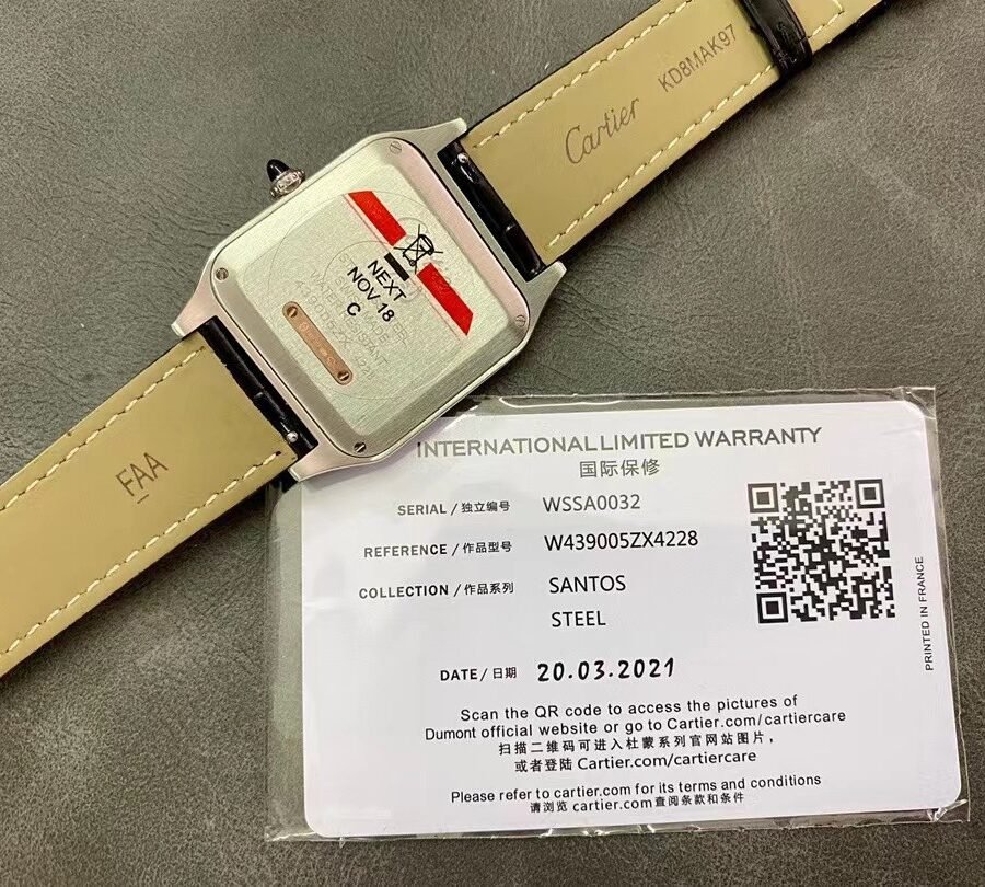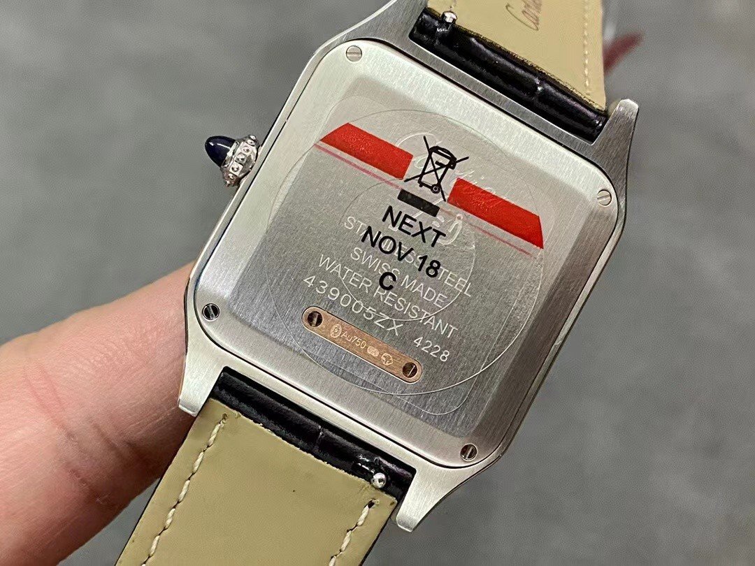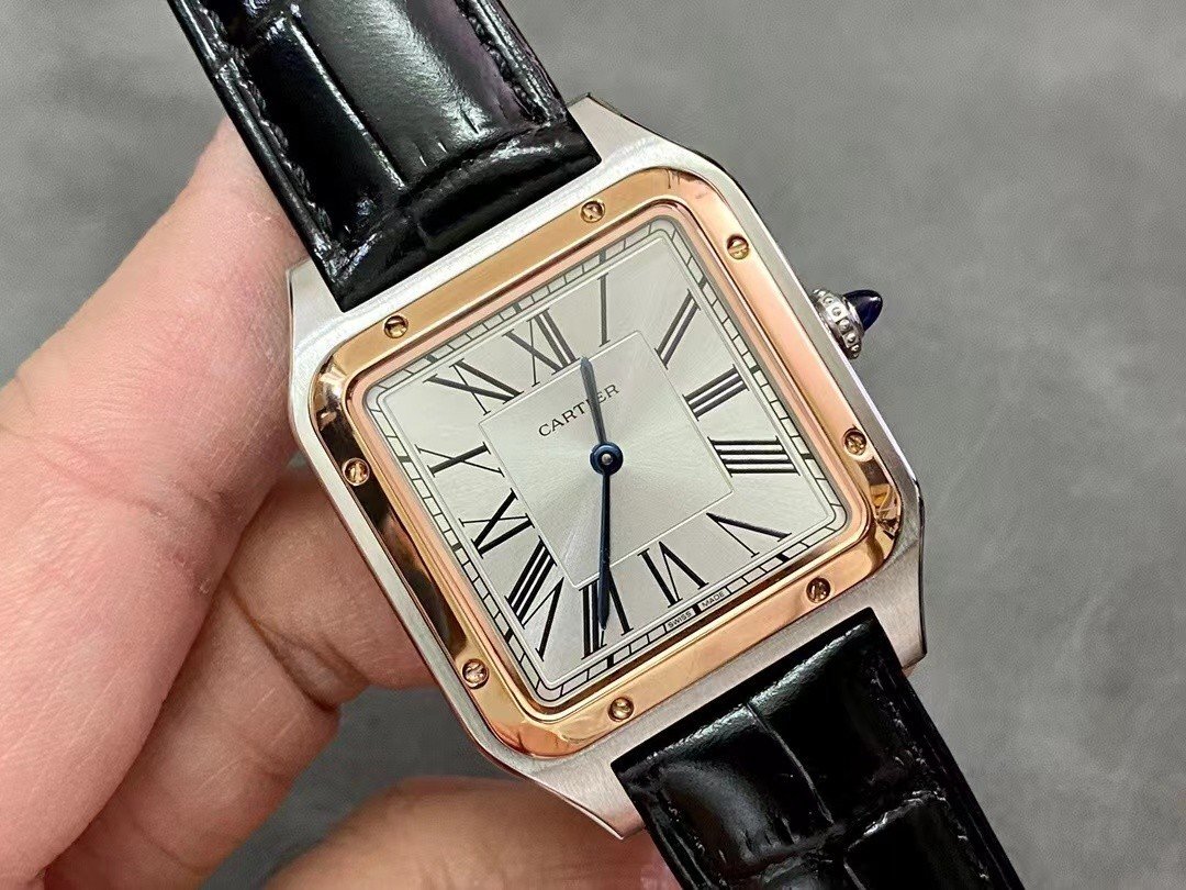 Cartier SANTOS-DUMONT , large model, black leather strap
