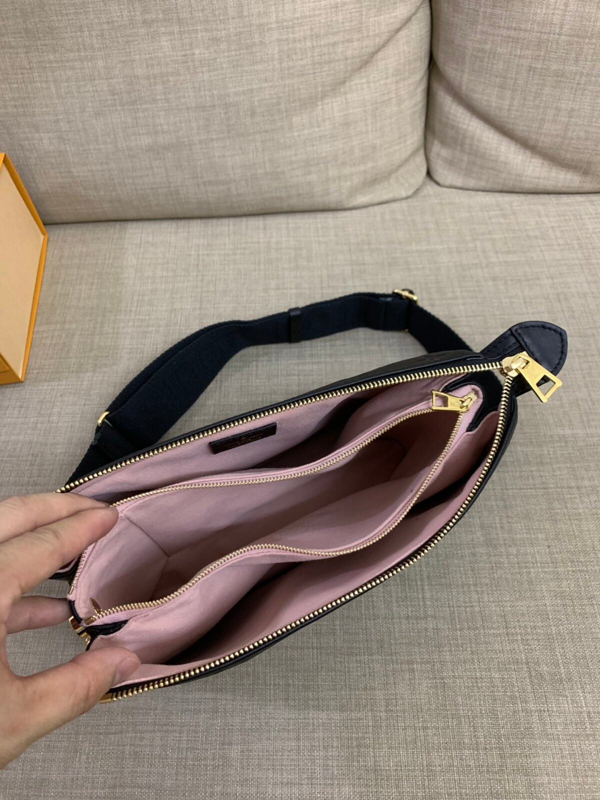 Fabric, leather and hardware from the original factory