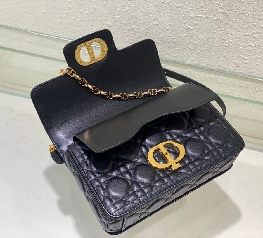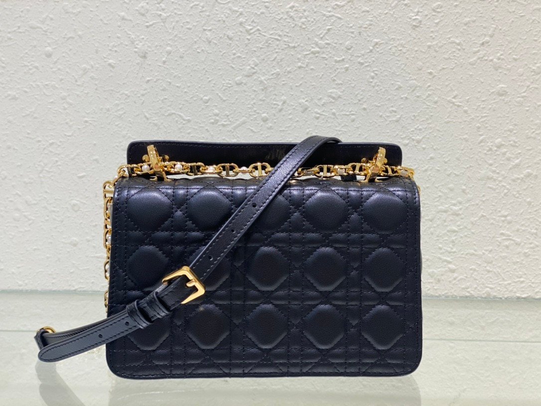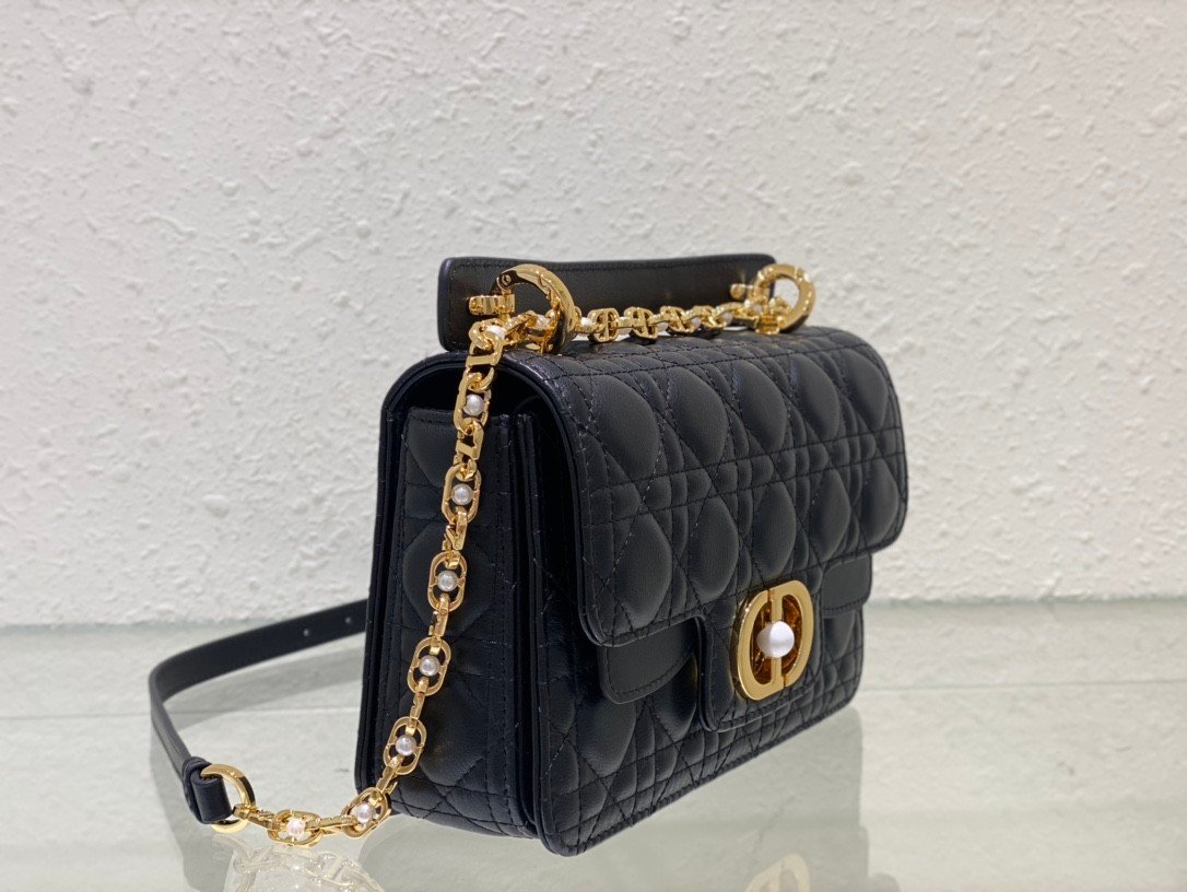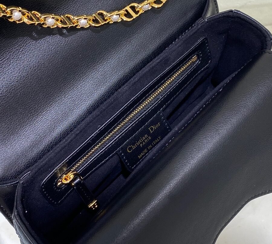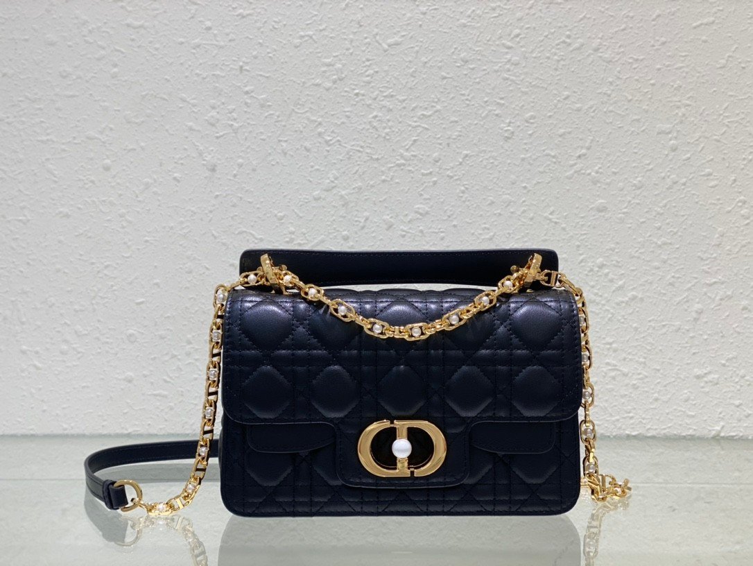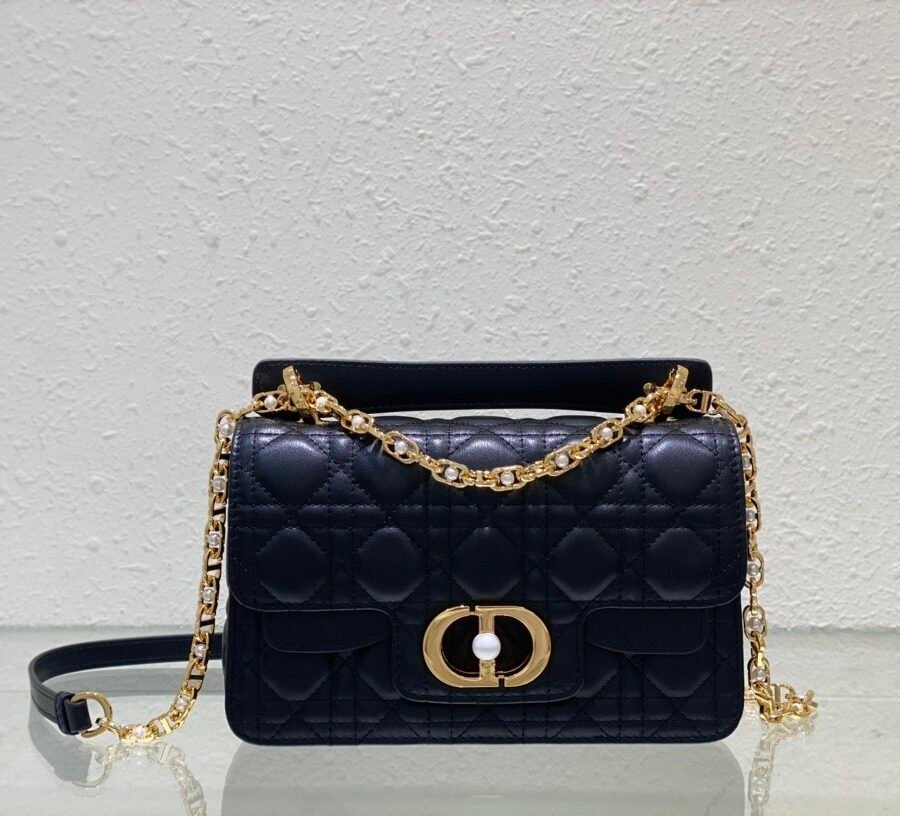 Dior Jolie Top Handle Bag (Small) in black leather with gold hardware