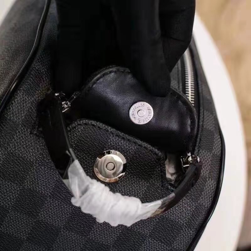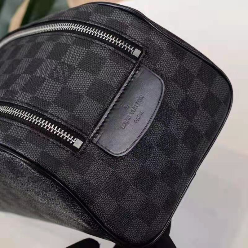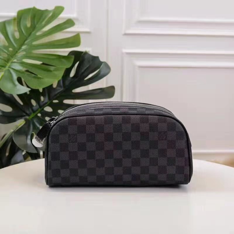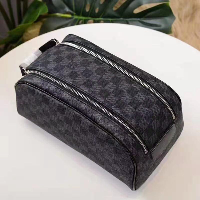 DOPP KIT TOILET POUCH in Damier Graphite coated canvas with Cowhide-leather, Silver-color hardware
