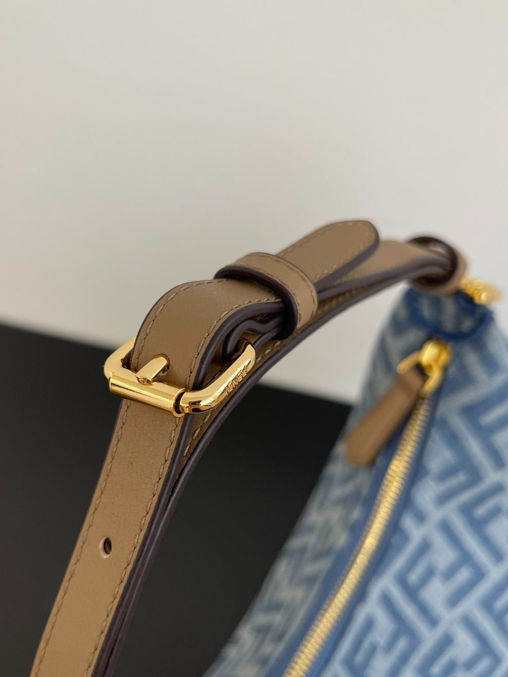 Fendi Fendigraphy in Light blue FF denim fabric and gold hardware