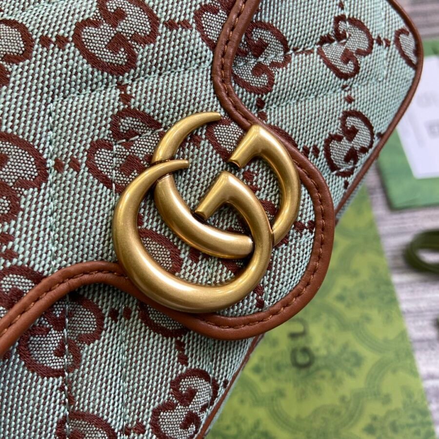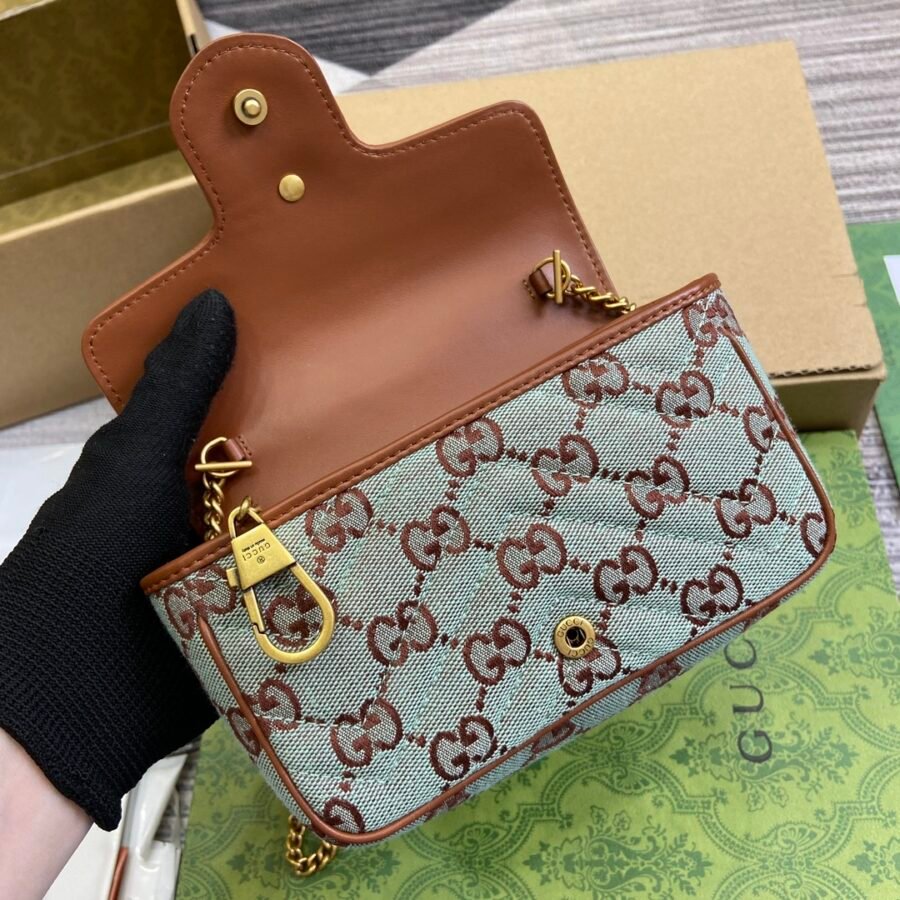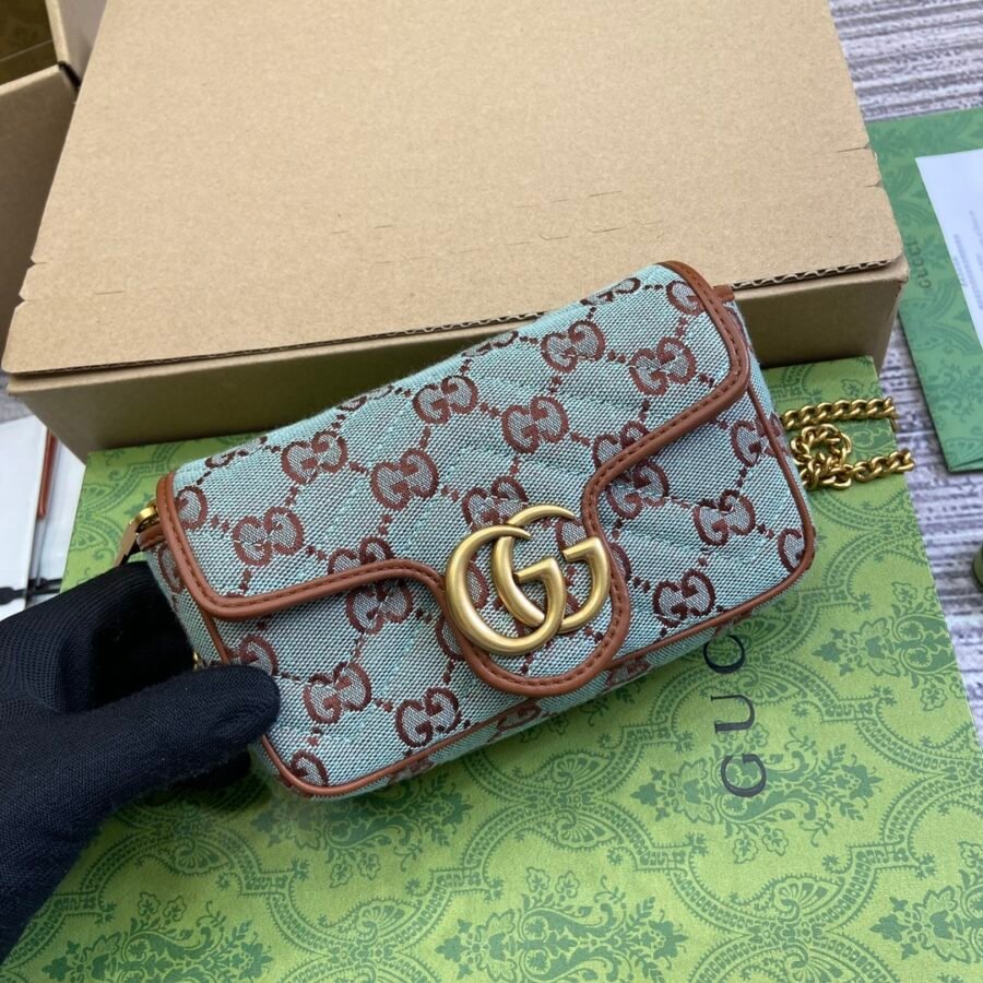 Gucci GG SUPER MINI in pale blue and brown GG canvas and gold hardware