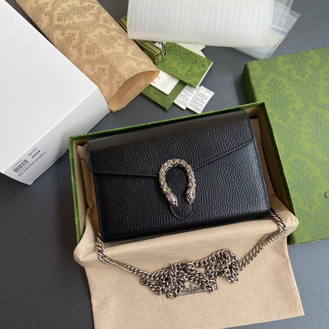 Gucci DIONYSUS Mini in black leather with silver hardware