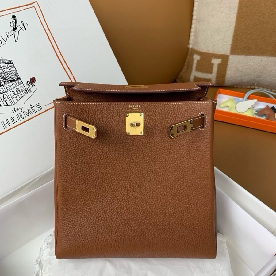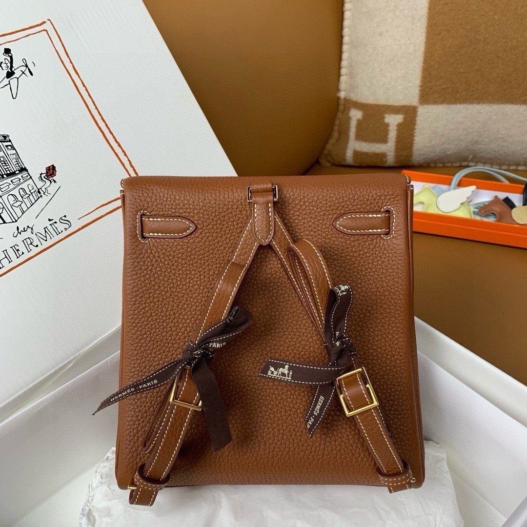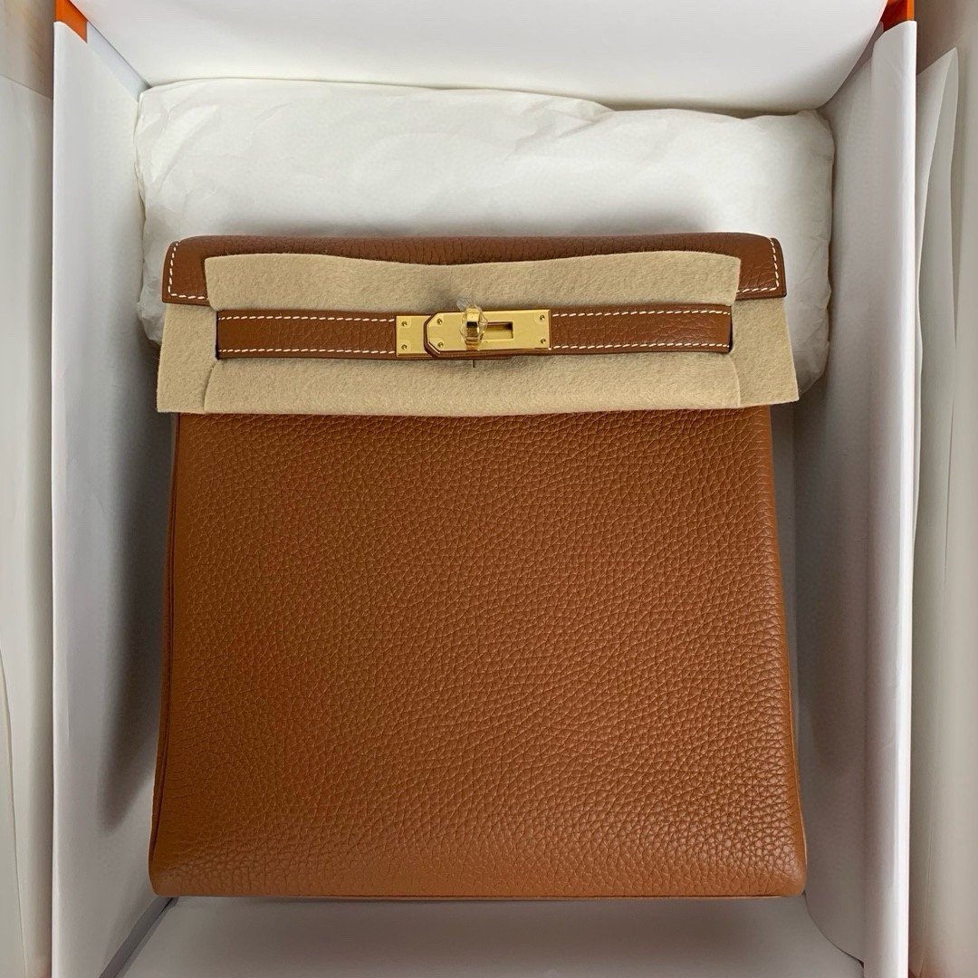 Hermes Kelly Ado backpack in Brown leather with gold hardware
