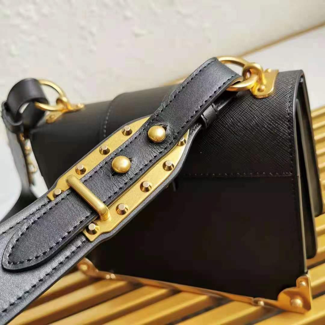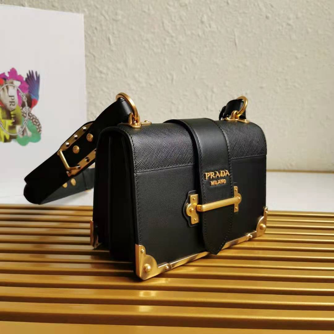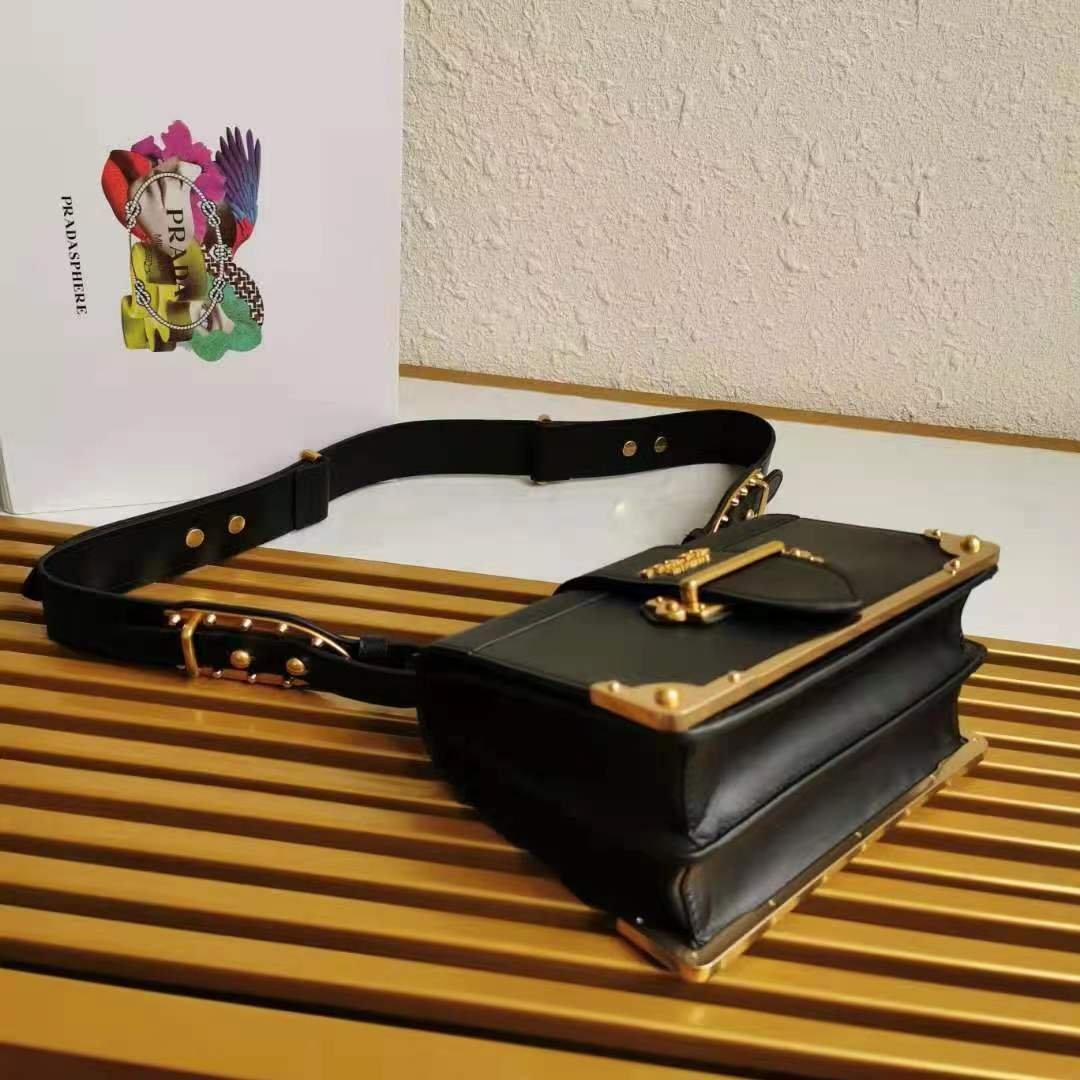 Leather Prada Cahier Bag in Black with Leather, Metal hardware