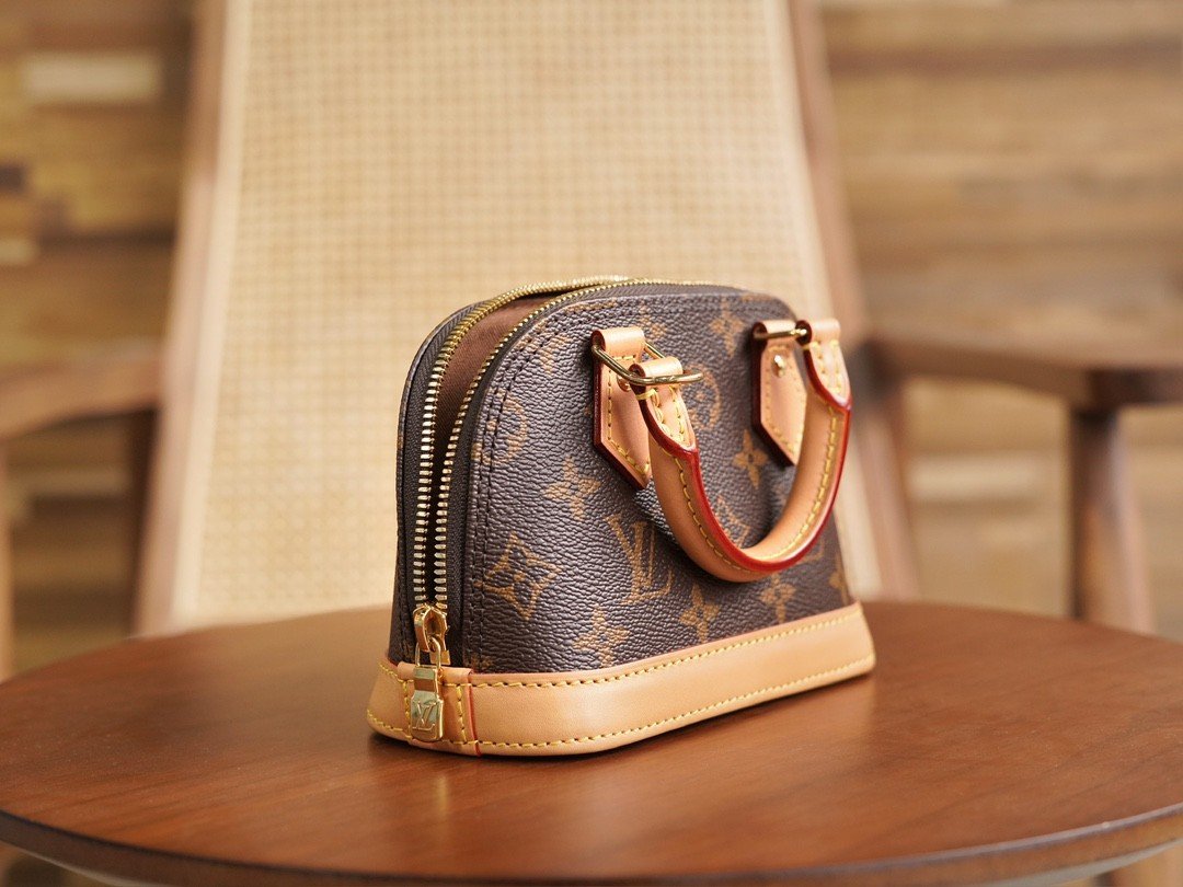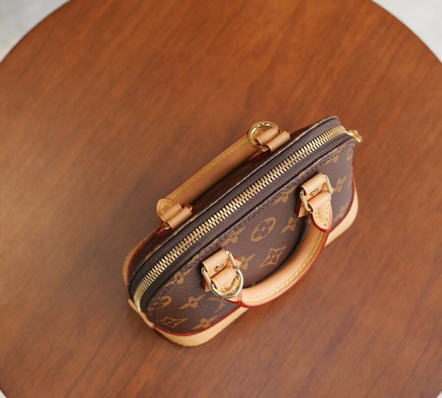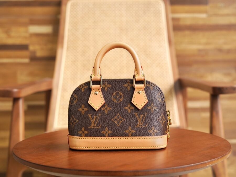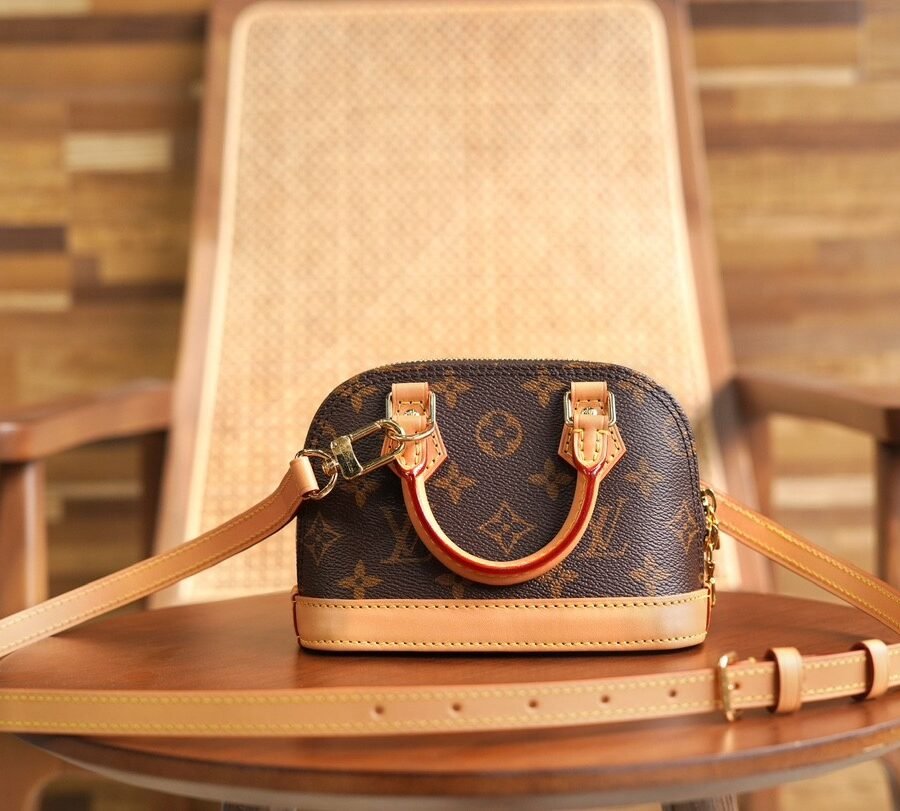 Louis Vuitton Nano Alma in Monogram coated canvas and gold hardware