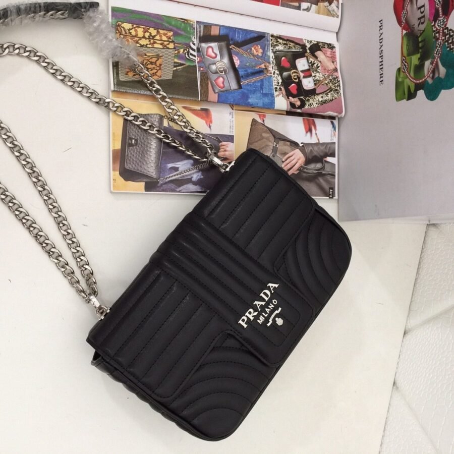 Medium Leather Prada Diagramme Bag in Black with Leather, Metal hardware