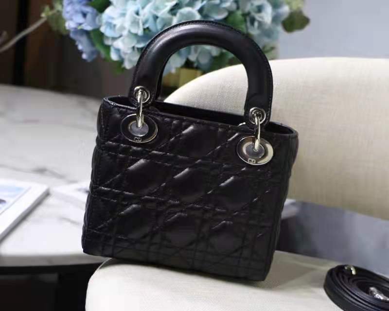MINI LADY DIOR BAG in Black with Cannage Lambskin, Silver hardware