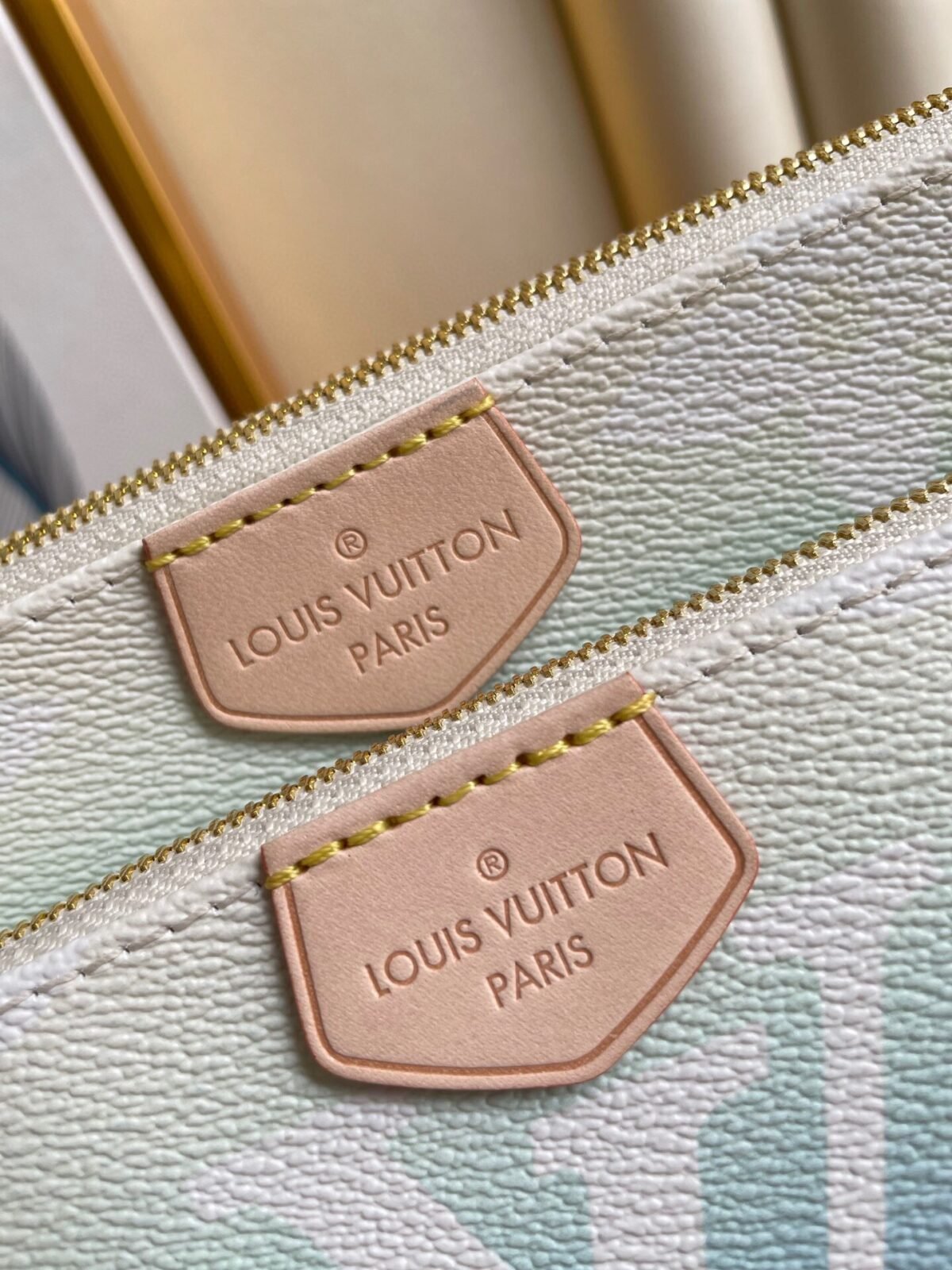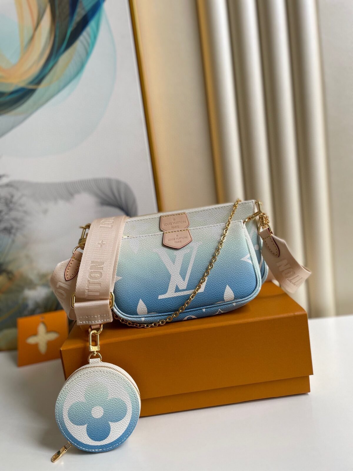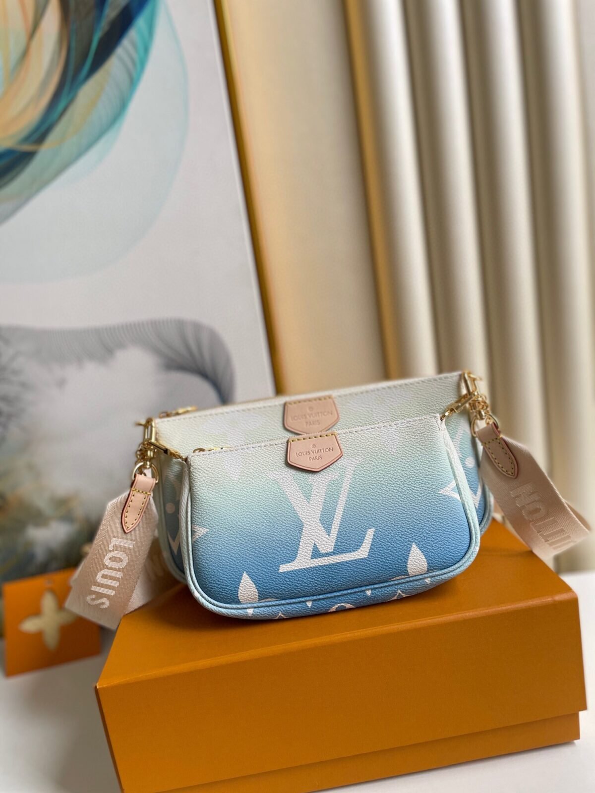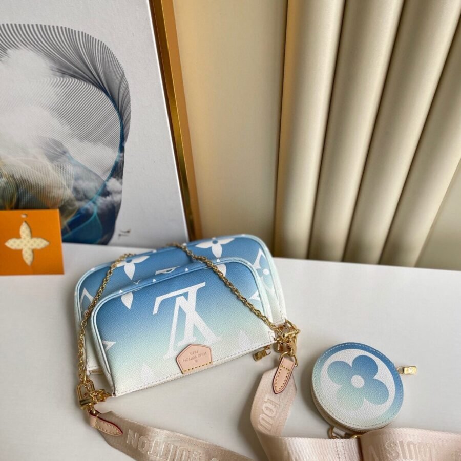 MULTI POCHETTE ACCESSOIRES in Blue with Natural cowhide-leather, Gold-color hardware