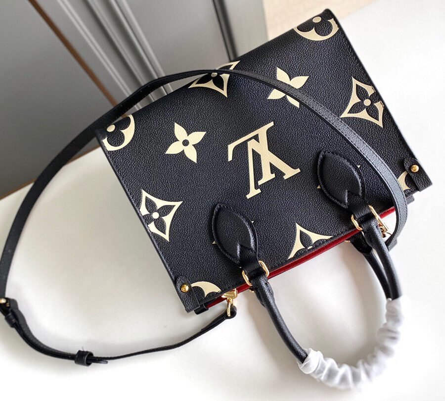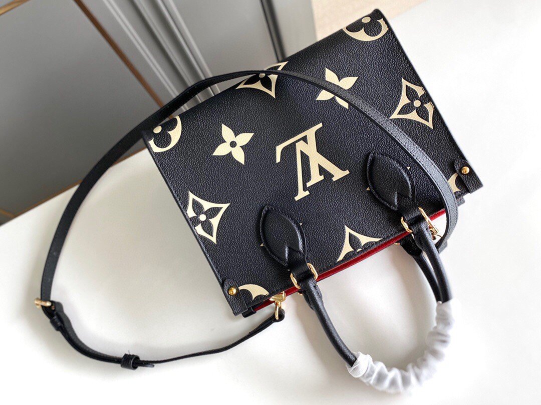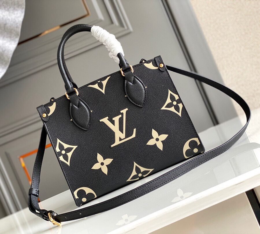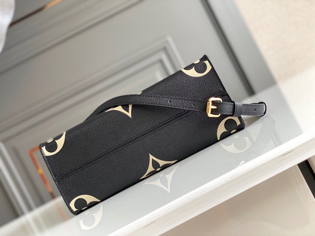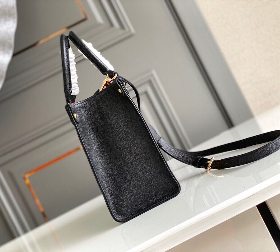 ONTHEGO PM in Black with Grained cowhide leather trim, Gold-color hardware