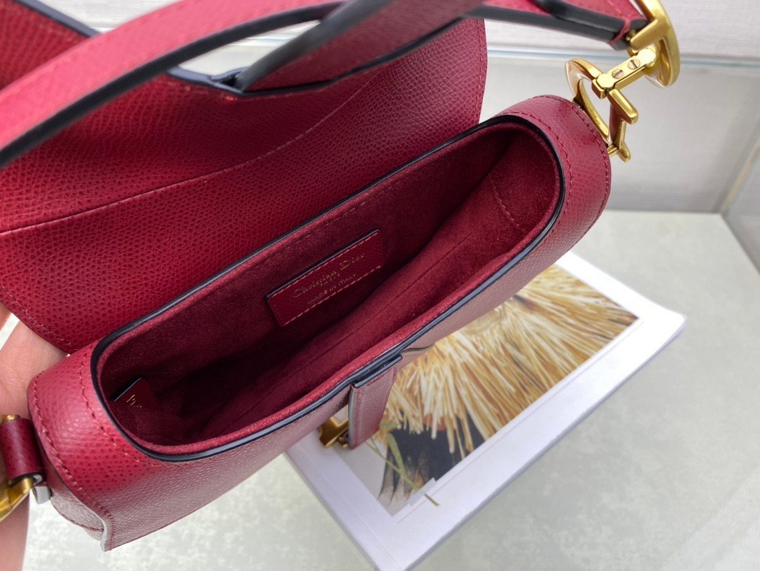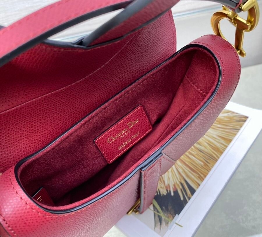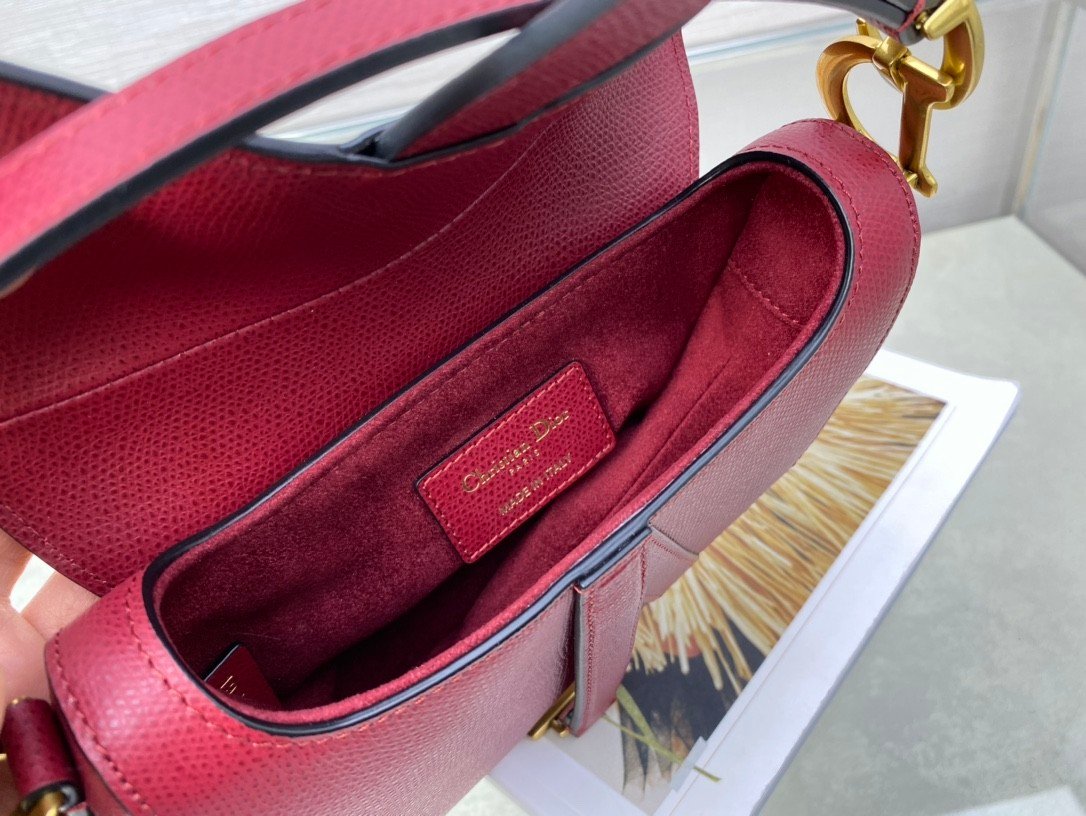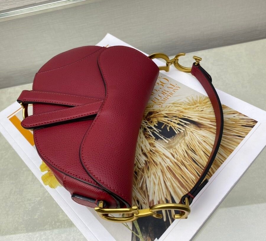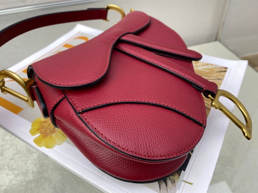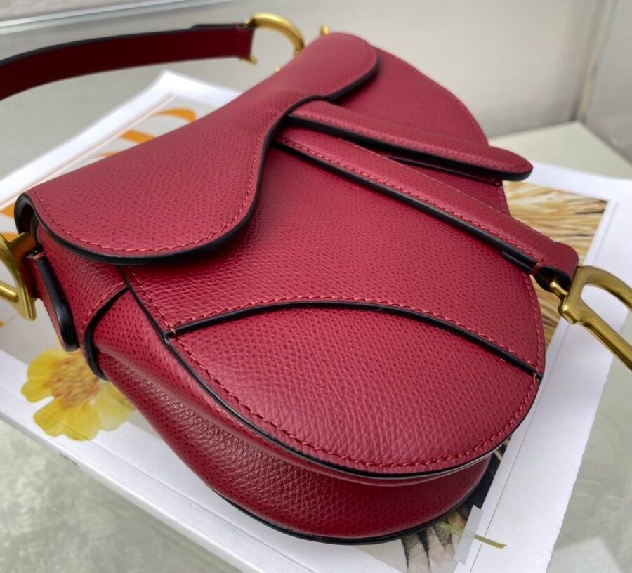 SADDLE BAG in Cherry Red with Grained Calfskin