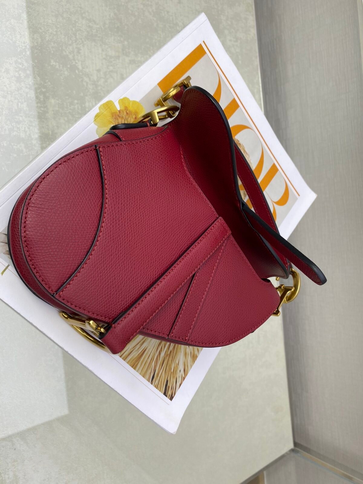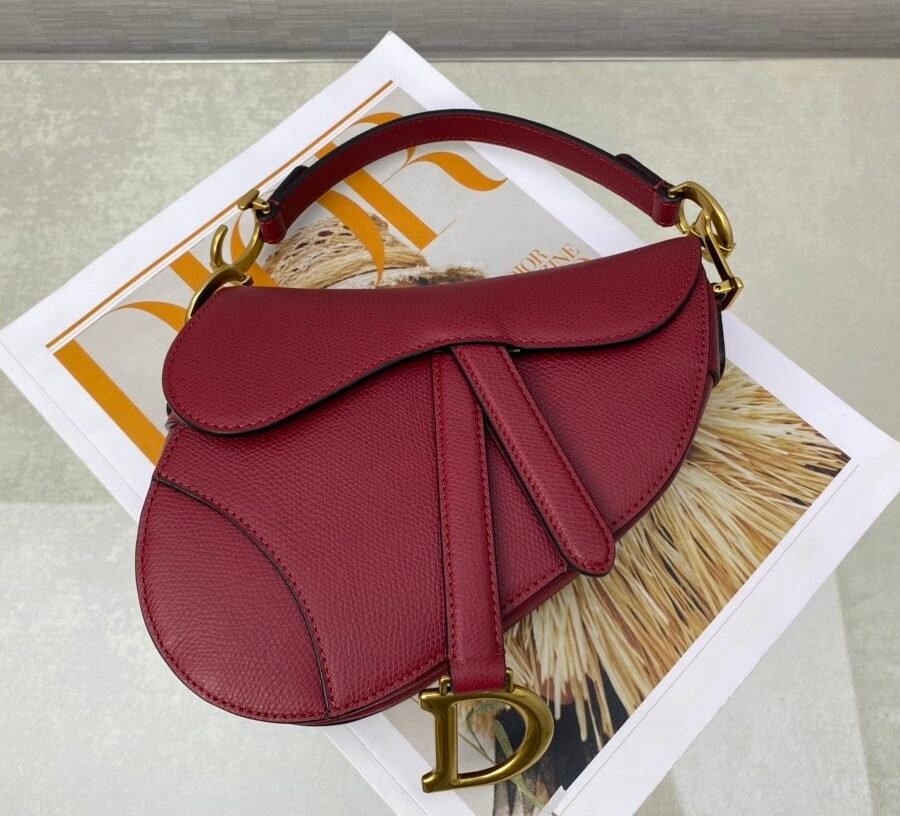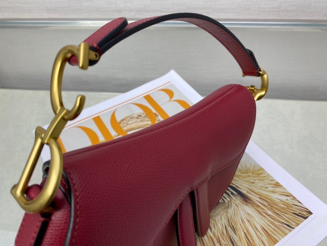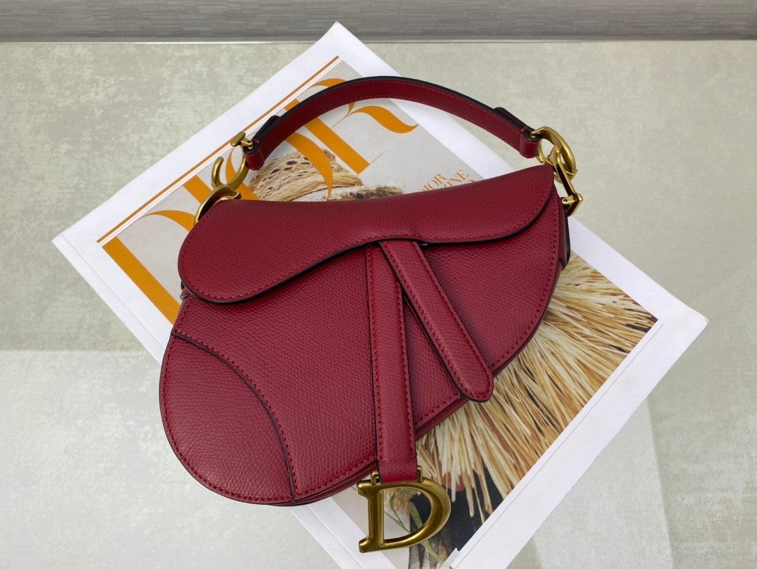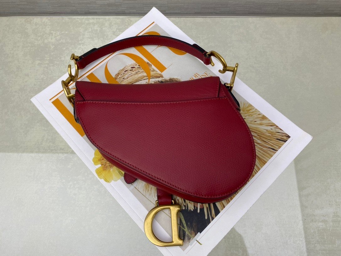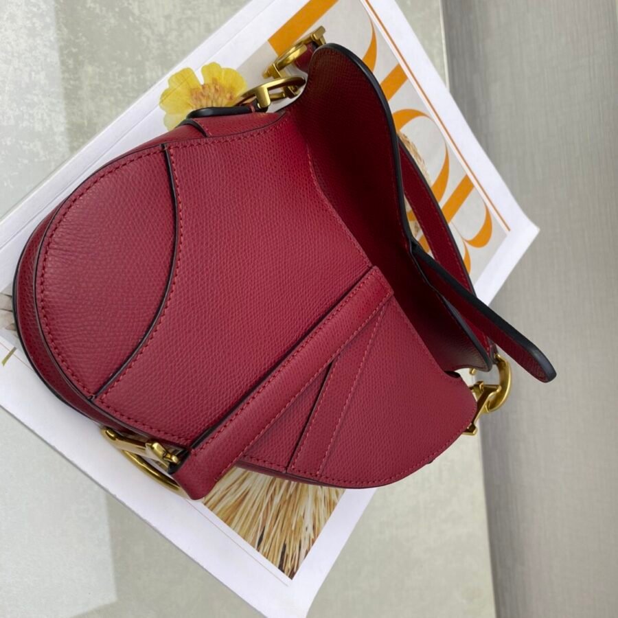 SADDLE BAG in Cherry Red with Grained Calfskin
