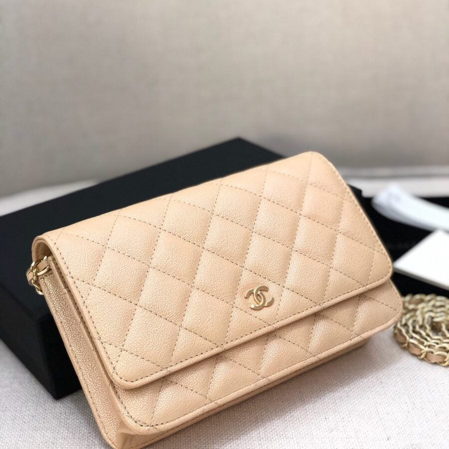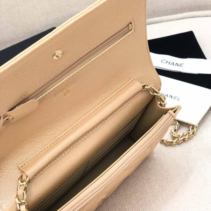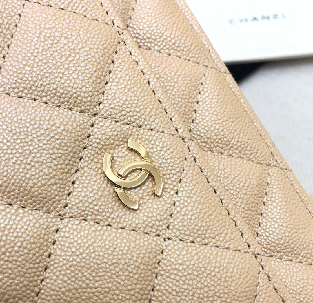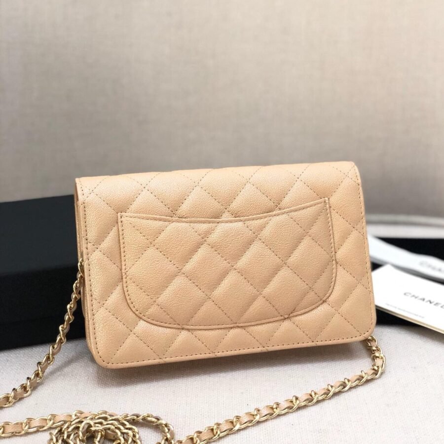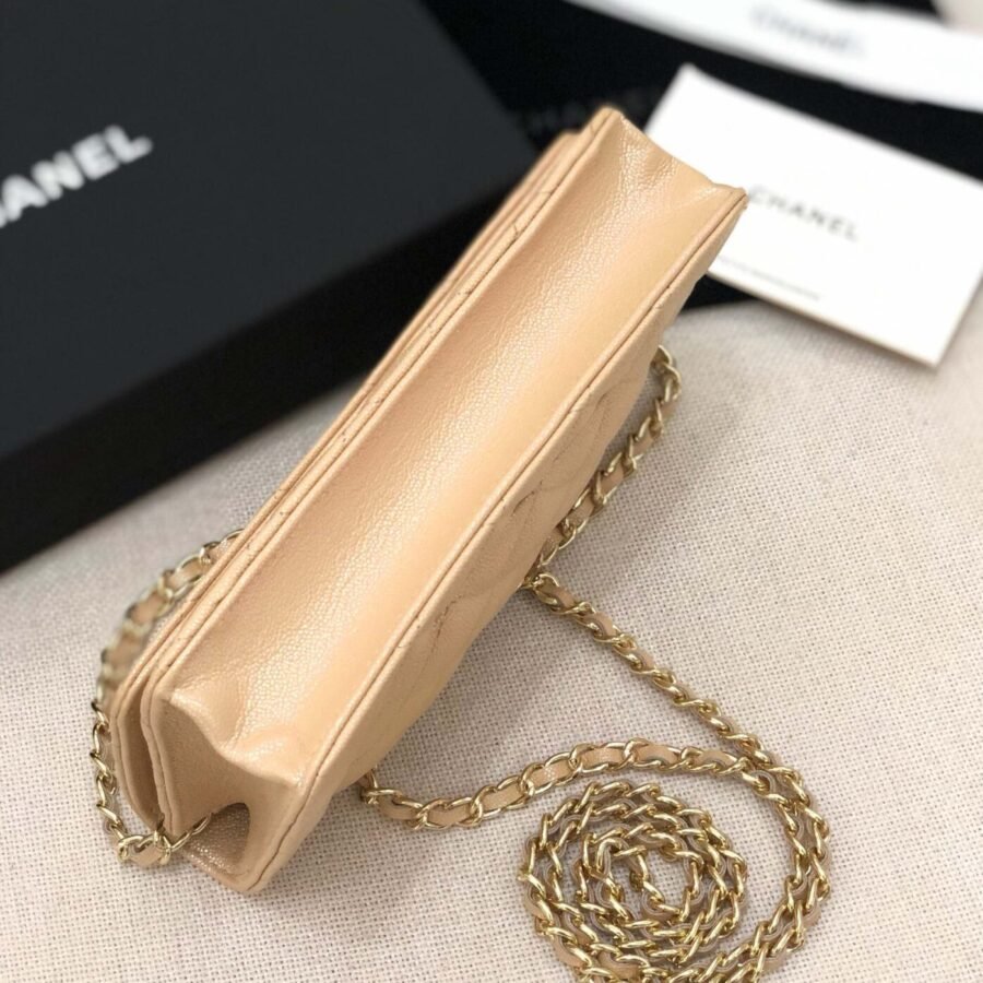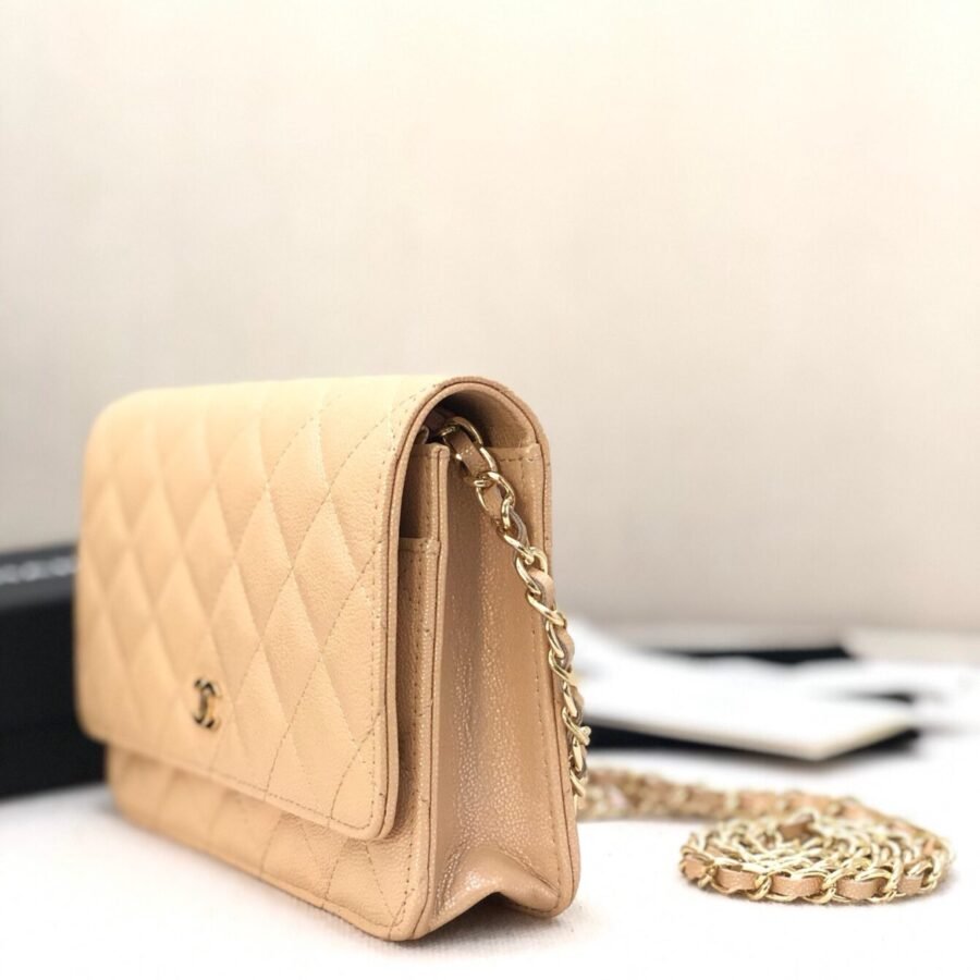 Wallet On Chain in Beige with Grained Calfskin