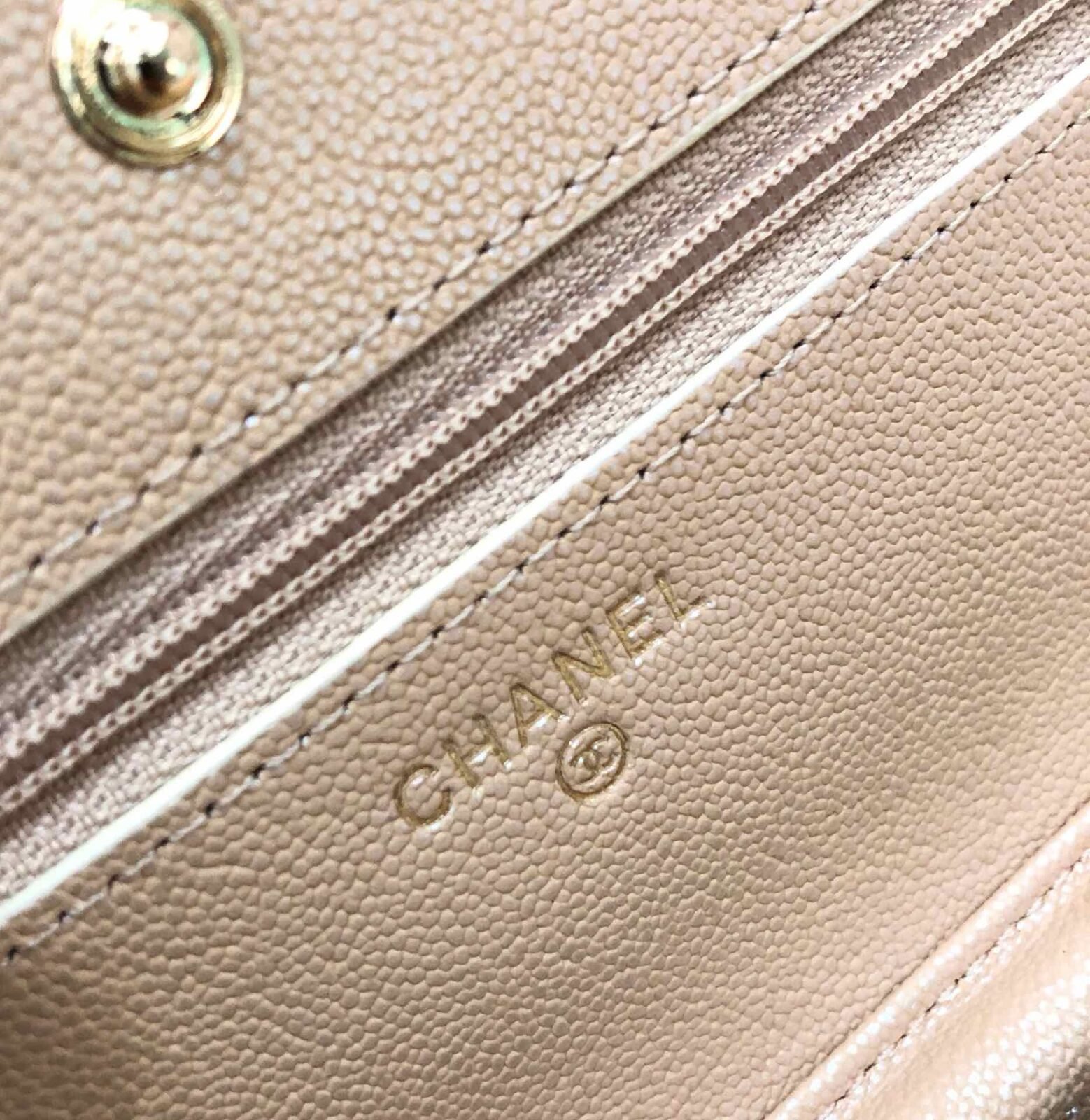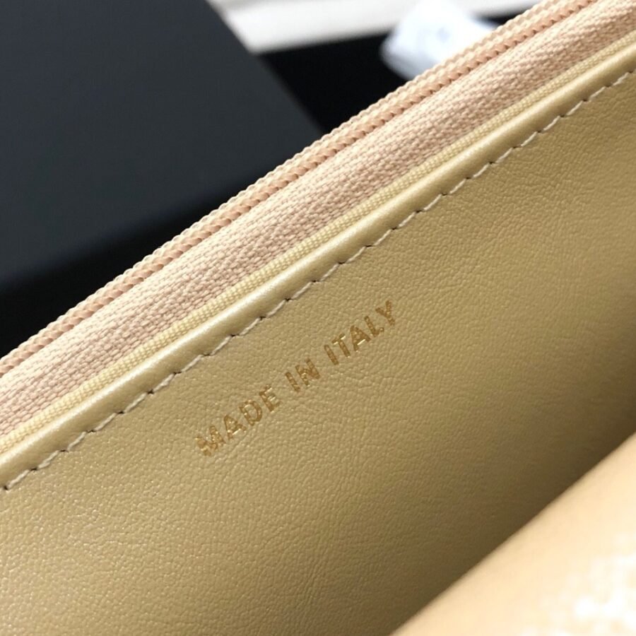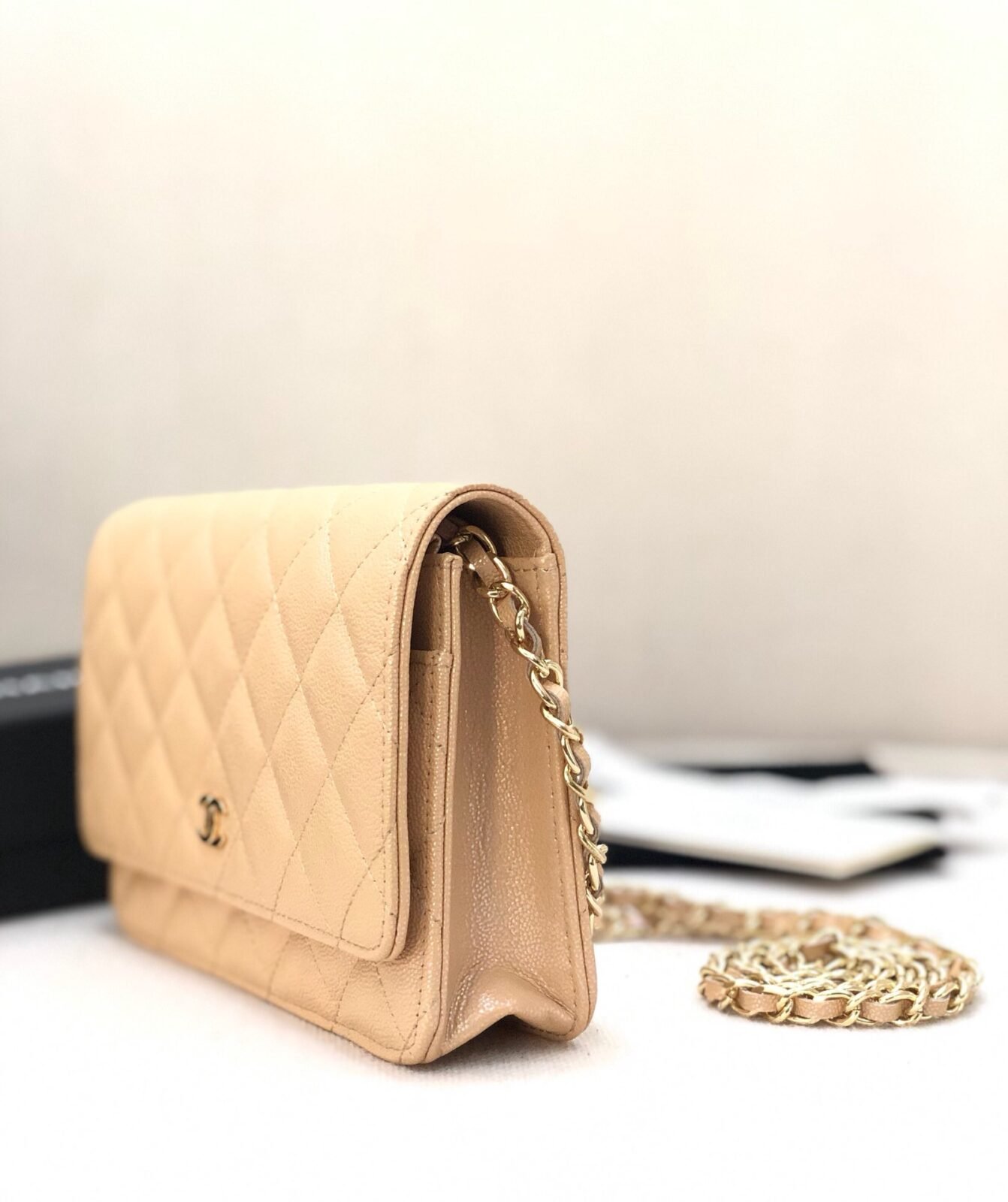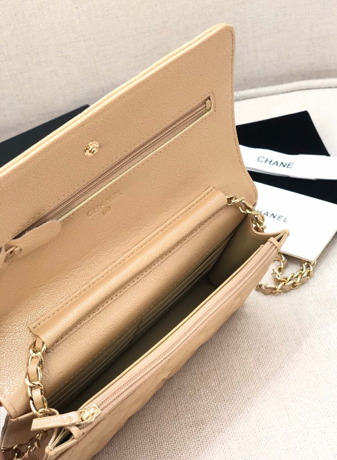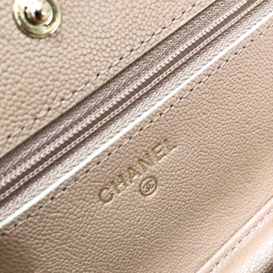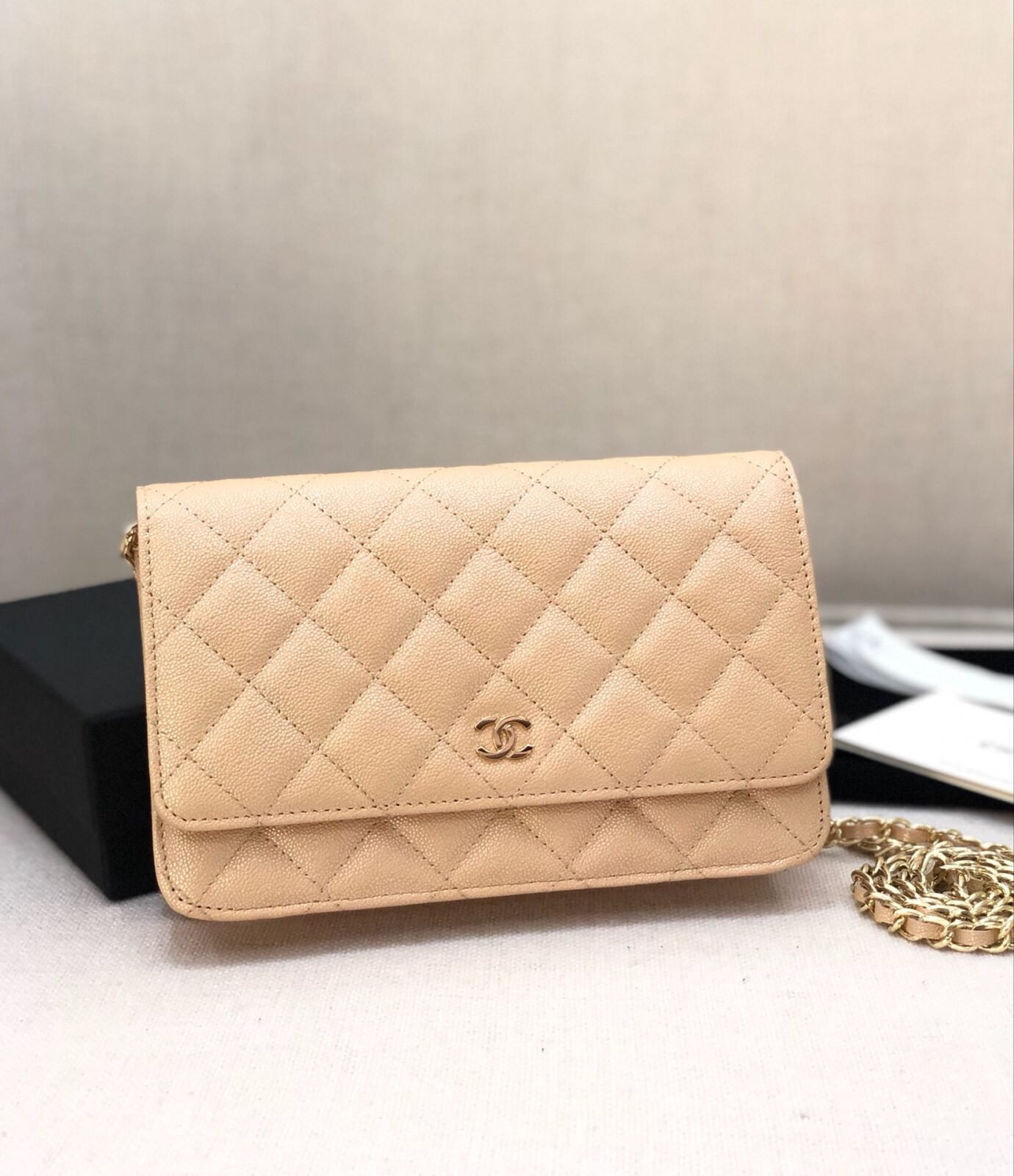 Wallet On Chain in Beige with Grained Calfskin