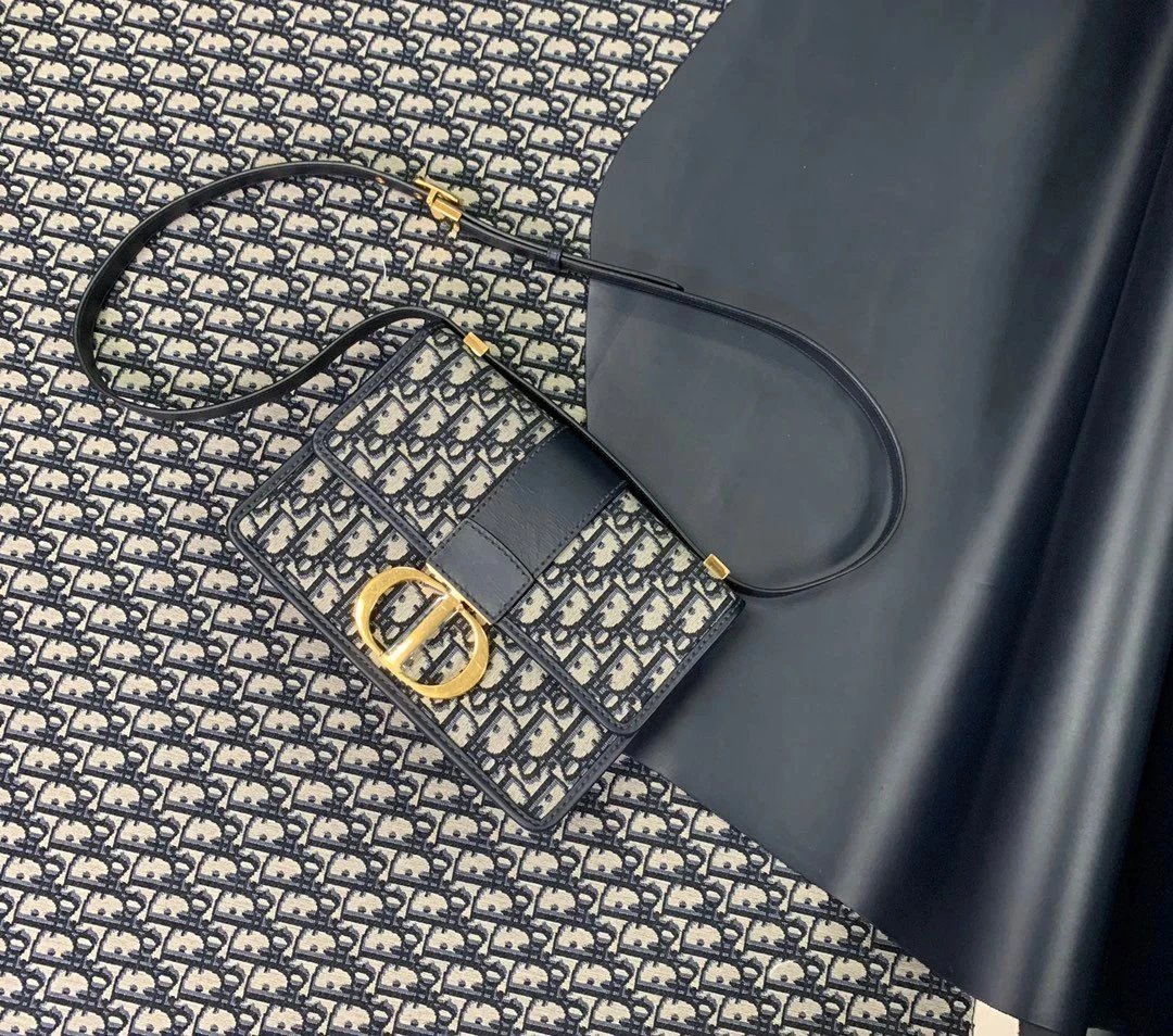 30 MONTAIGNE BAG in Blue Dior Oblique with , ~ Jacquard