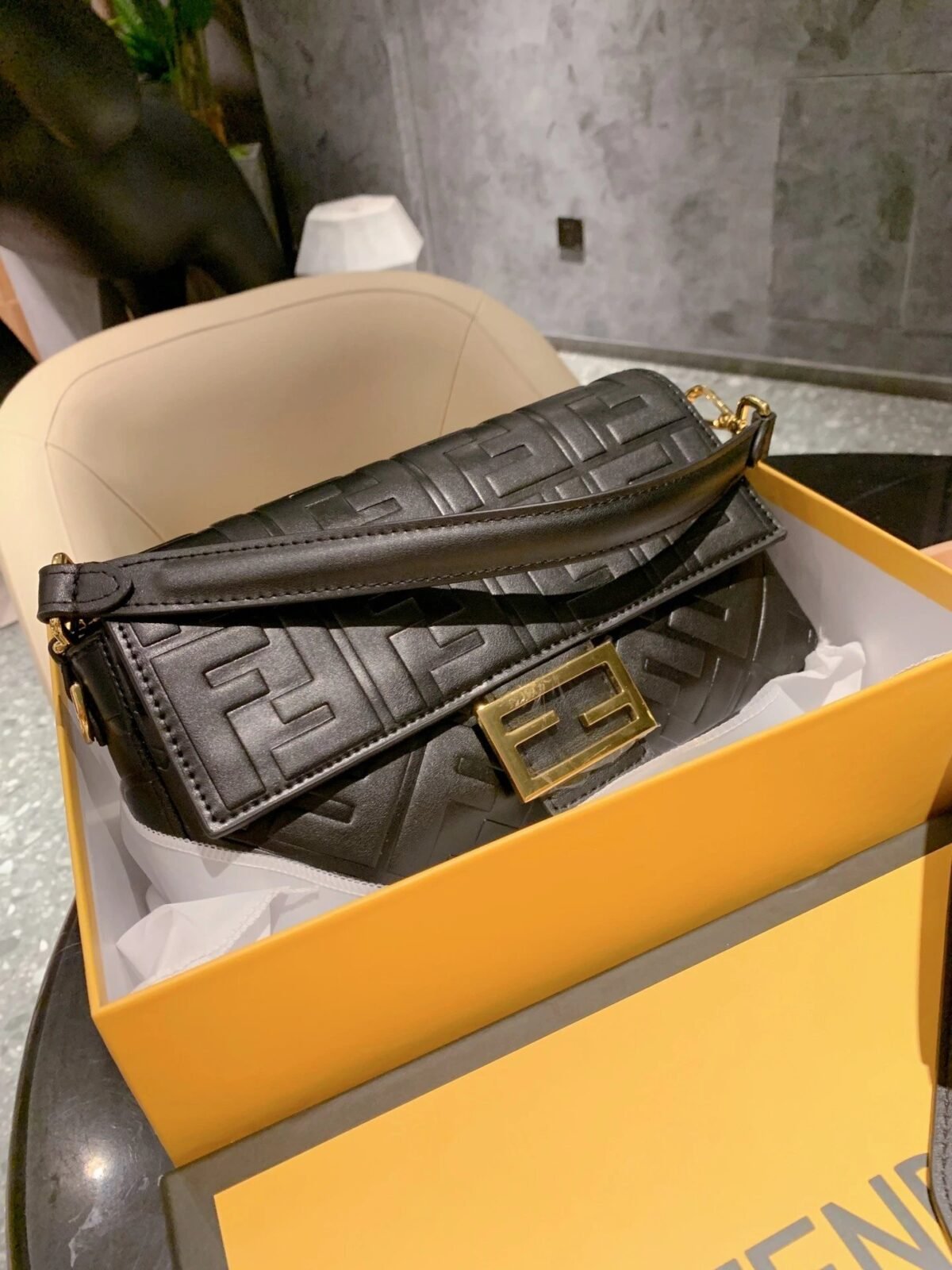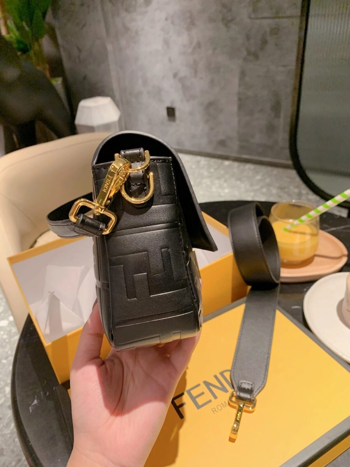 BAGUETTE in Black with black soft nappa leather, gold-finish metalware