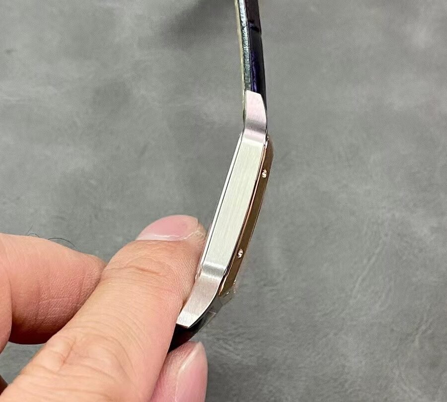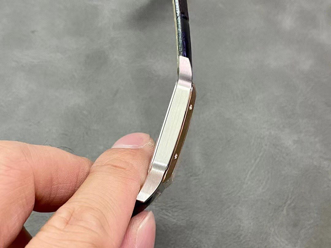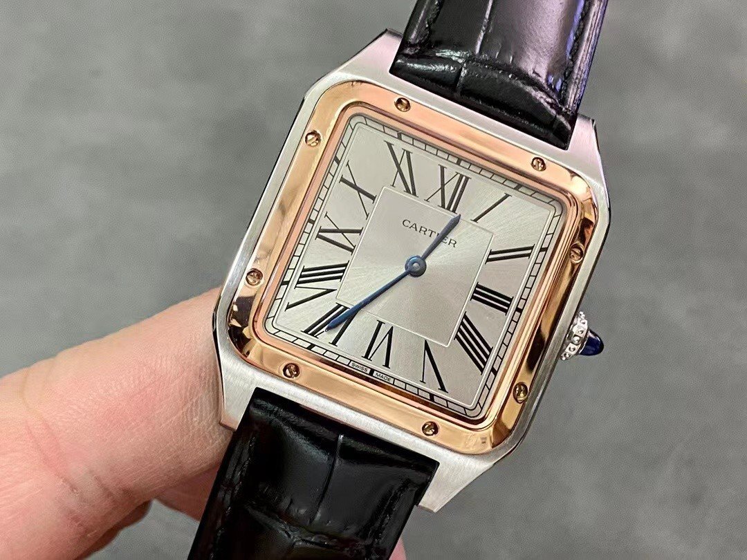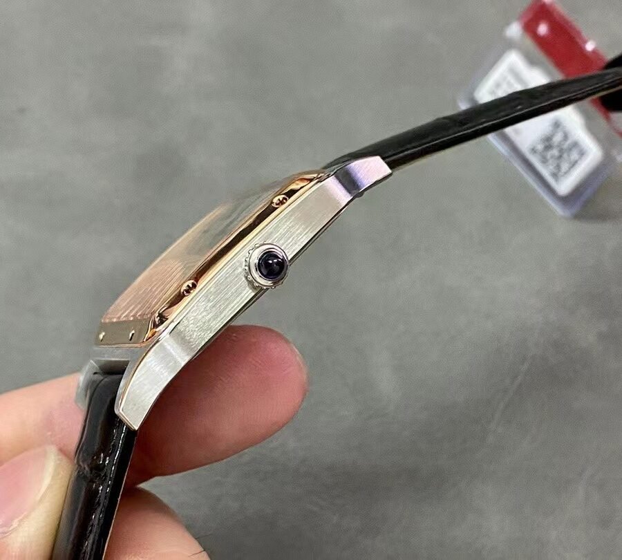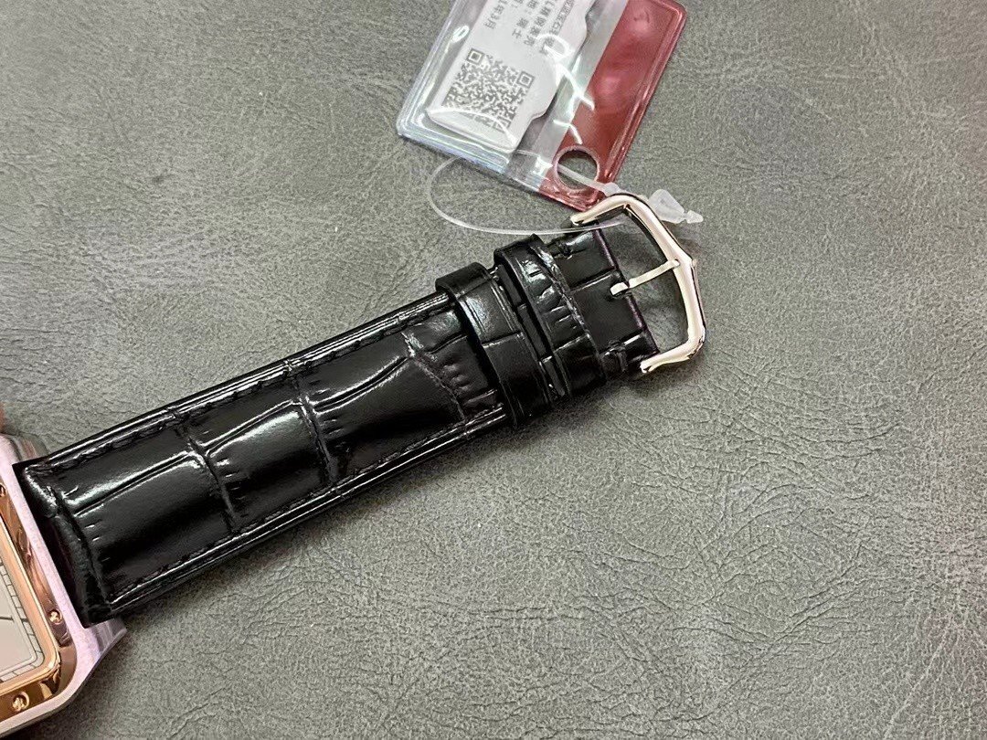 Cartier SANTOS-DUMONT , large model, black leather strap