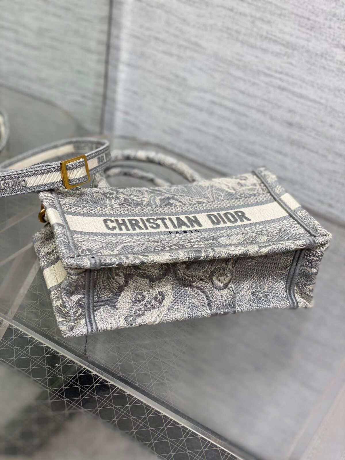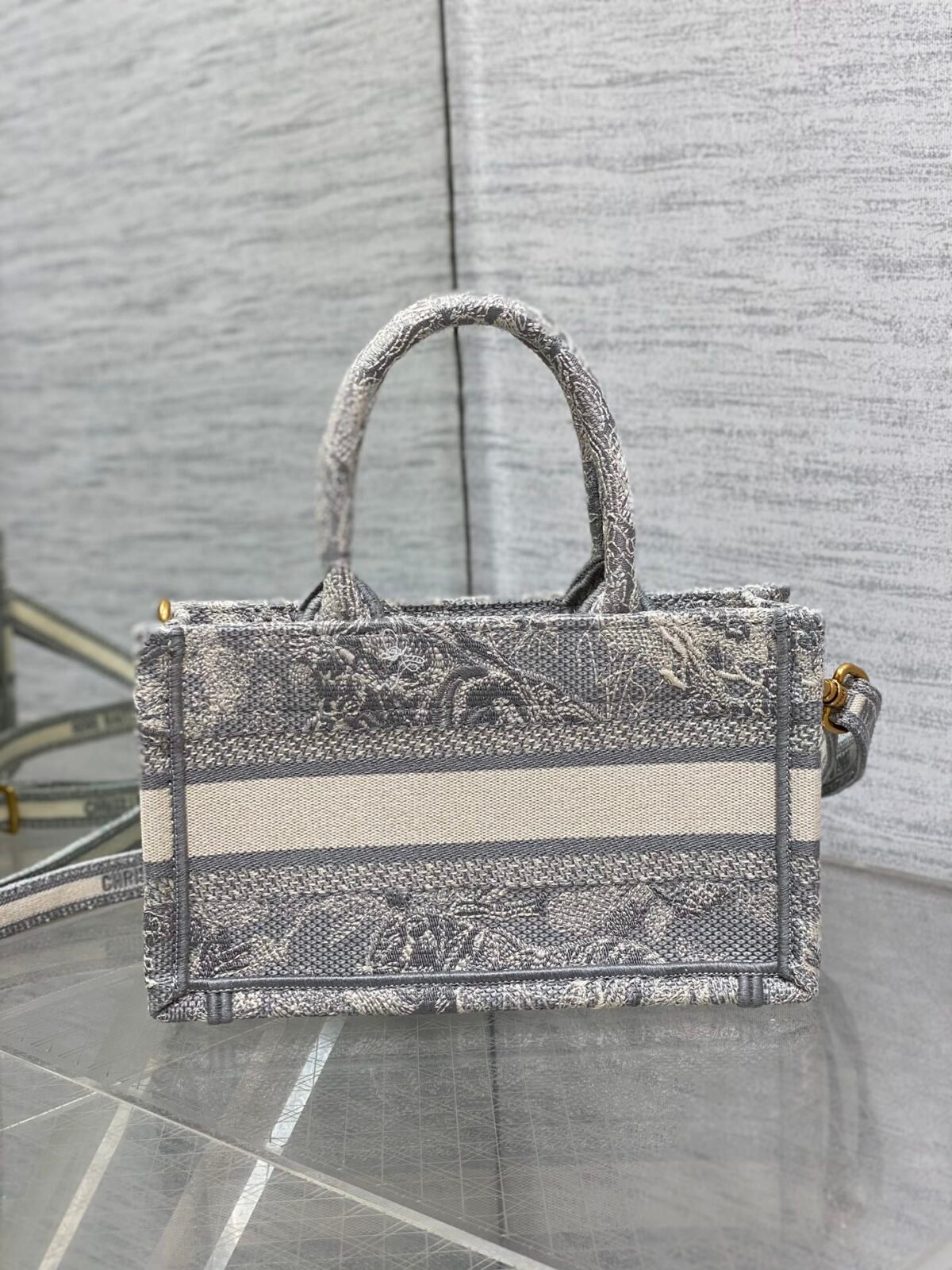 Christian Dior mini tote in grey and gold hardware