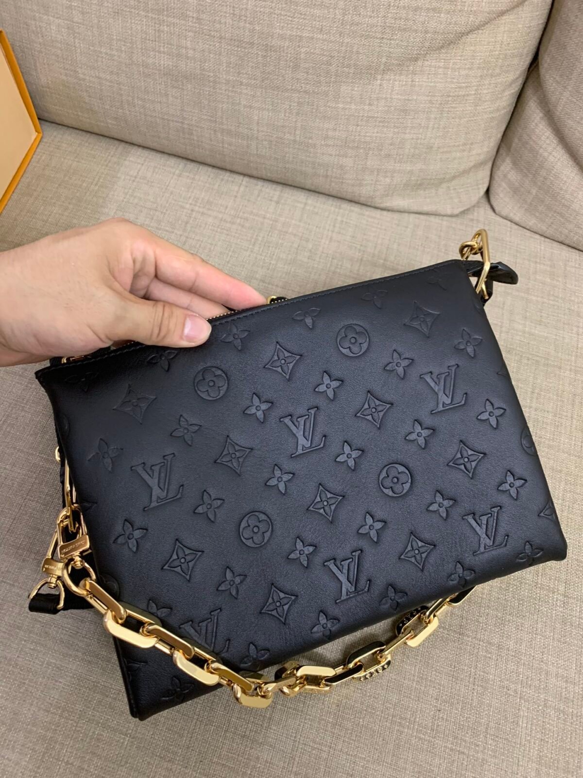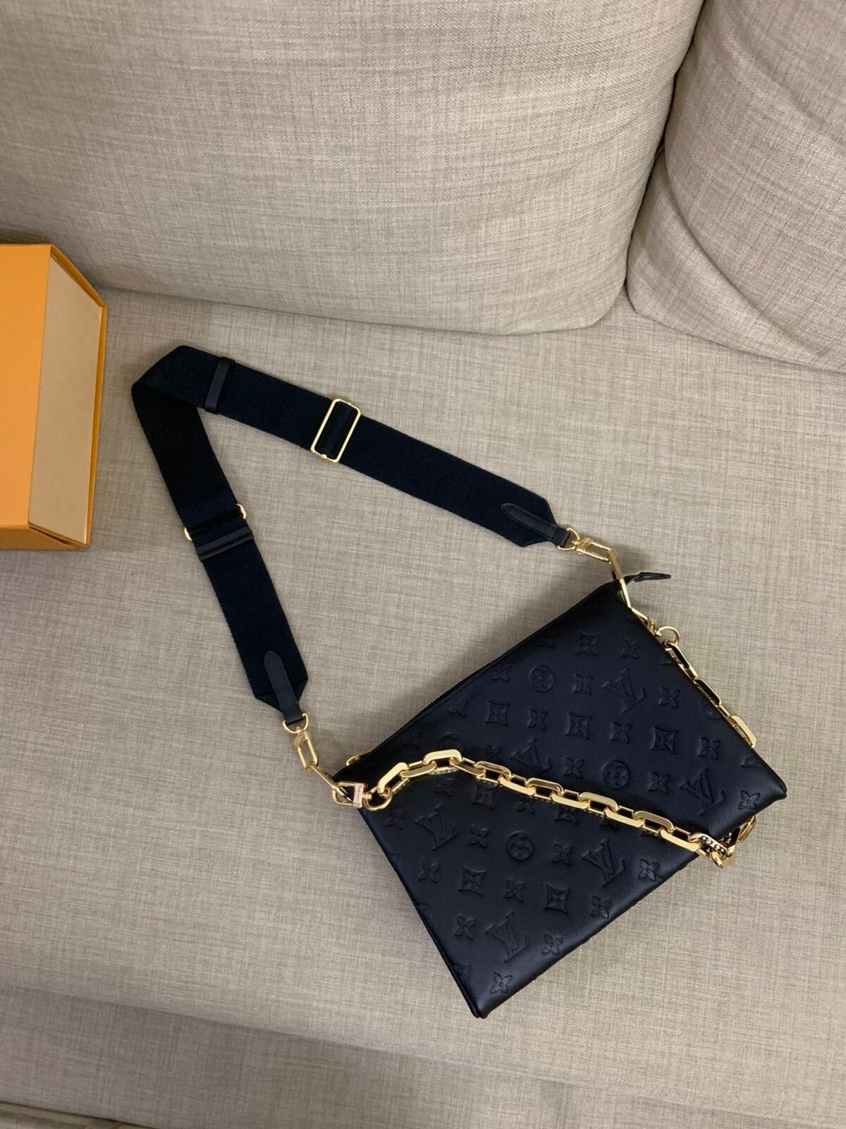 COUSSIN PM in Black with Calfskin-leather trim, Gold-color hardware