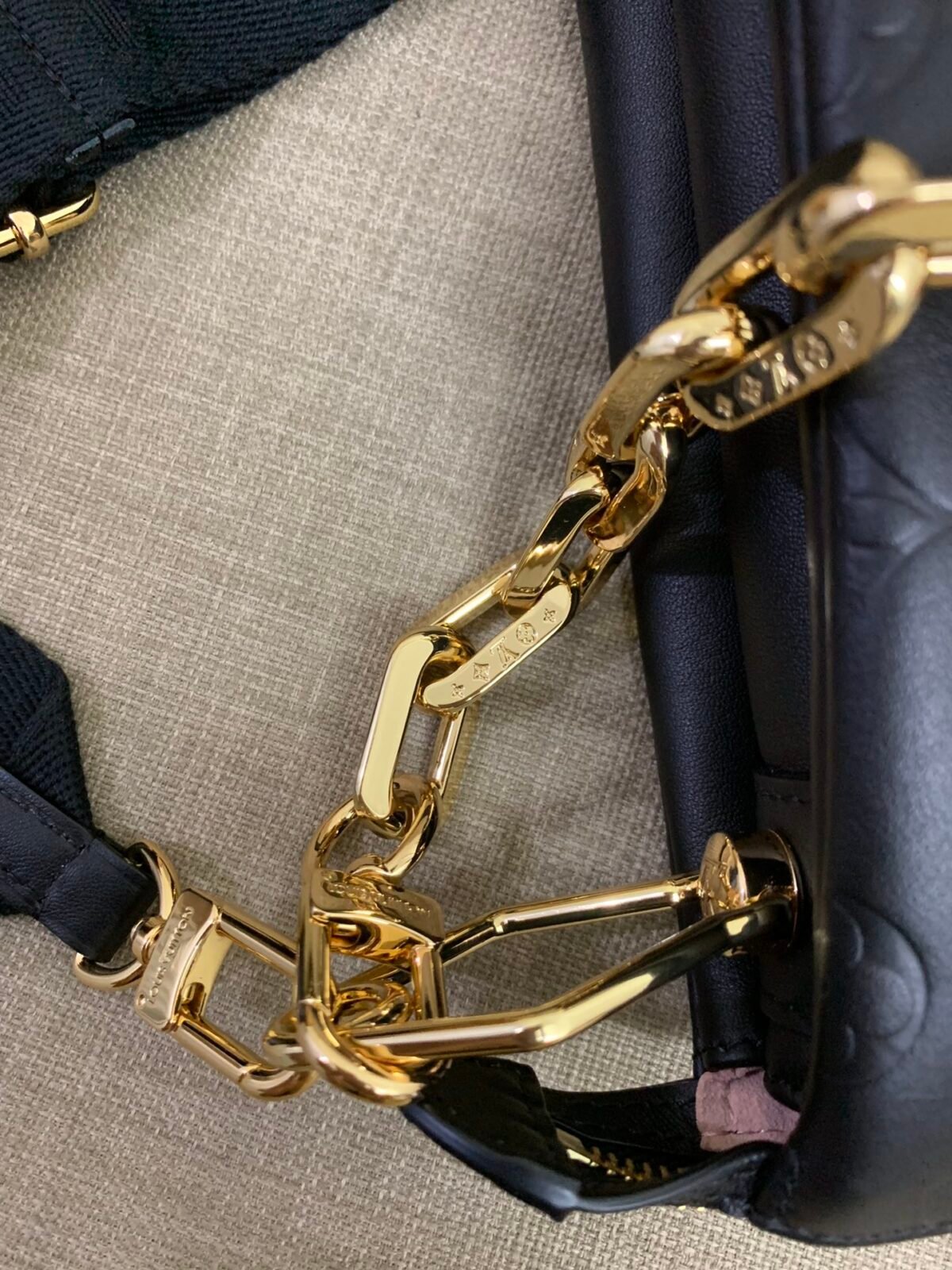 Fabric, leather and hardware from the original factory
