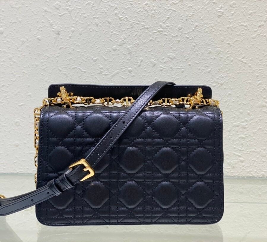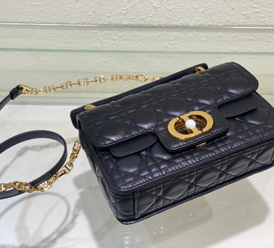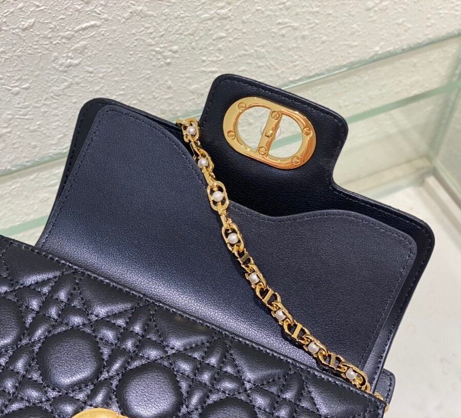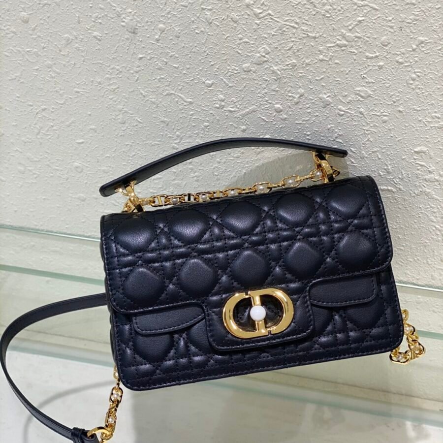 Dior Jolie Top Handle Bag (Small) in black leather with gold hardware