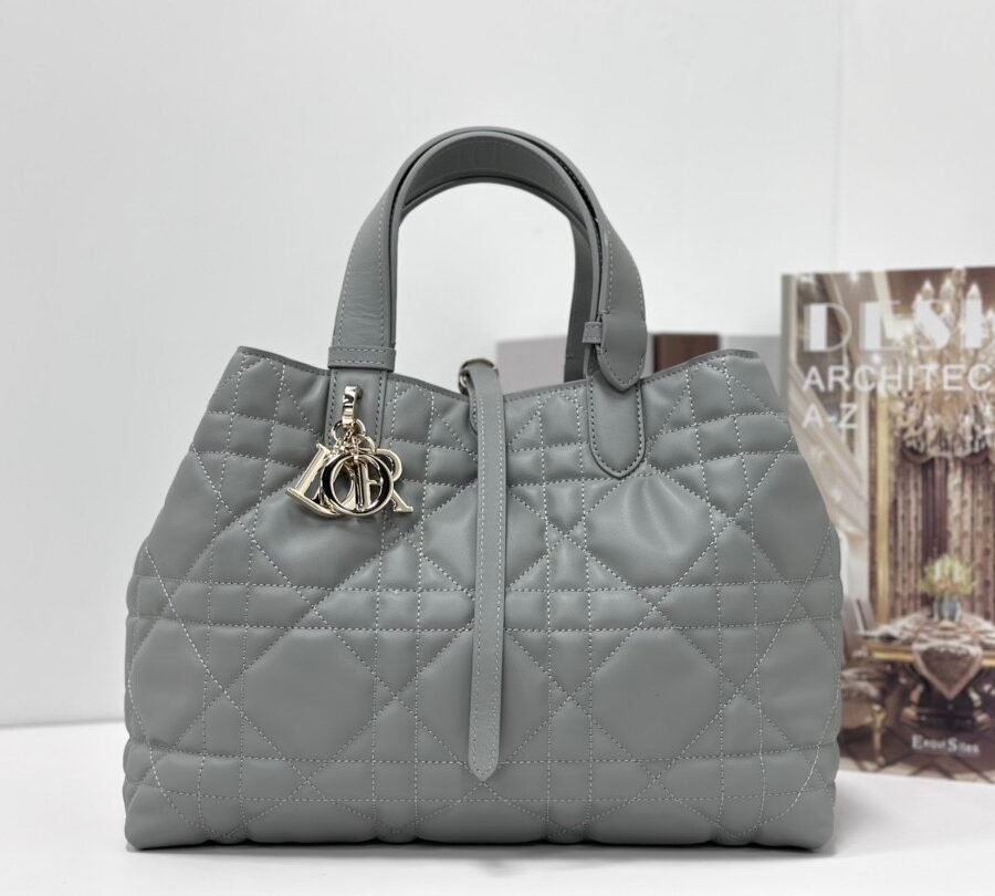 Dior Toujours (Medium) in grey leather with silver hardware