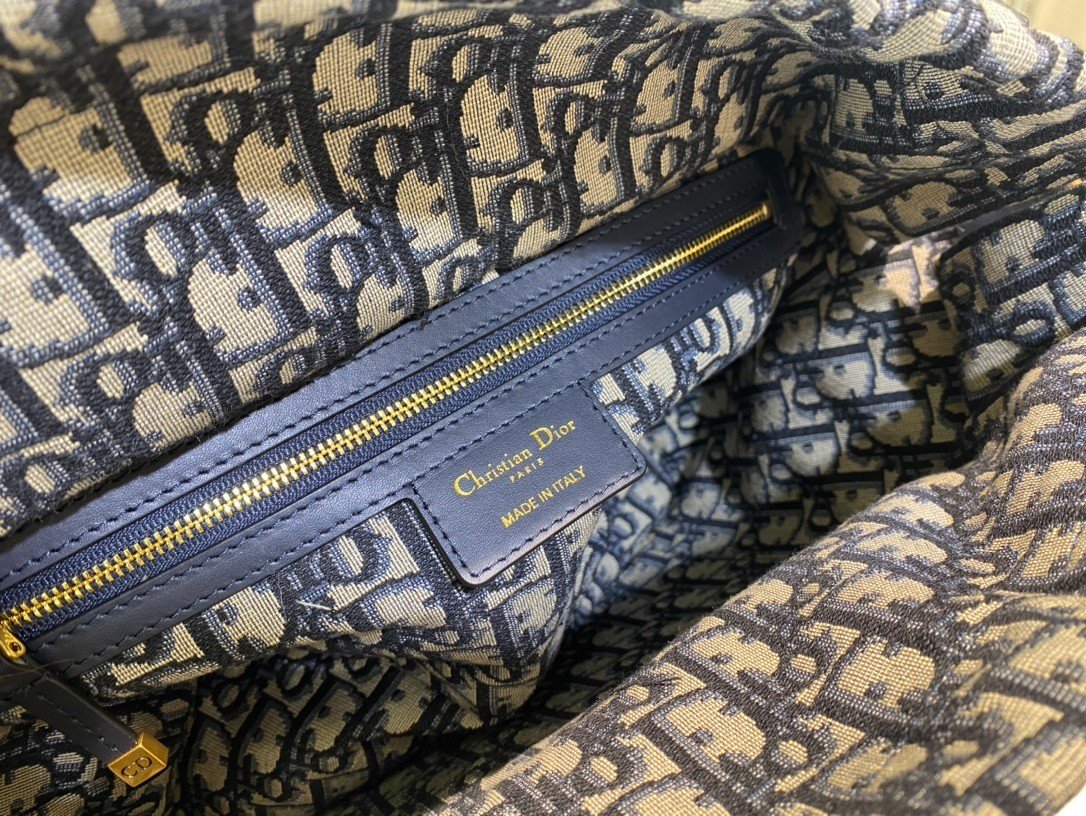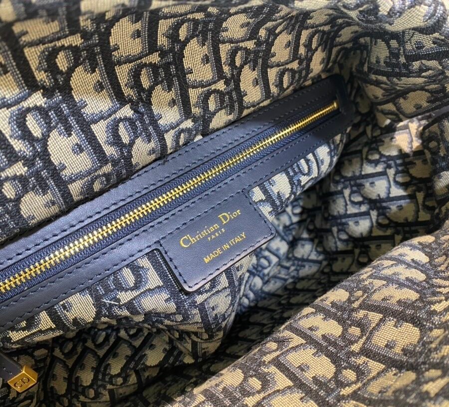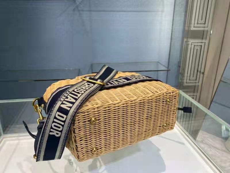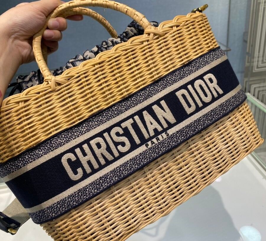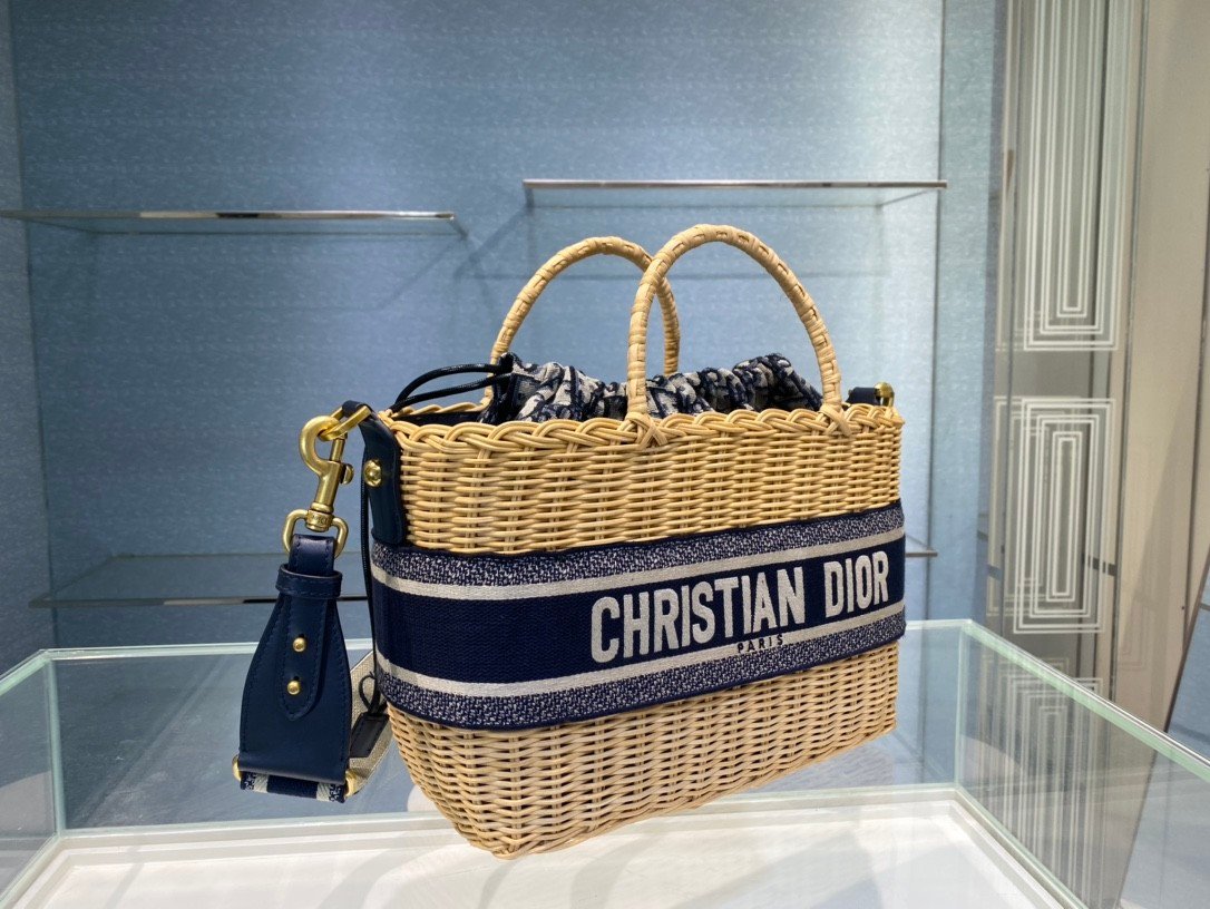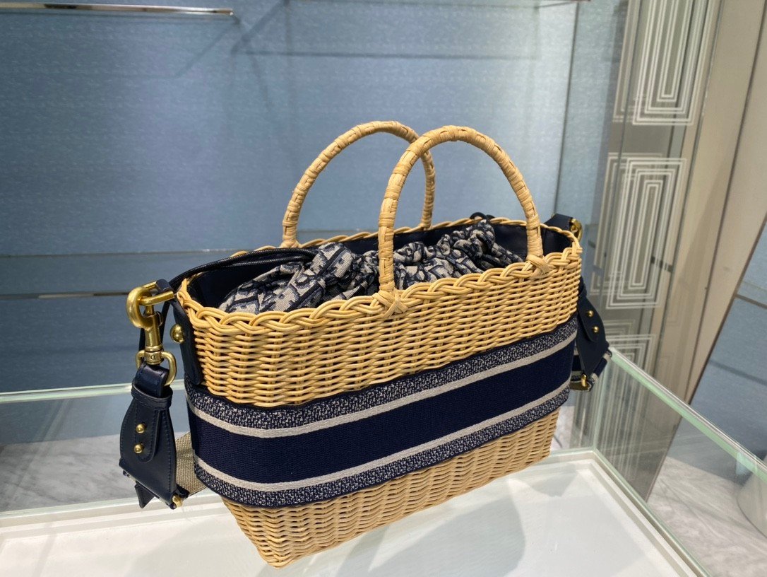 DIOR WICKER BASKET BAG in Blue Dior Oblique with Natural Wicker, Jacquard