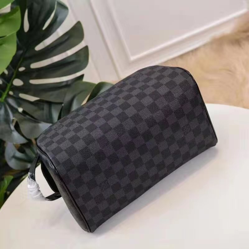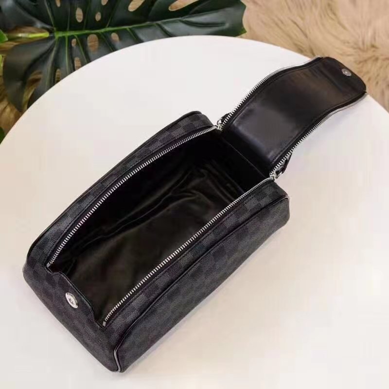 DOPP KIT TOILET POUCH in Damier Graphite coated canvas with Cowhide-leather, Silver-color hardware