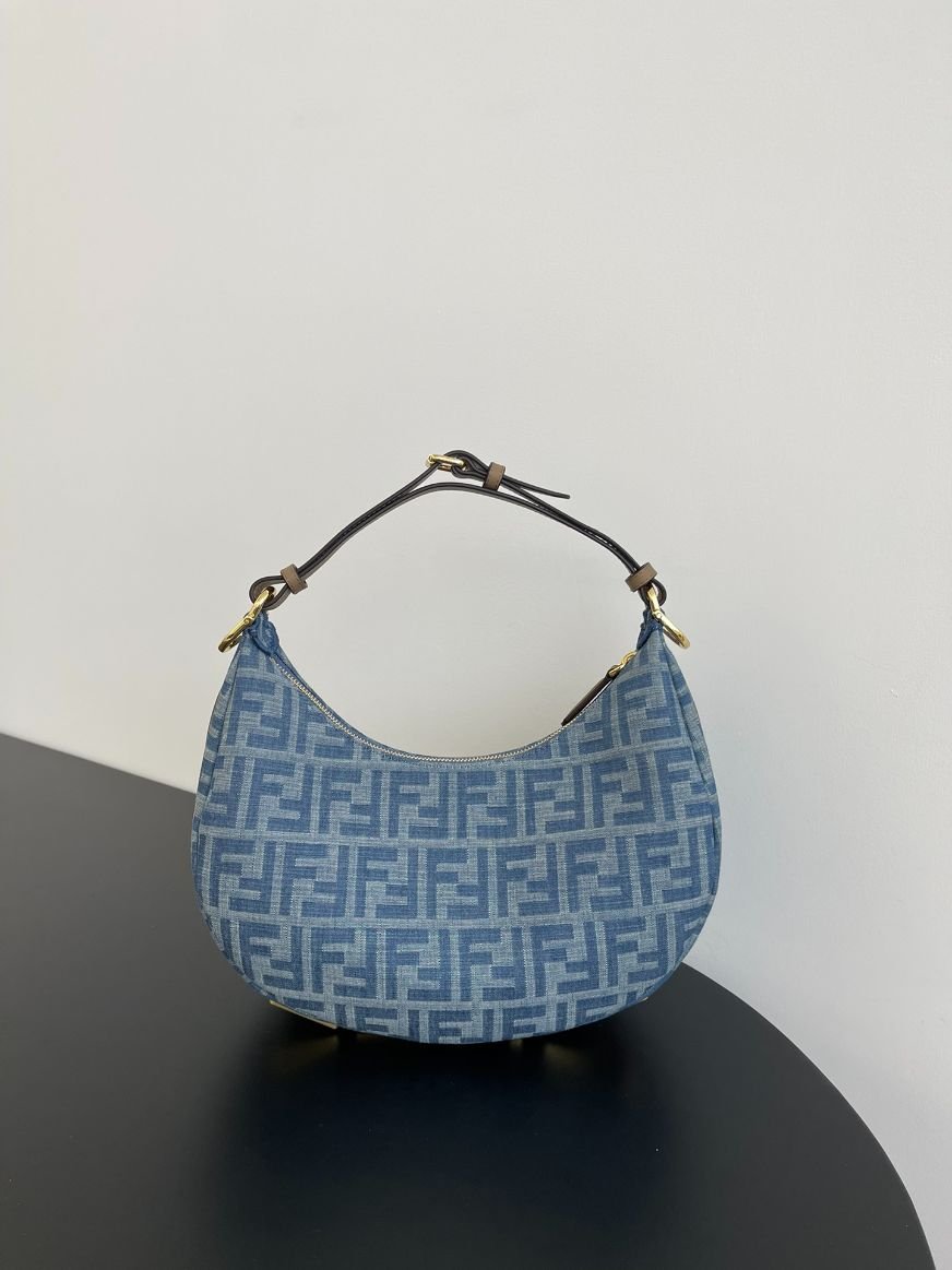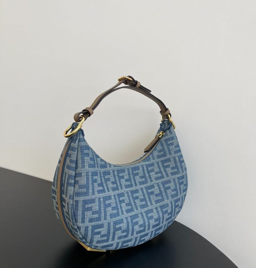 Fendi Fendigraphy in Light blue FF denim fabric and gold hardware