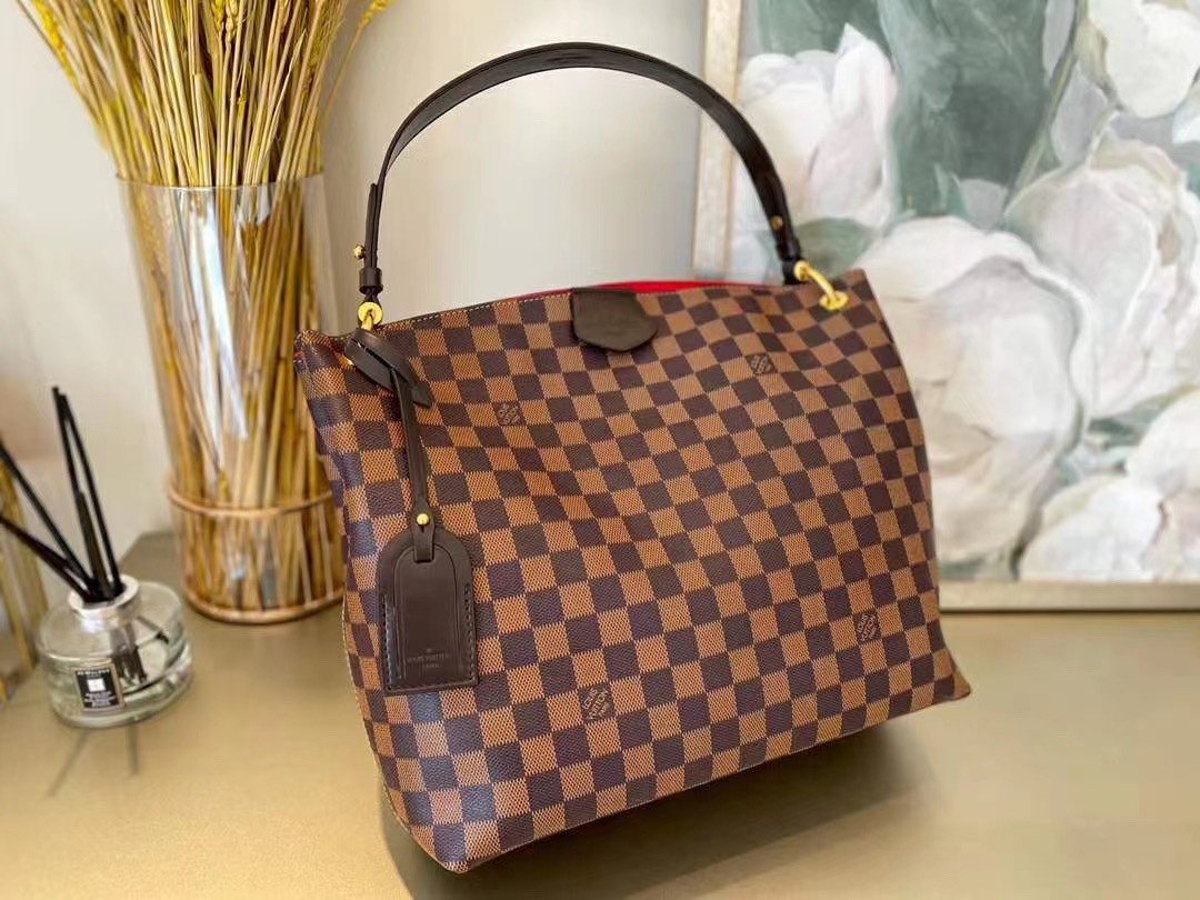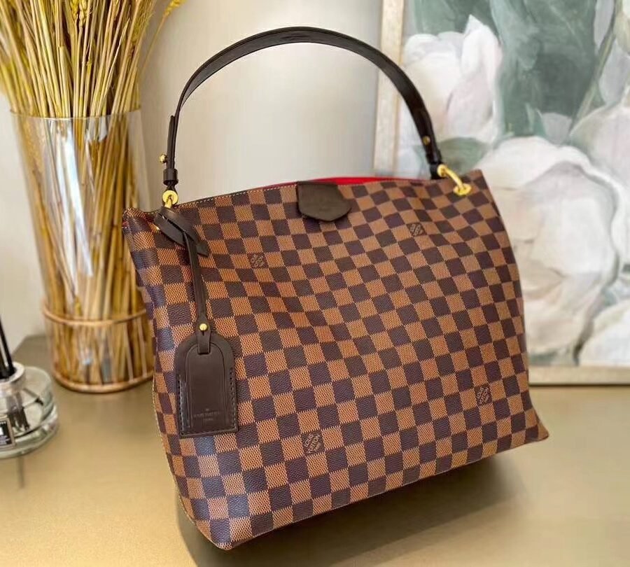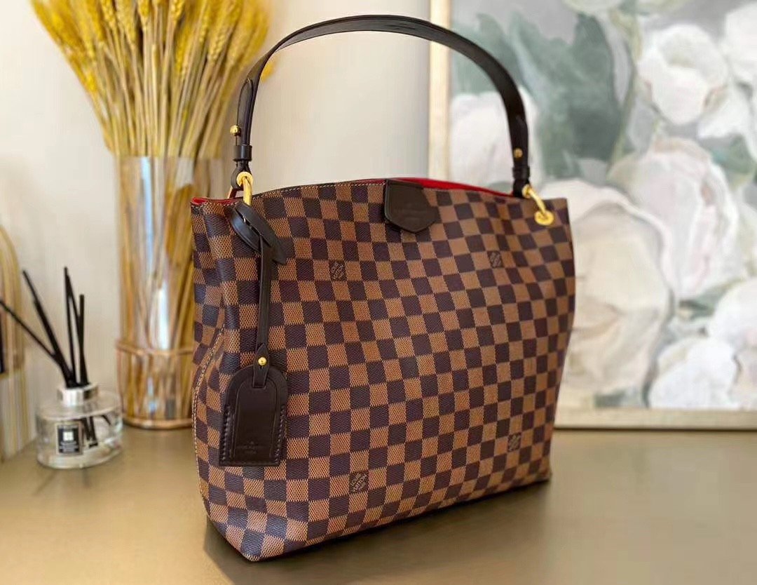 GRACEFUL MM in Damier Ebene coated canvas with Natural cowhide-leather, Gold-color hardware
