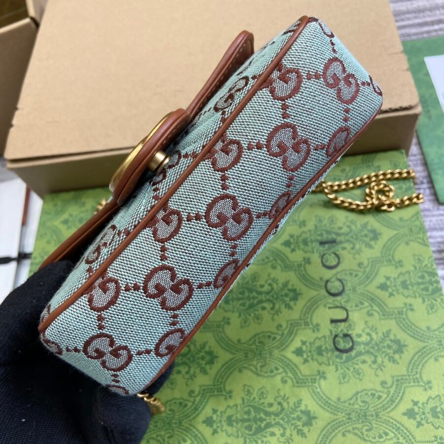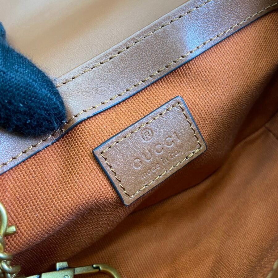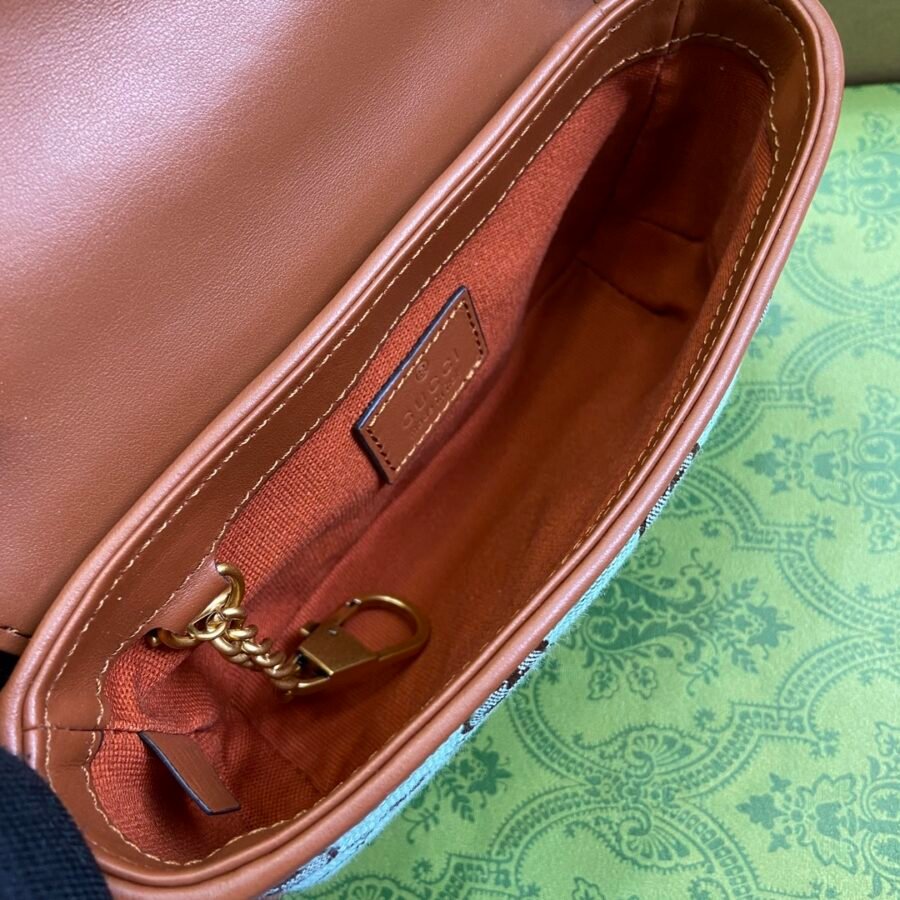 Gucci GG SUPER MINI in pale blue and brown GG canvas and gold hardware