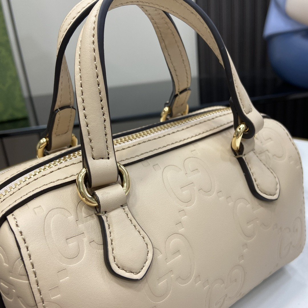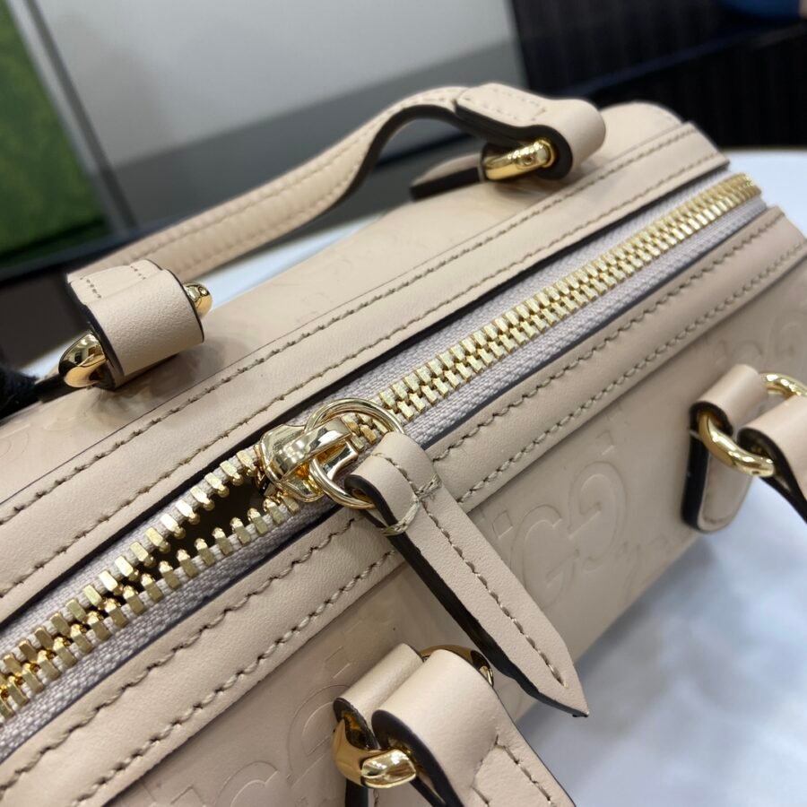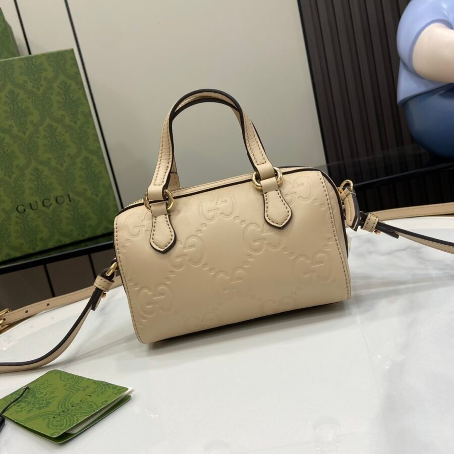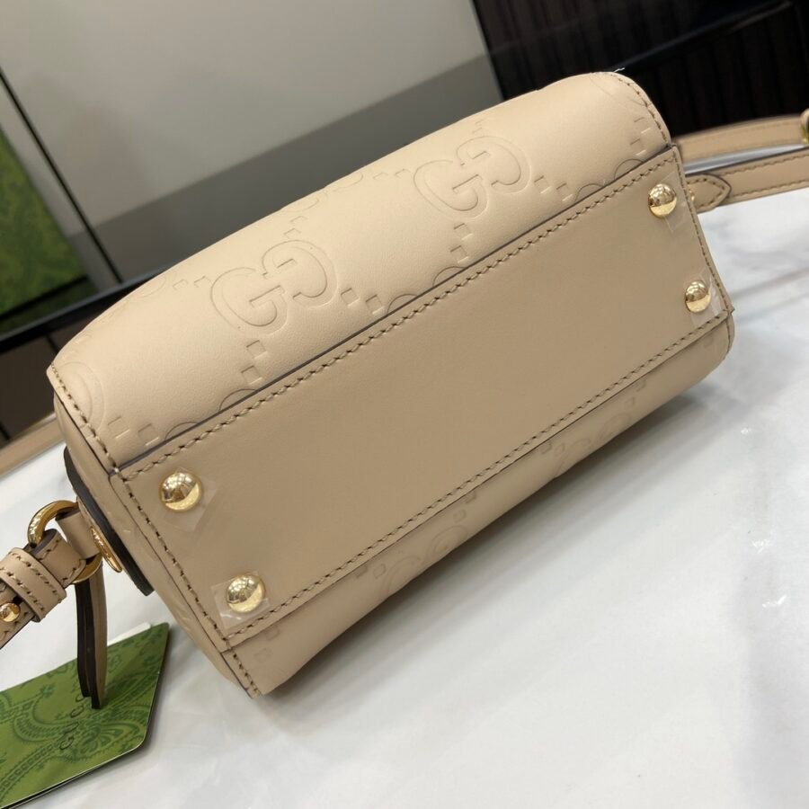 Gucci GG SUPER MINI TOP HANDLE in Light beige GG leather and gold hardware