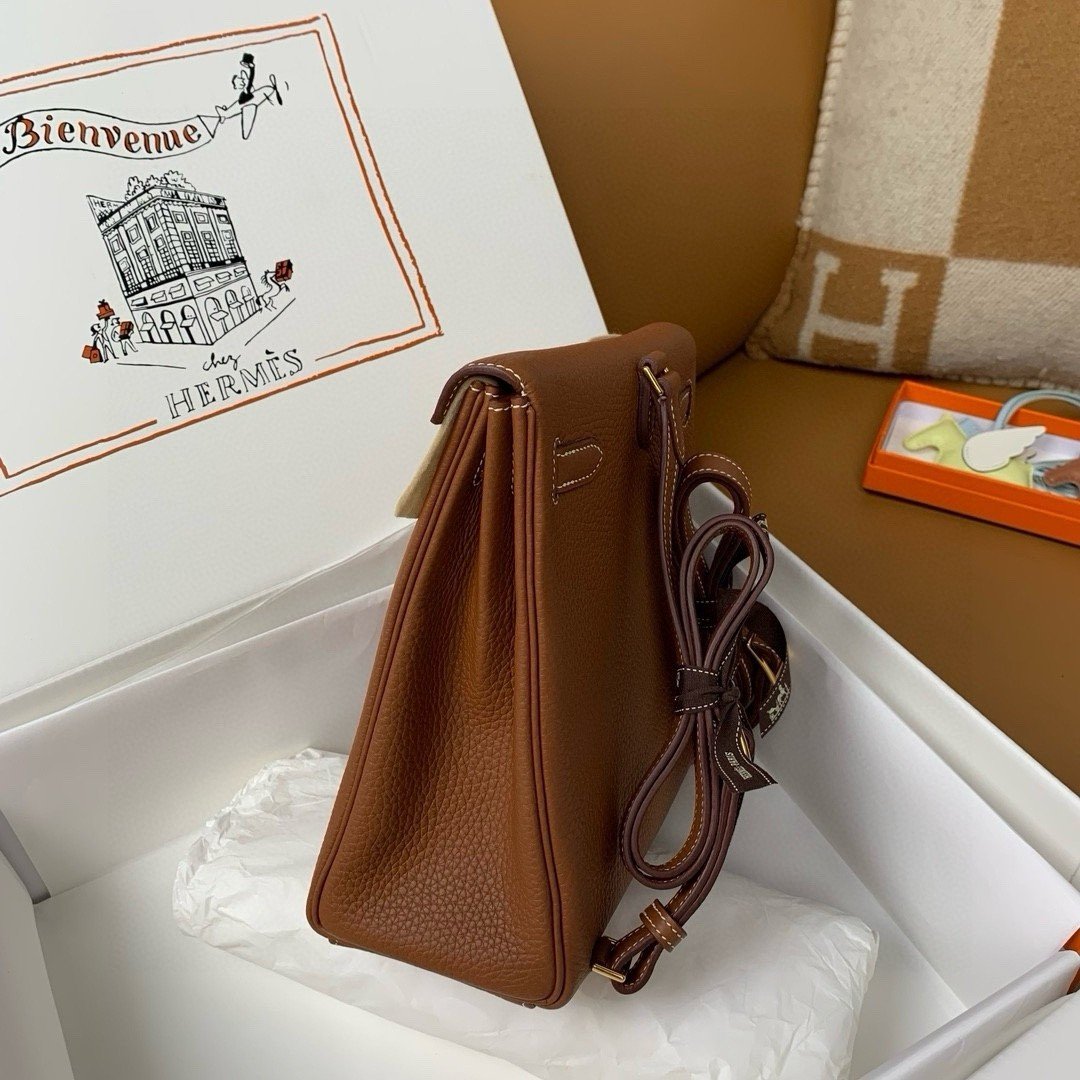 Hermes Kelly Ado backpack in Brown leather with gold hardware