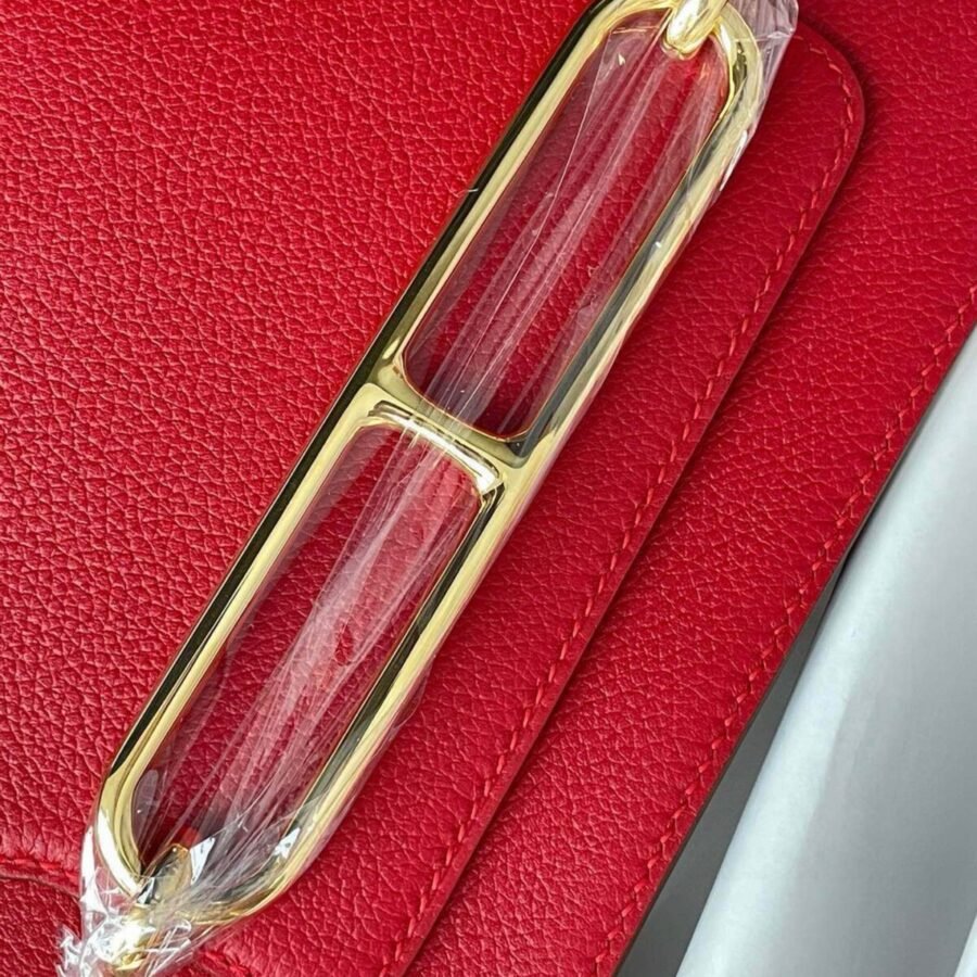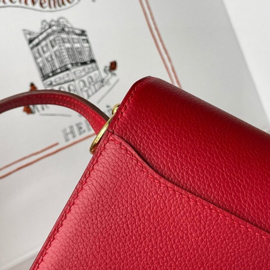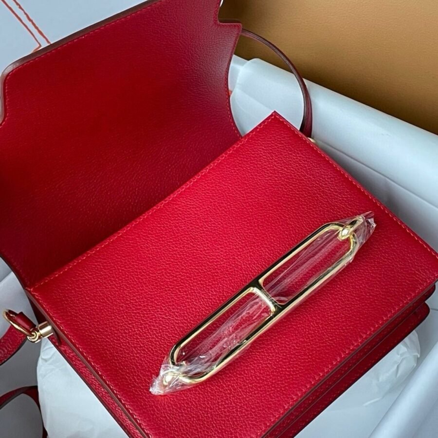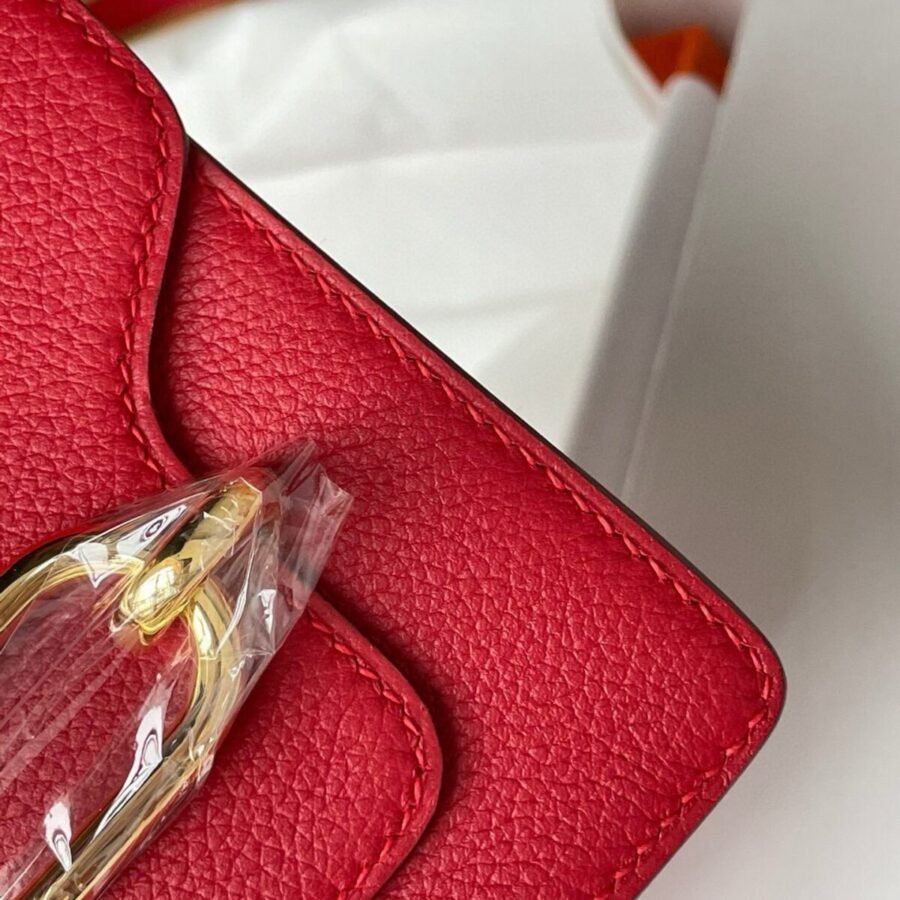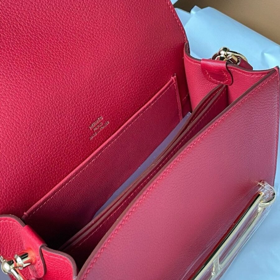 Hermes Roulis mini 19cm in red leather with gold hardware
