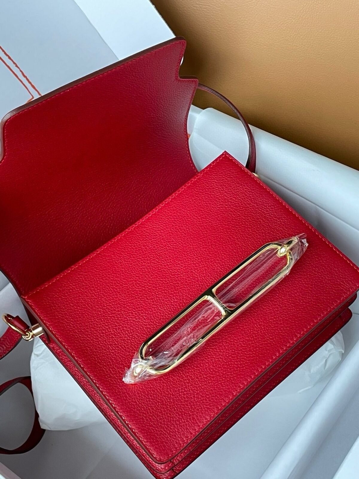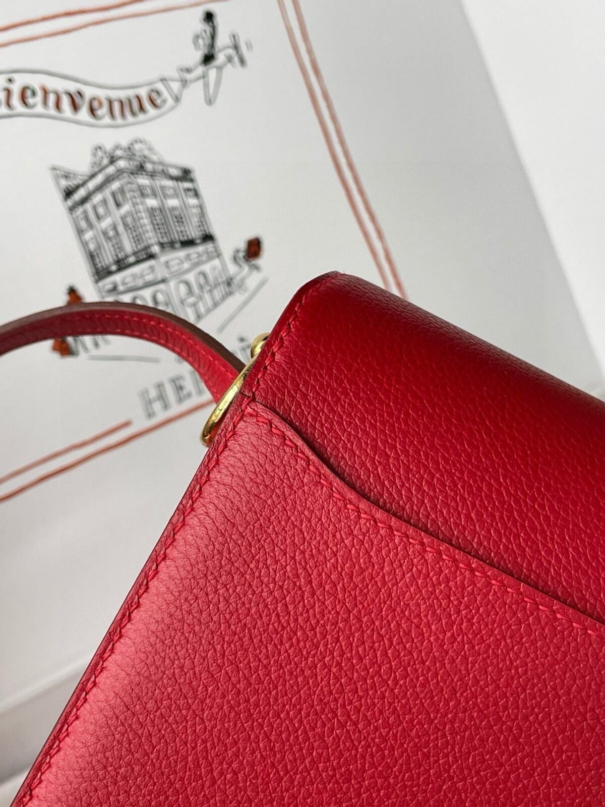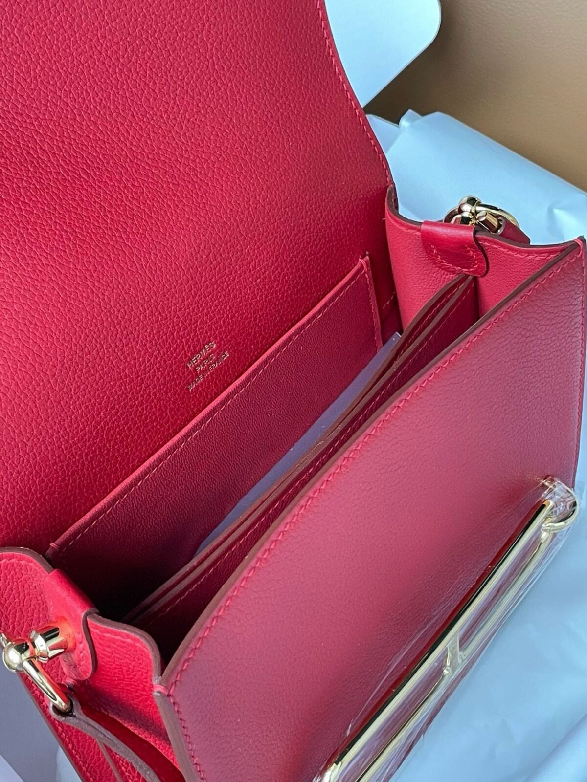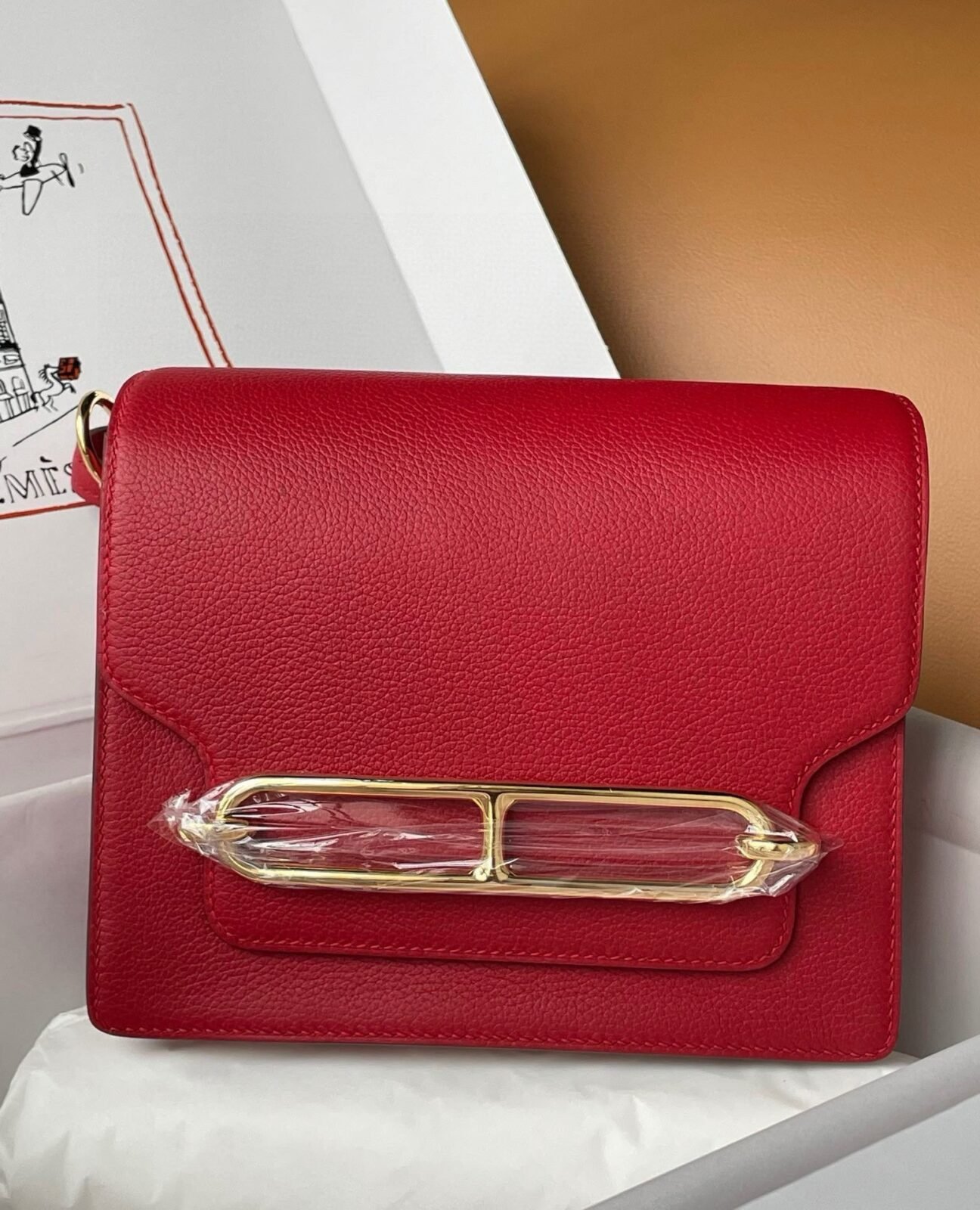 Hermes Roulis mini 19cm in red leather with gold hardware