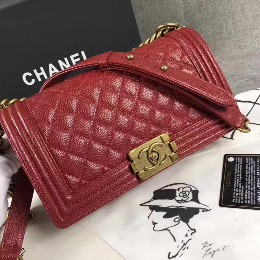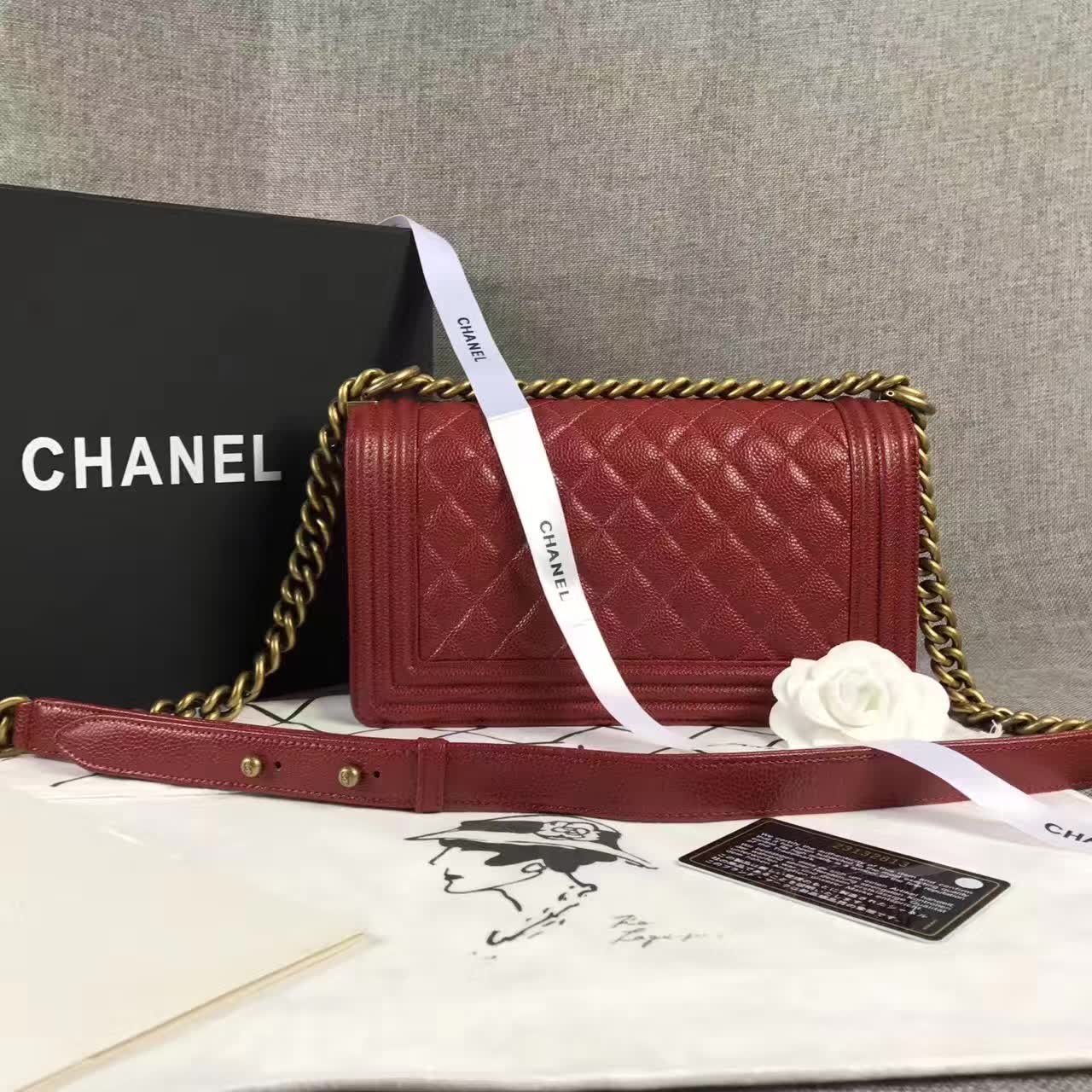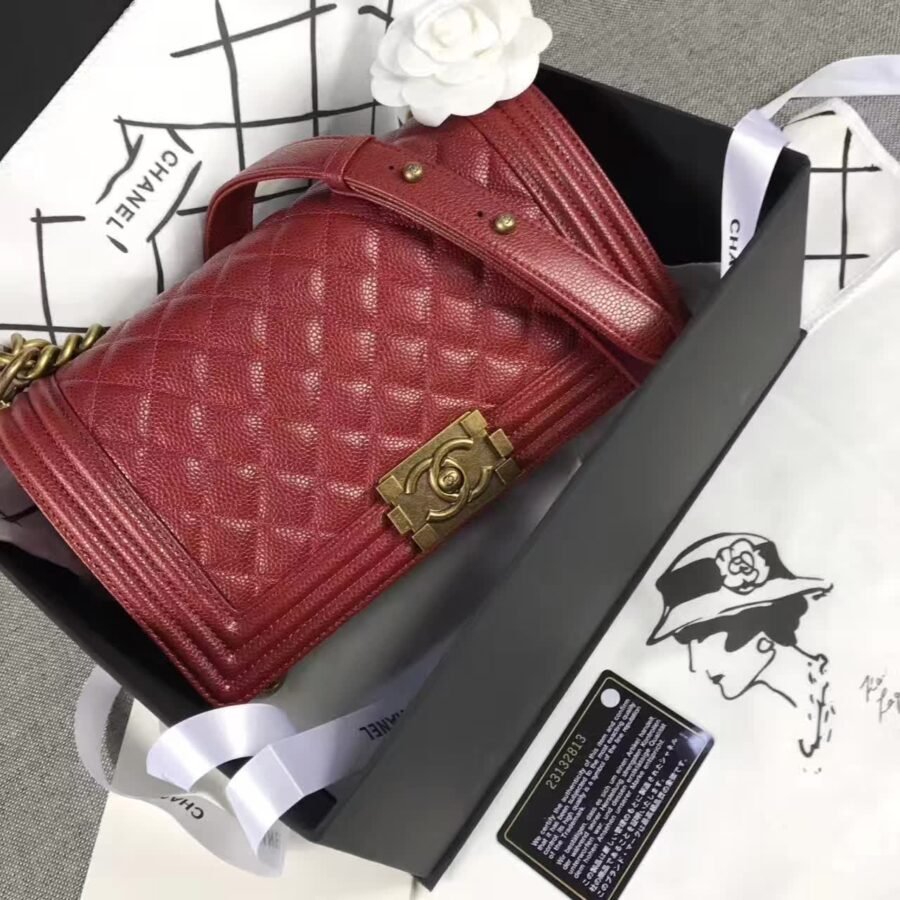 Chanel Bags le boy caviar claret in red Colour