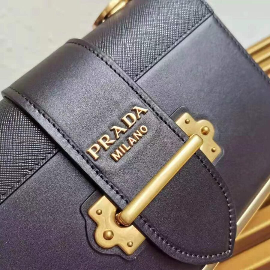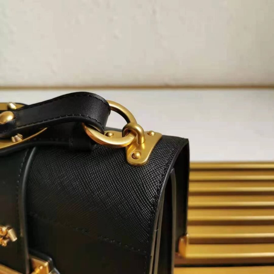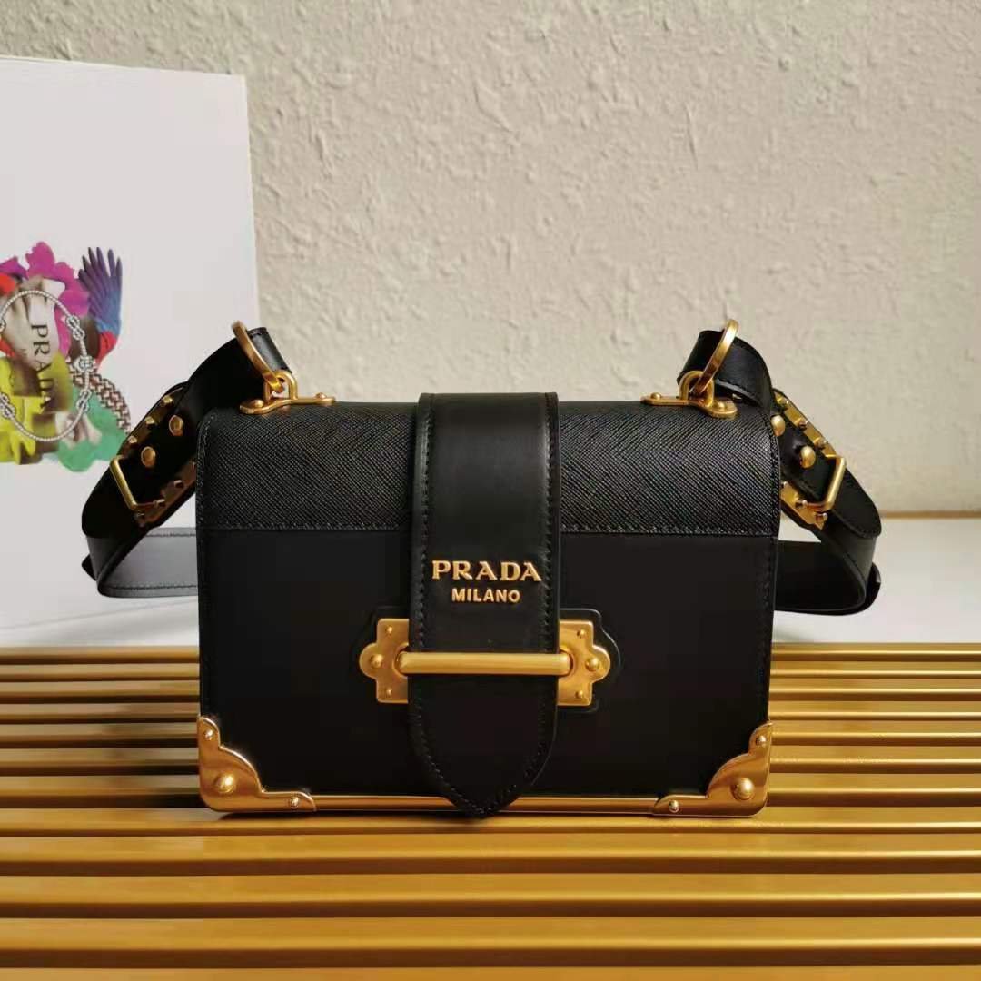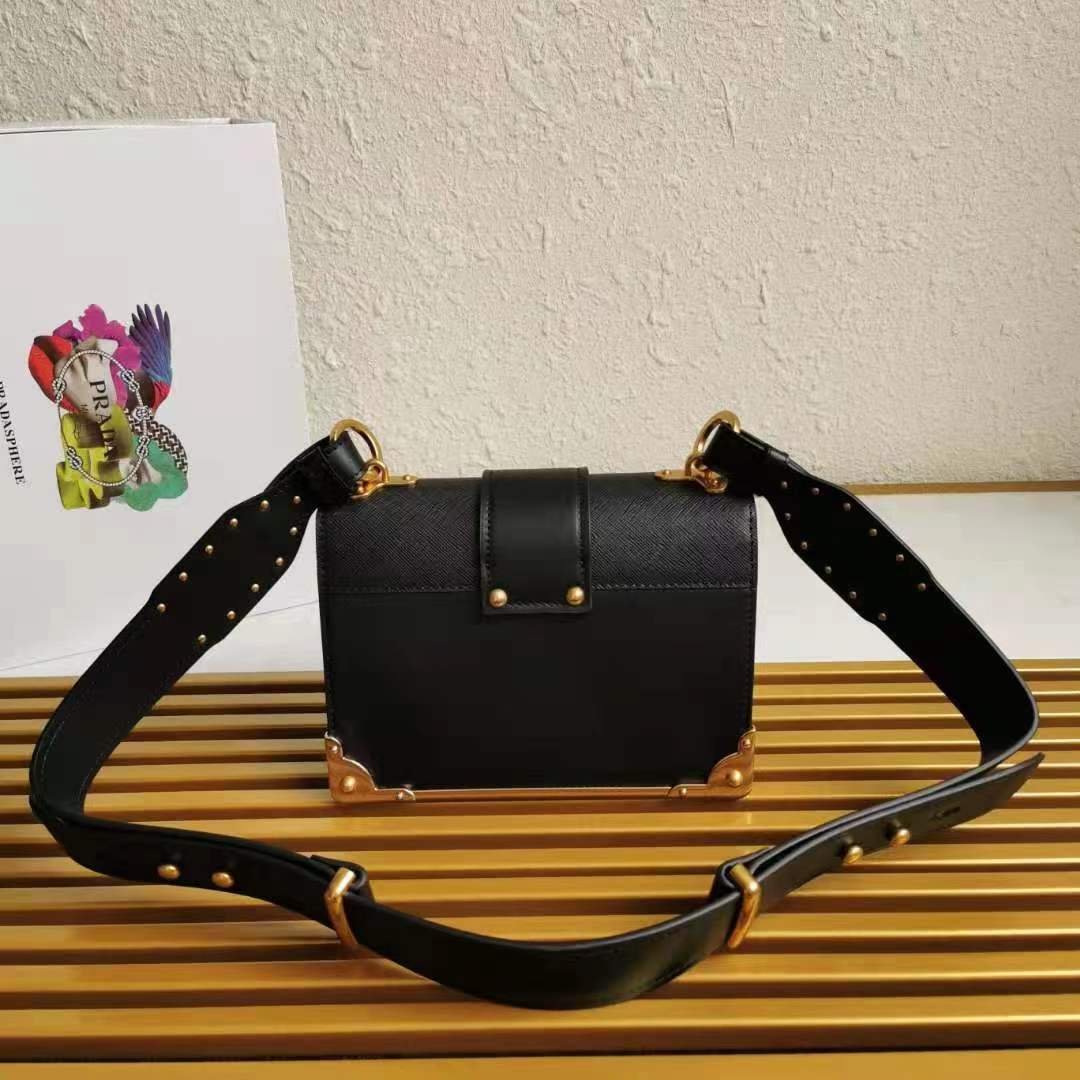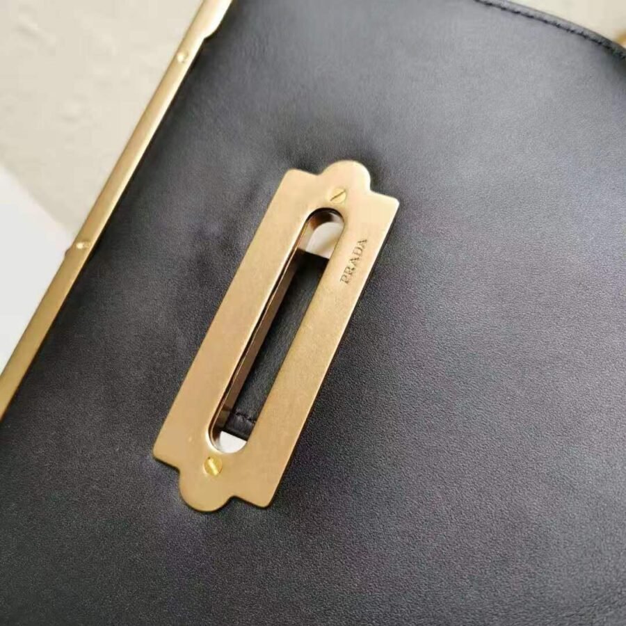 Leather Prada Cahier Bag in Black with Leather, Metal hardware