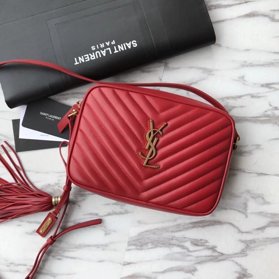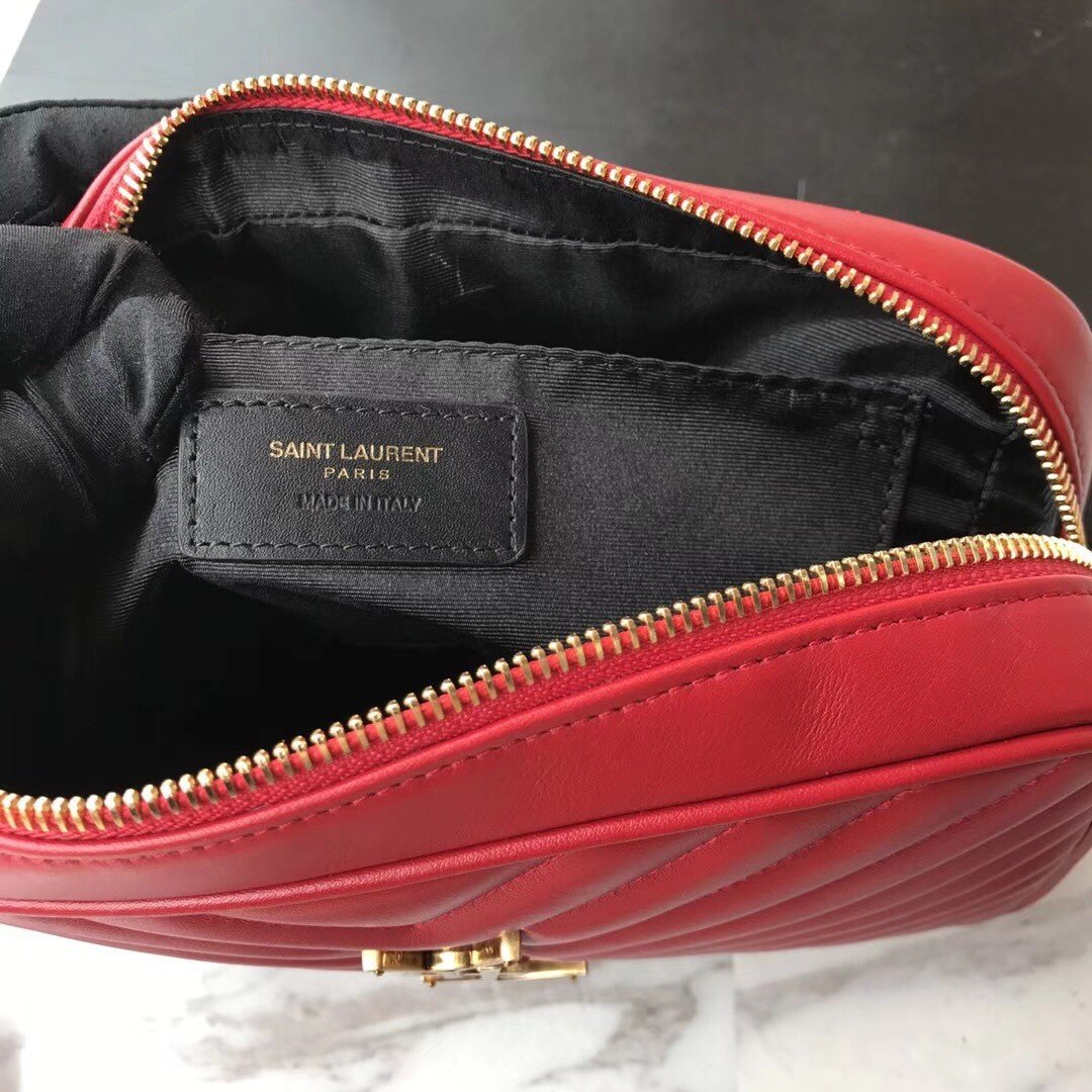 LOU CAMERA BAG in Red with CALFSKIN LEATHER, BRONZE-TONED METAL