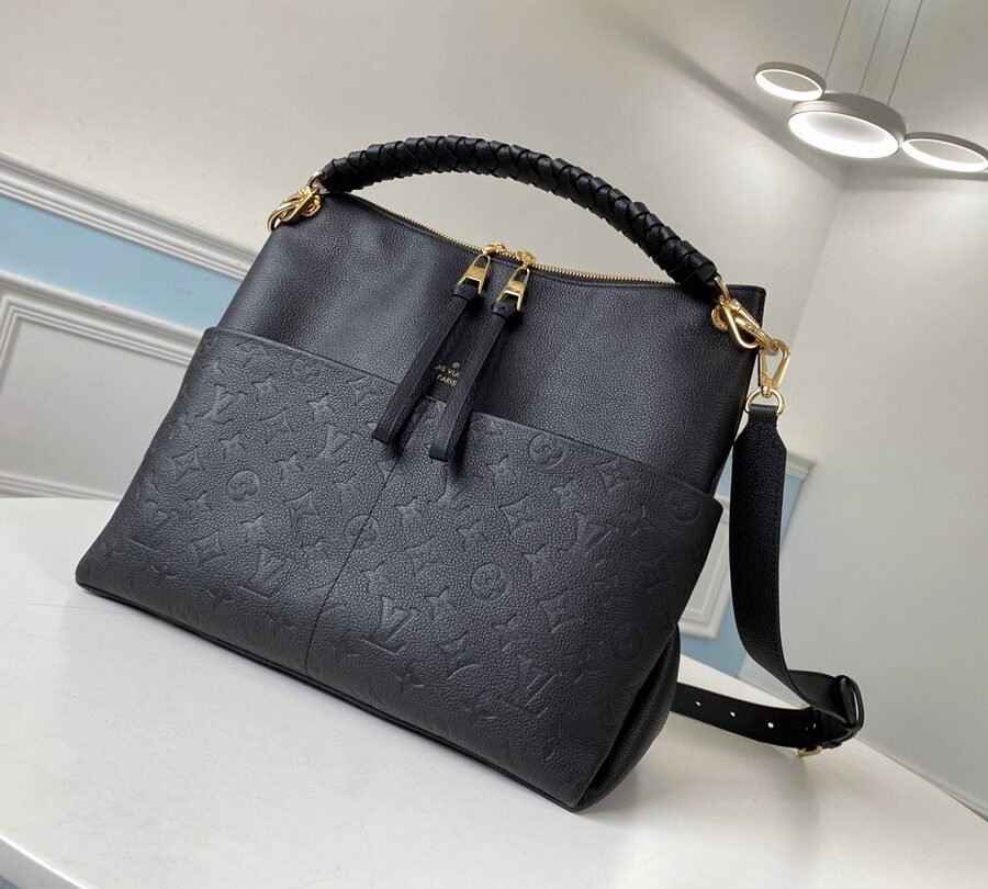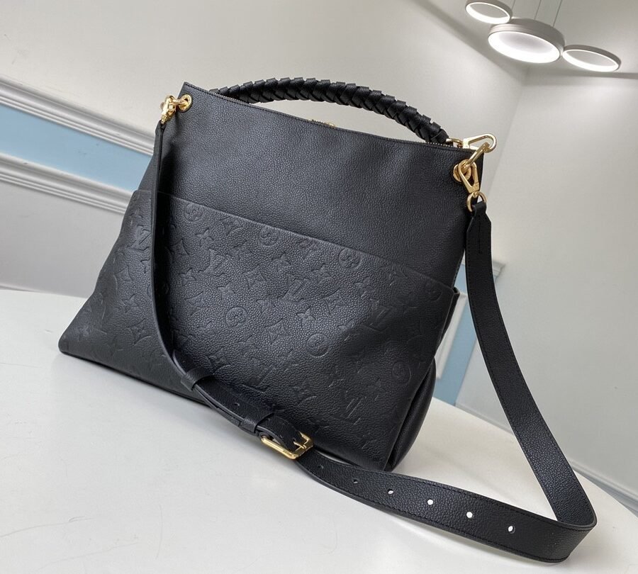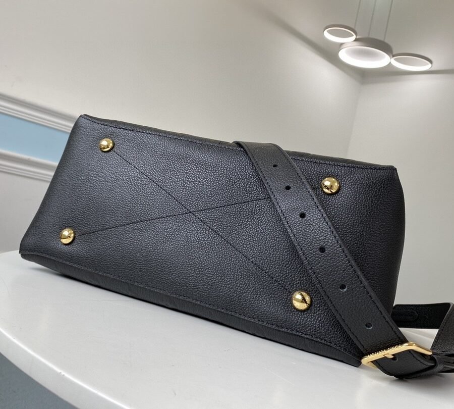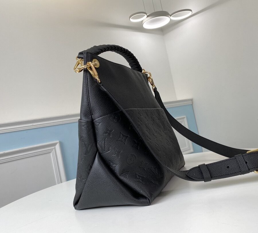 MAIDA HOBO in Black with Embossed grained cowhide leather, Gold-color hardware