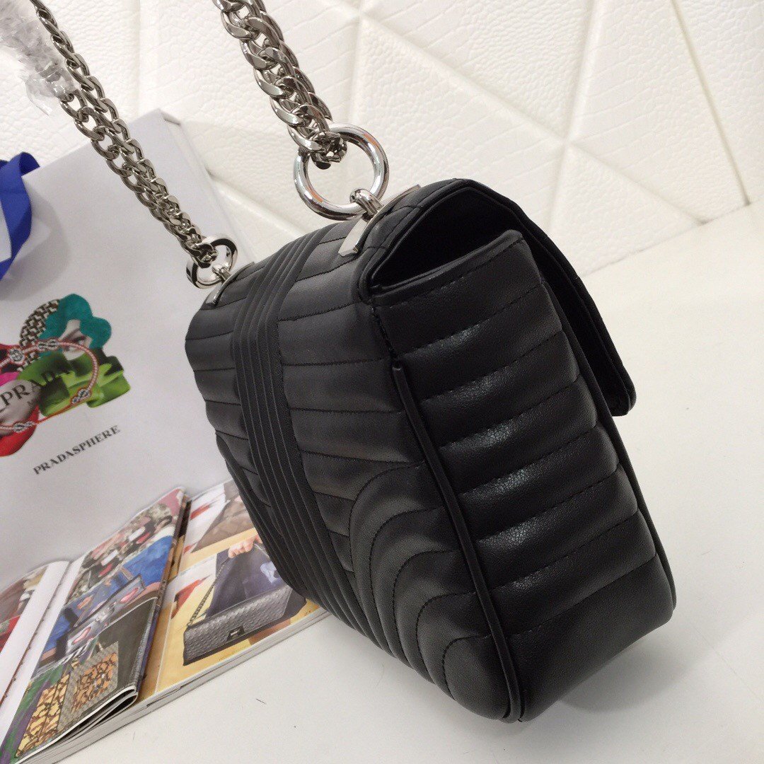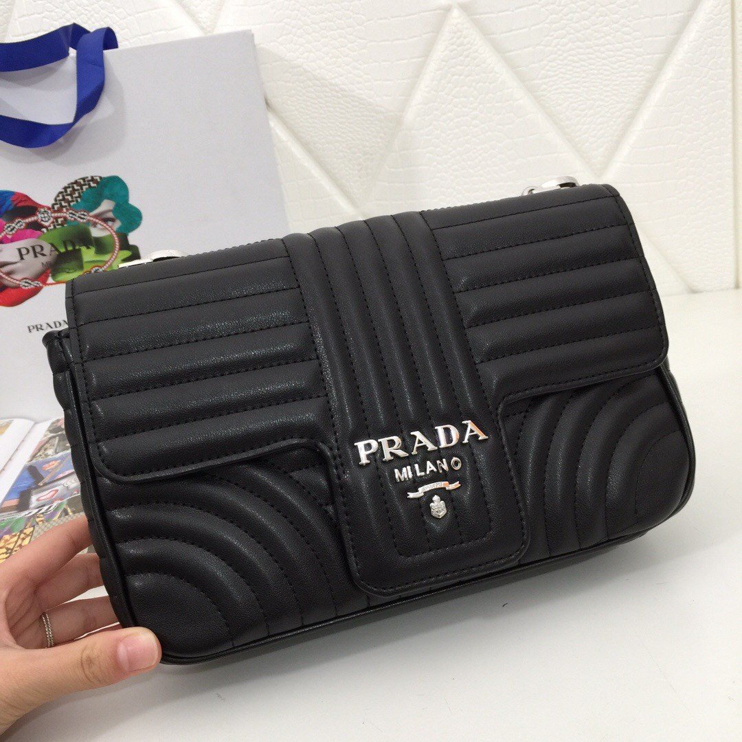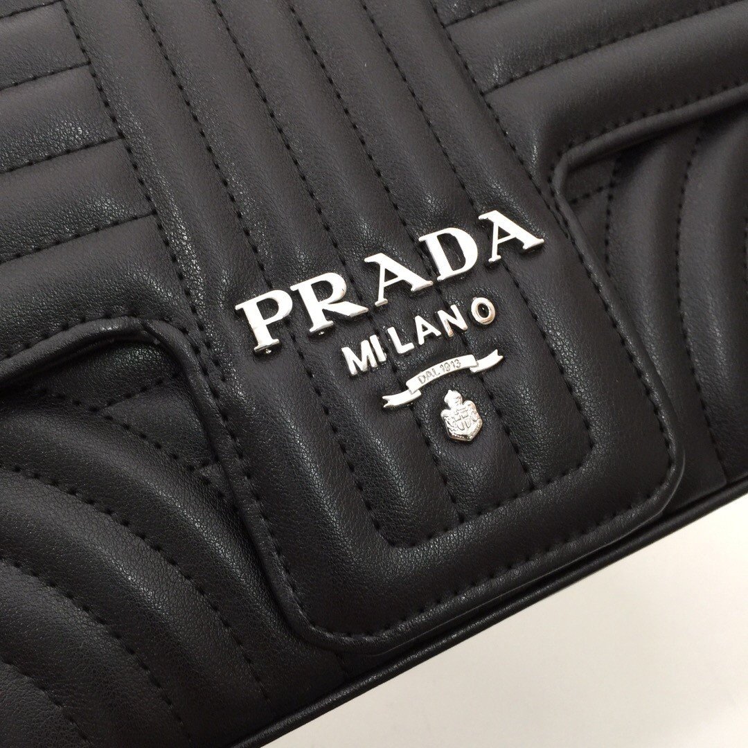 Medium Leather Prada Diagramme Bag in Black with Leather, Metal hardware