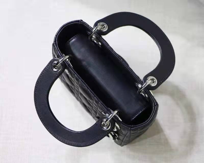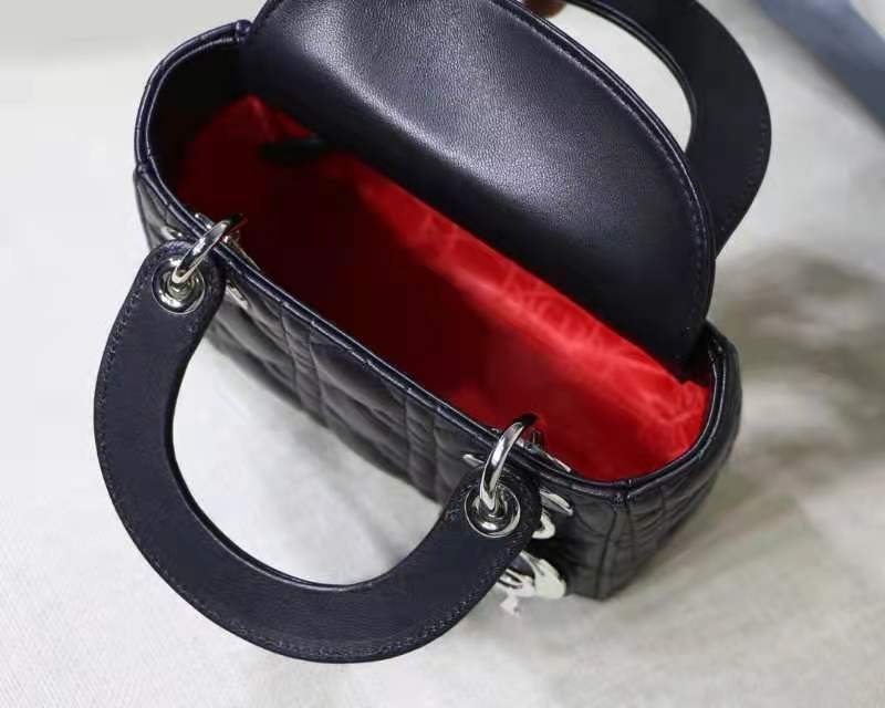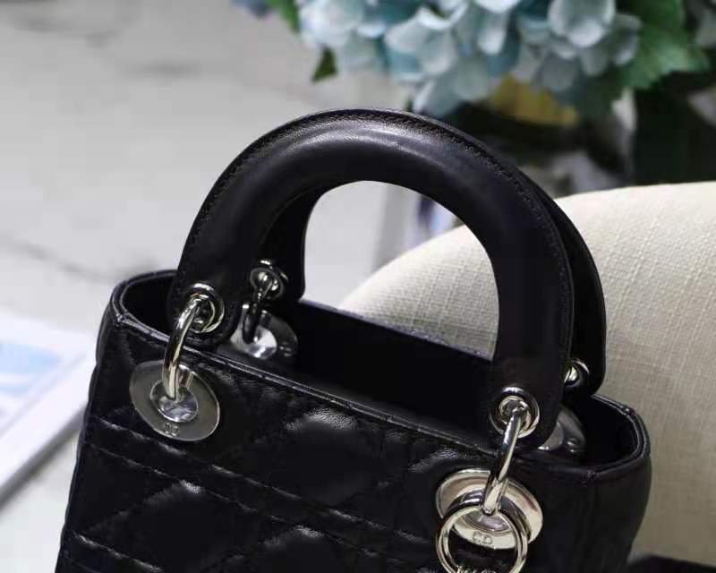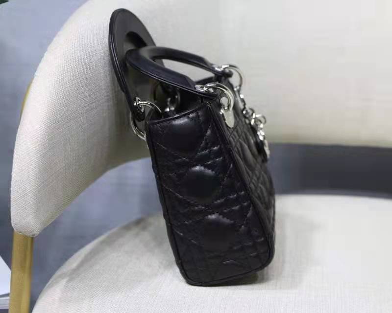 MINI LADY DIOR BAG in Black with Cannage Lambskin, Silver hardware