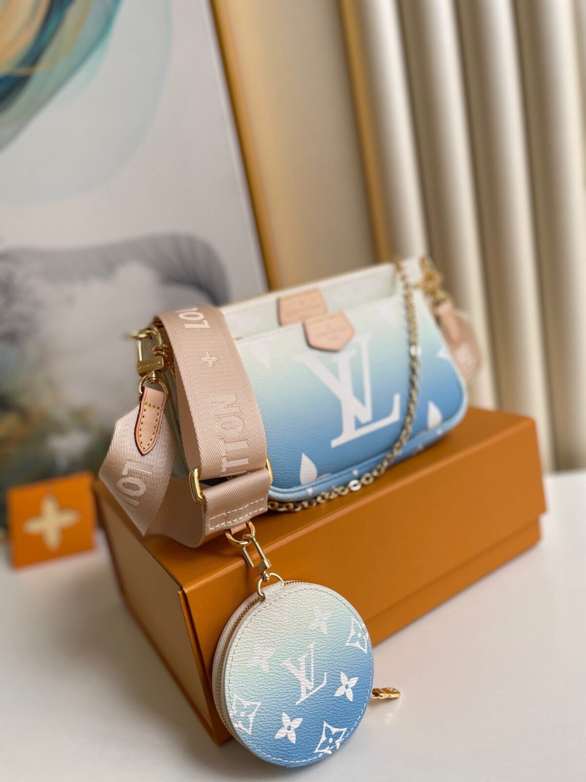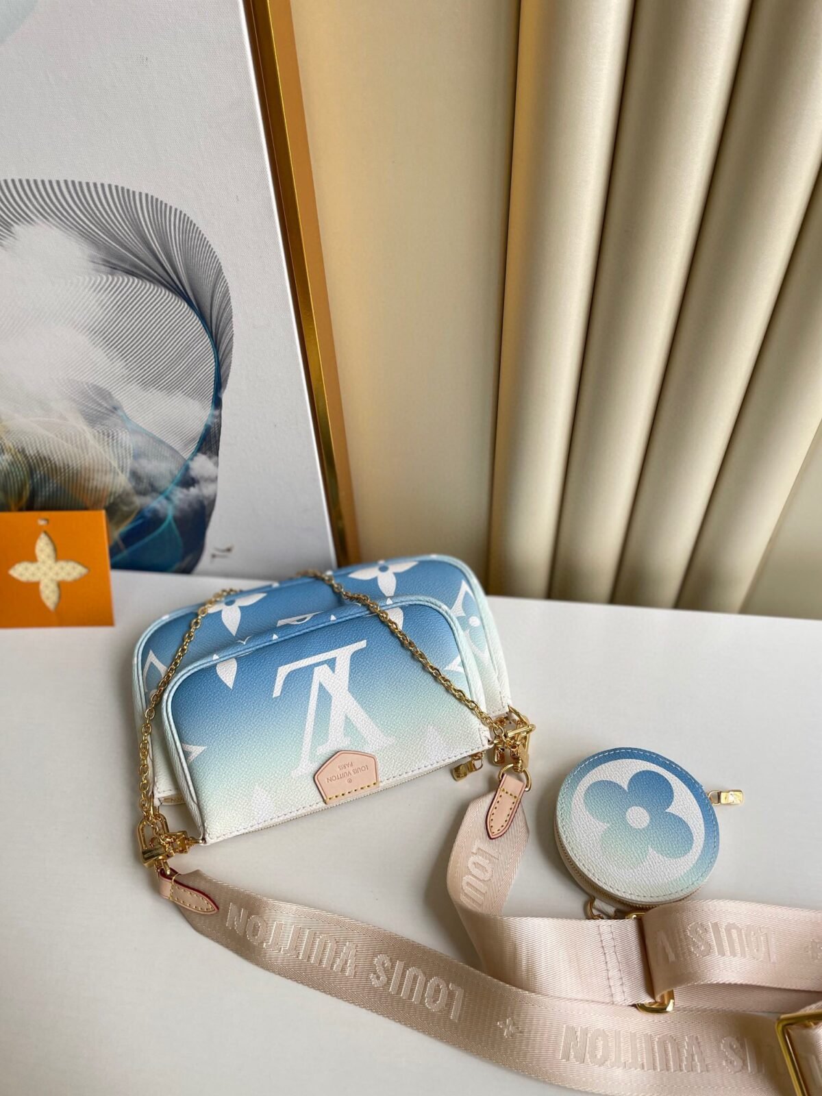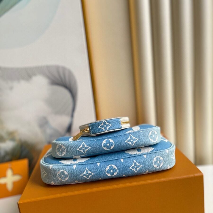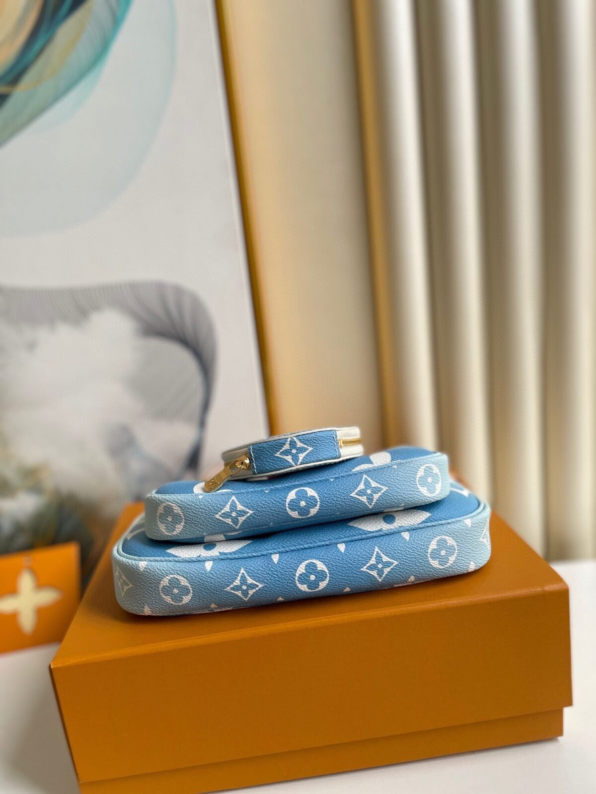 MULTI POCHETTE ACCESSOIRES in Blue with Natural cowhide-leather, Gold-color hardware