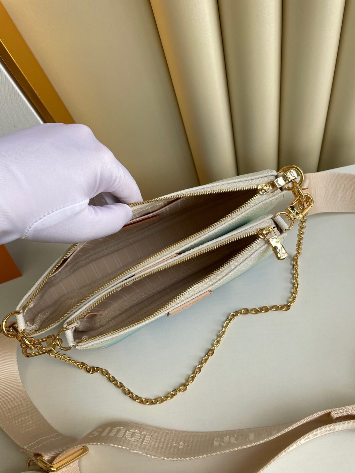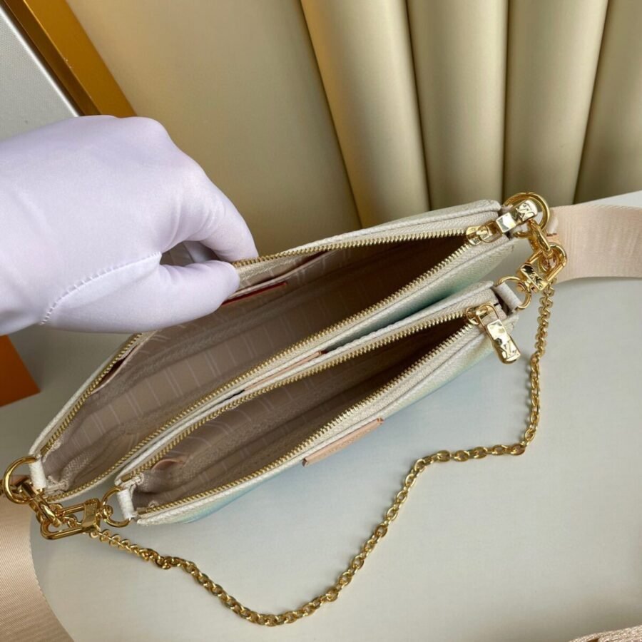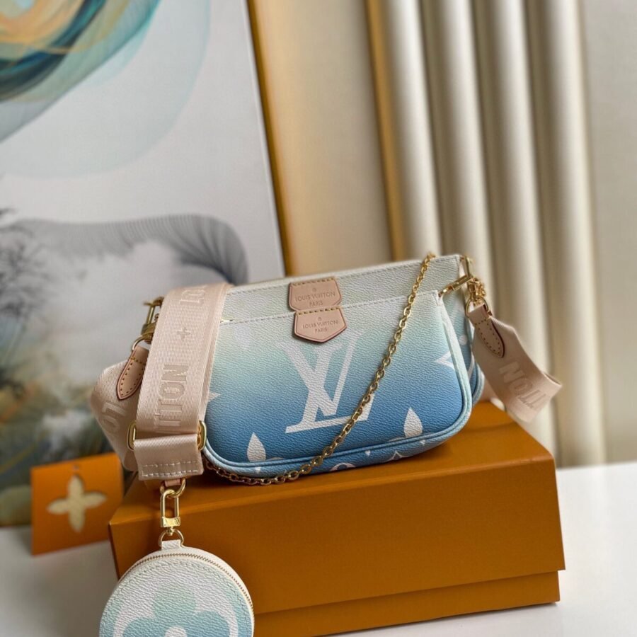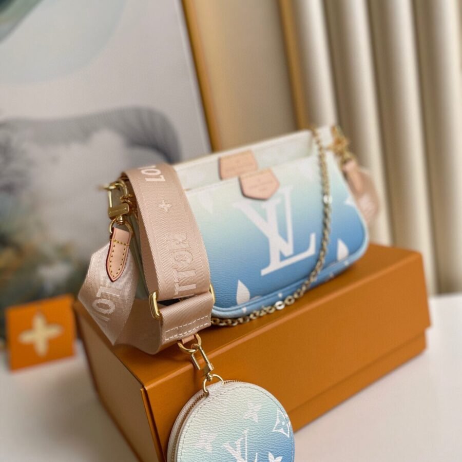 MULTI POCHETTE ACCESSOIRES in Blue with Natural cowhide-leather, Gold-color hardware