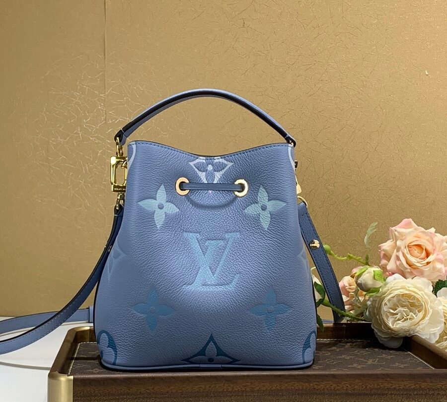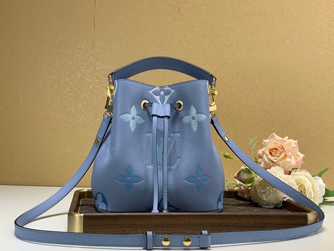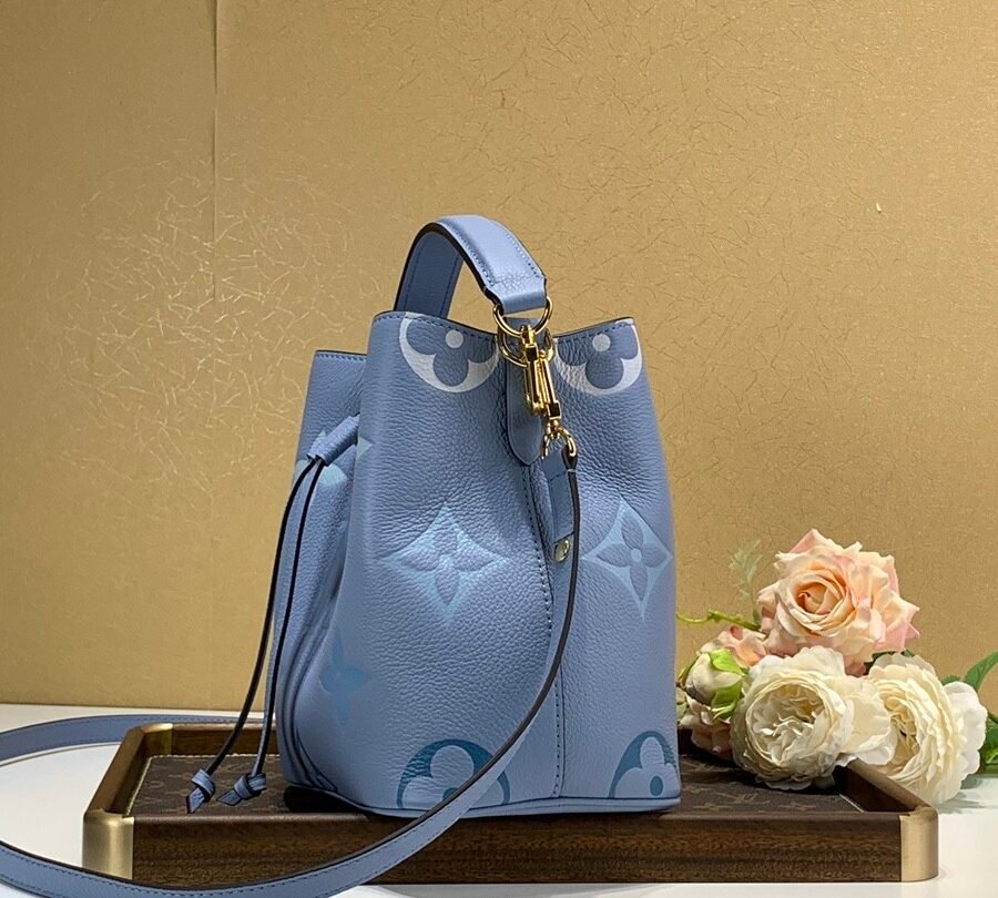 NÉONOÉ BB in Summer Blue with Embossed grained cowhide leather, Gold-color hardware