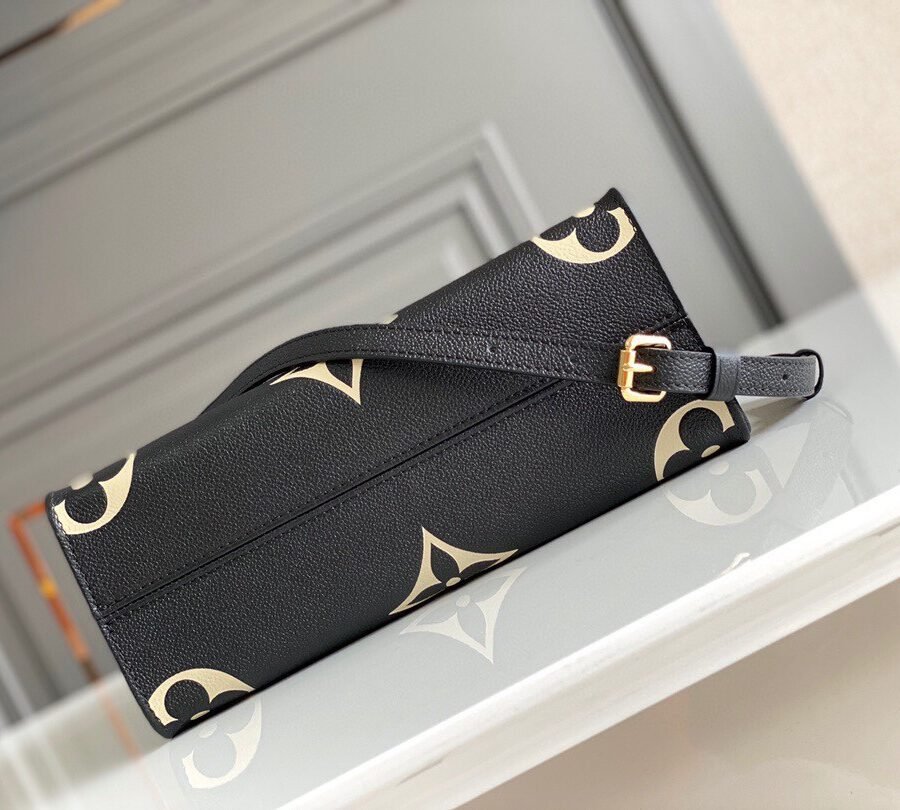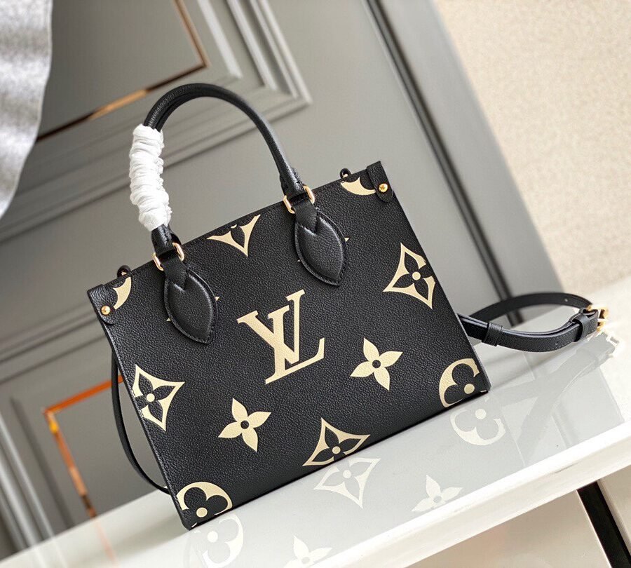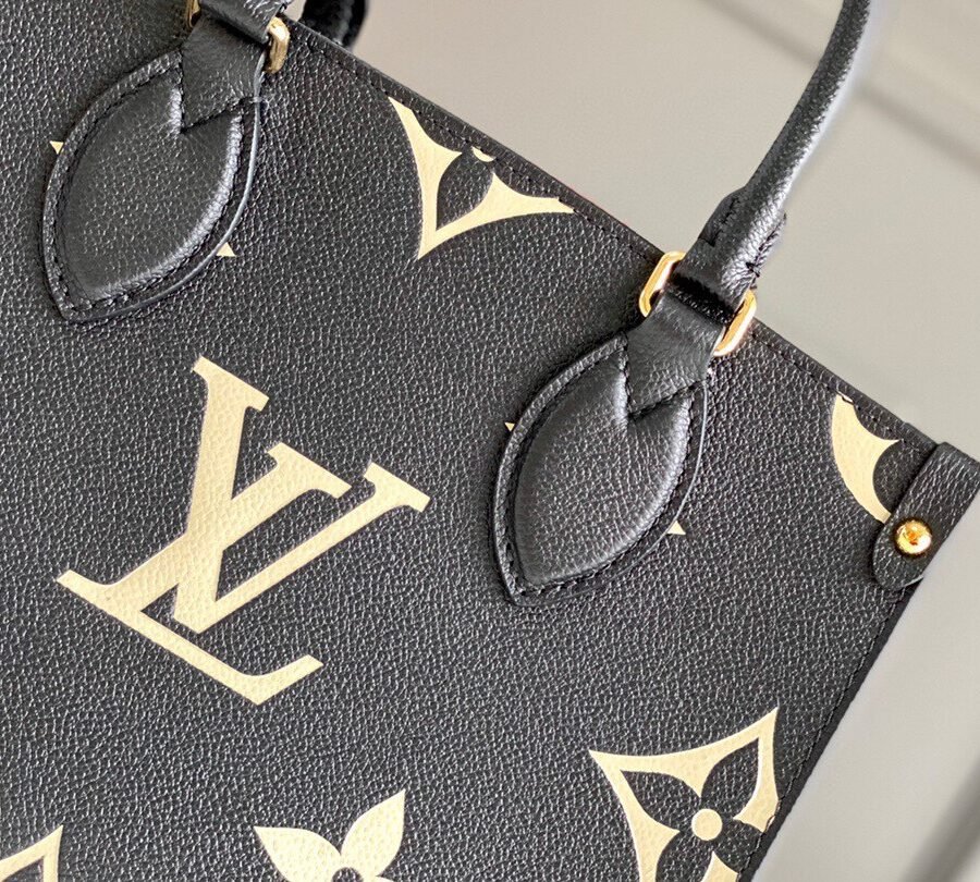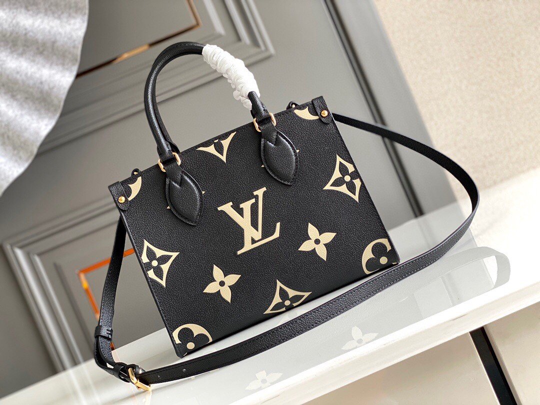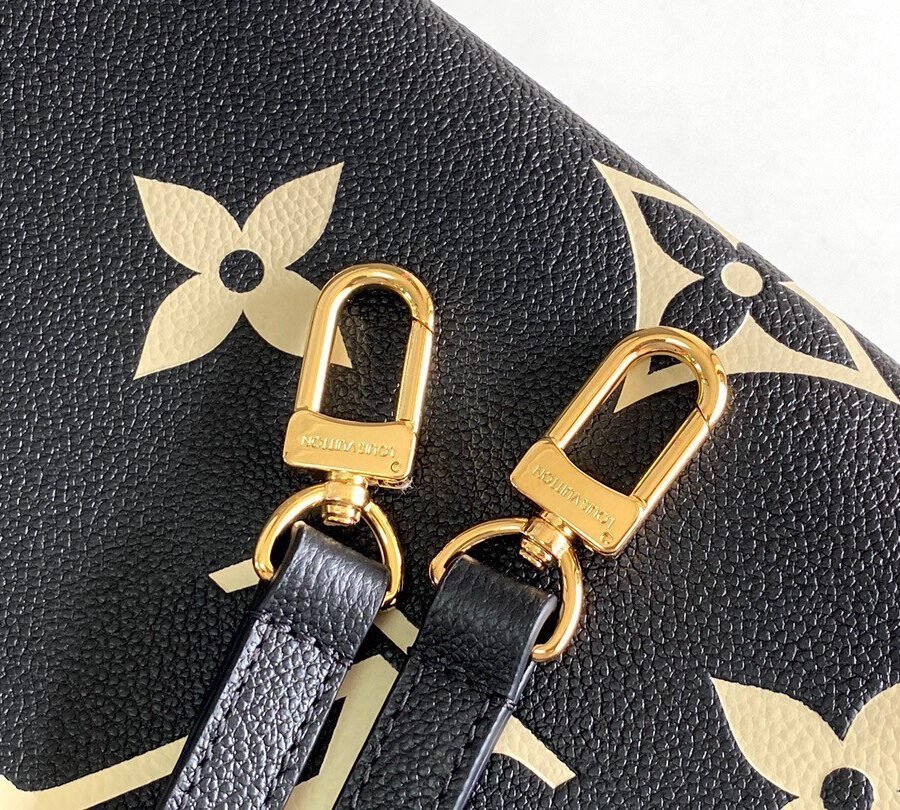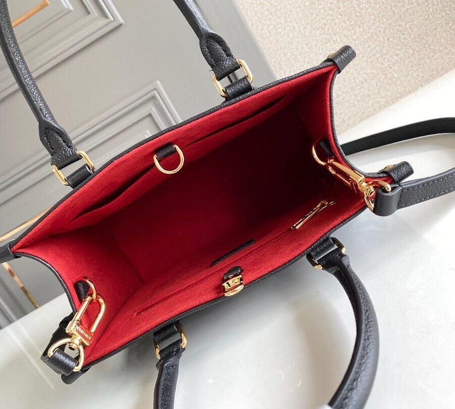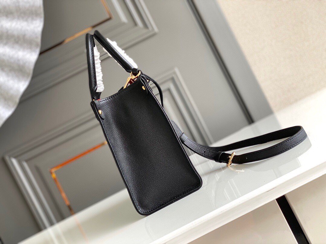 ONTHEGO PM in Black with Grained cowhide leather trim, Gold-color hardware