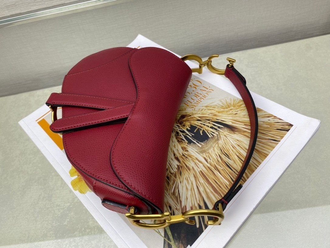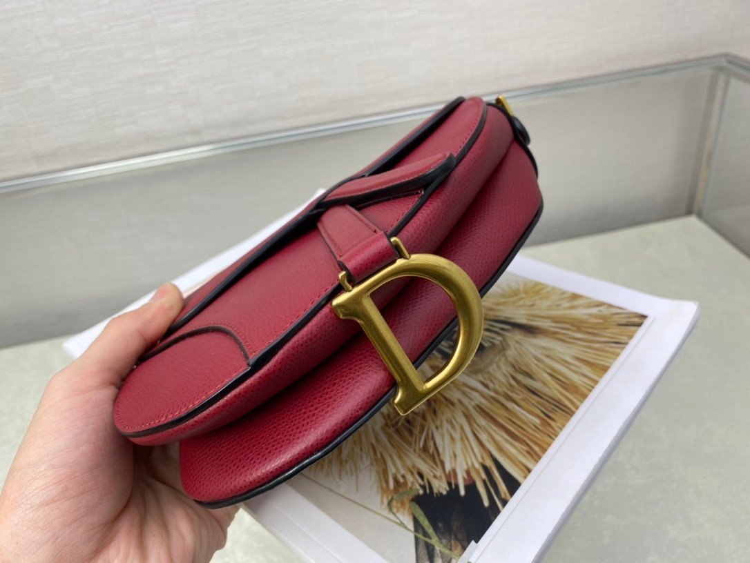 SADDLE BAG in Cherry Red with Grained Calfskin