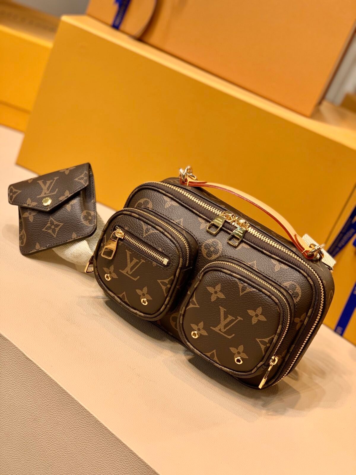 UTILITY CROSSBODY in Monogram coated canvas with Natural cowhide leather trim, Gold-color hardware